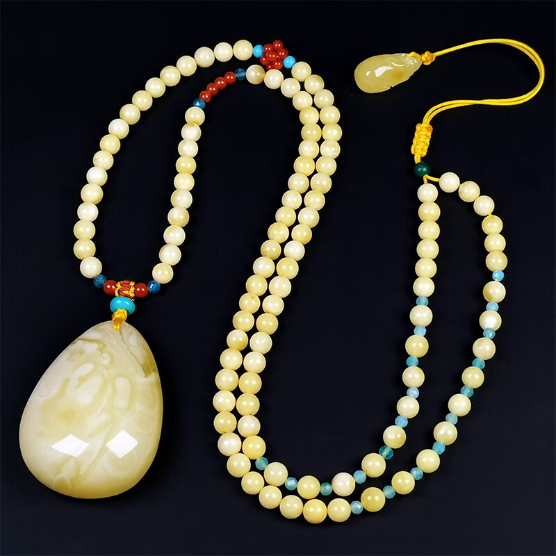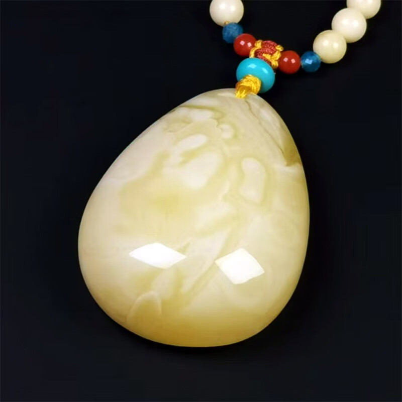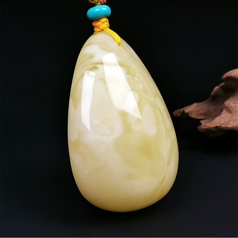 Amber School, one thing, one picture, one proof, beeswax pendant, women's necklace, sweater chain, natural amber white nectar drop-shaped pendant, 12.63g, 43*31*16mm