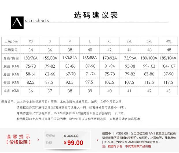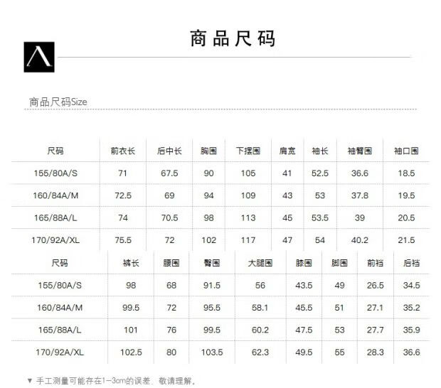 China (cm) 160-165/84-86 165-170 / 88-90 167-172 / 92-96 168-173 / 98-102 170-176 / 106-110