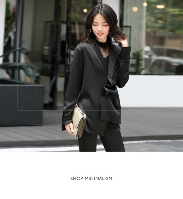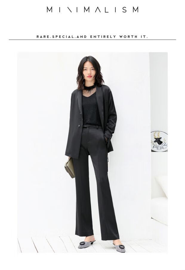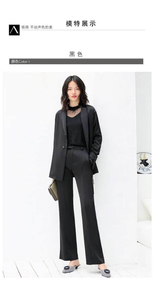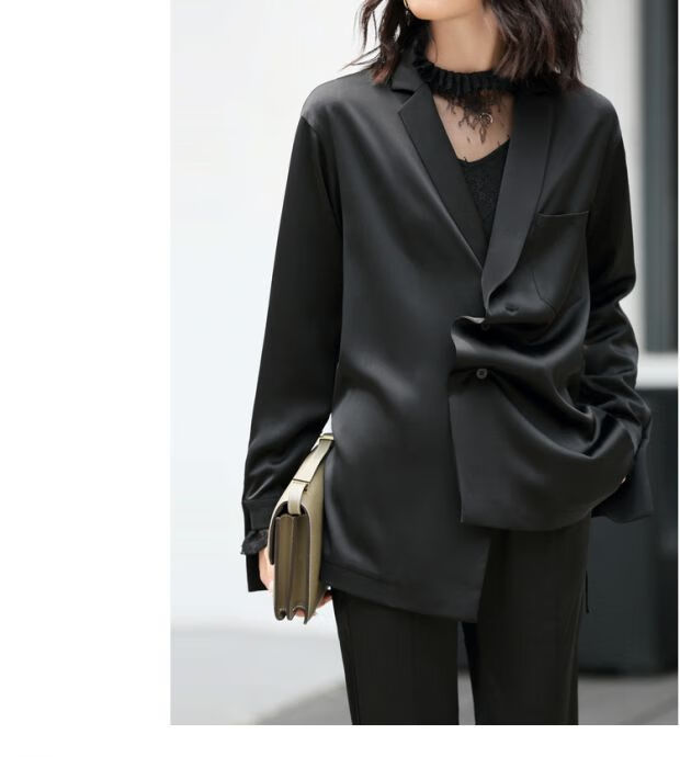AMII Women's 2025 Minimalist European Station Suit Casual Pants Suit Autumn New Medium Long Loose Lapel Outer Black (Top) XL 170/92A