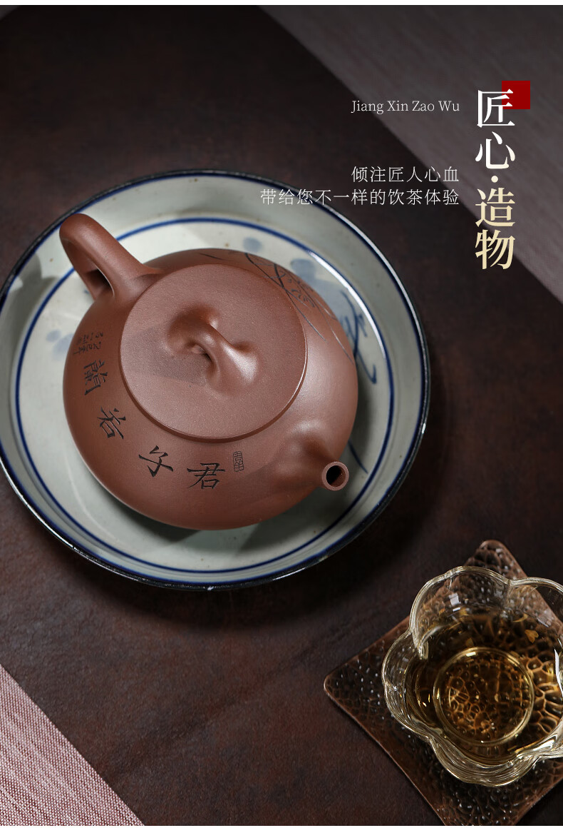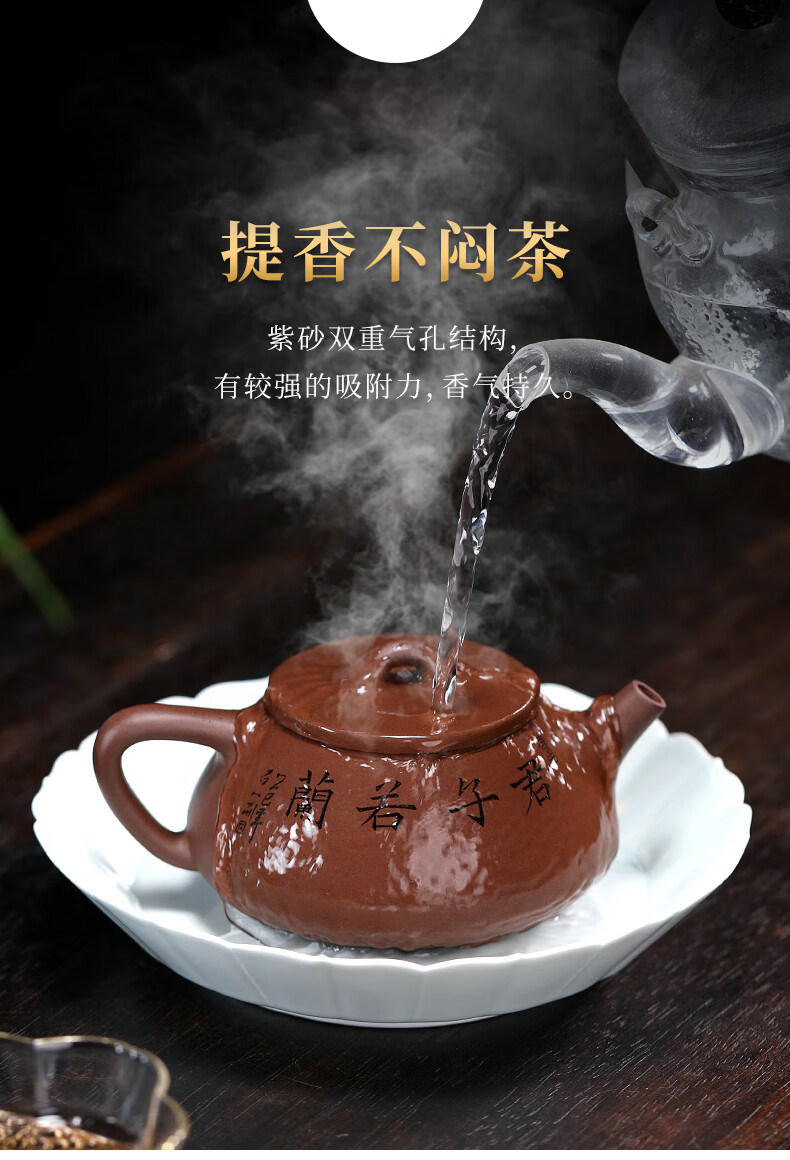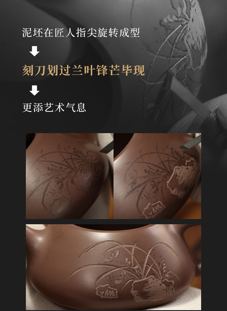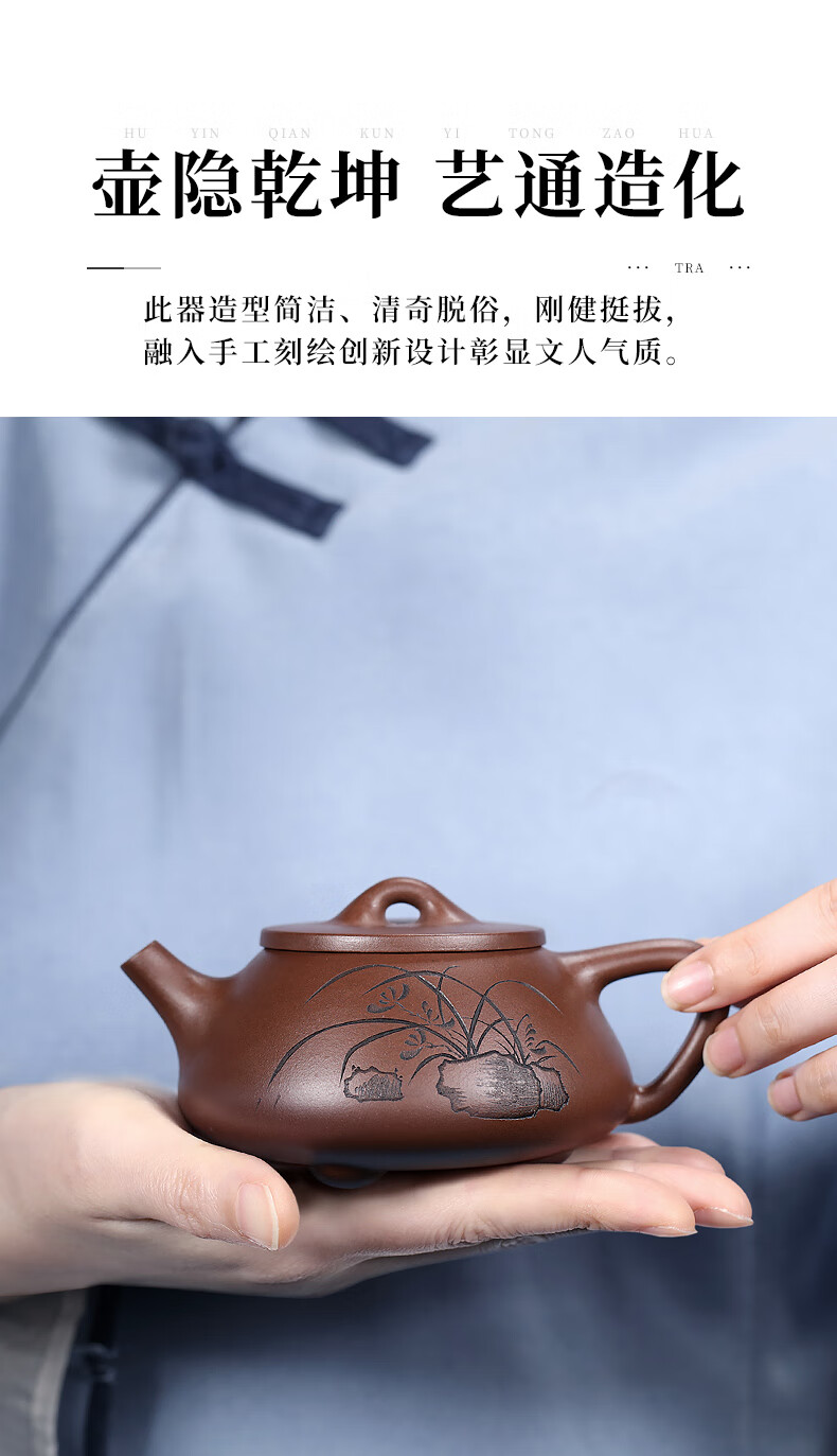 Zanghu Tianxia Yixing purple sand pot purely hand-engraved teapot stone ladle pot household kung fu teapot tea set orchid stone ladle pot orchid stone ladle (single pot) 210ml