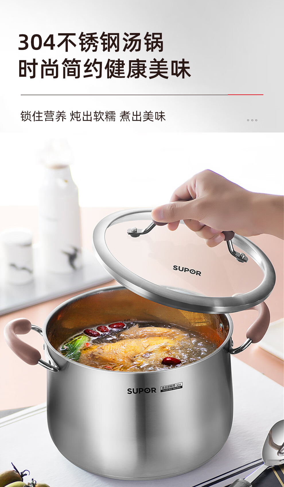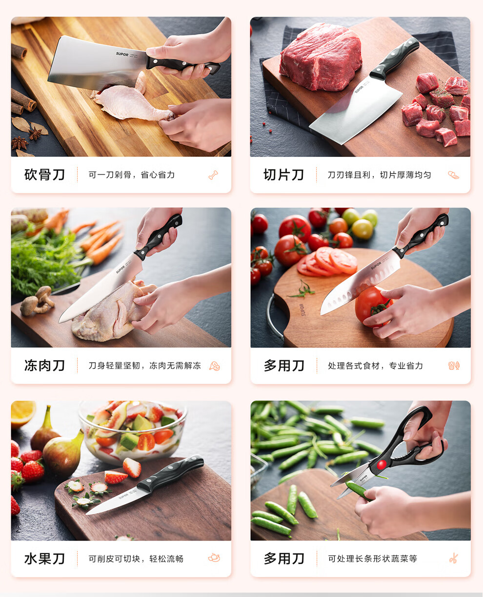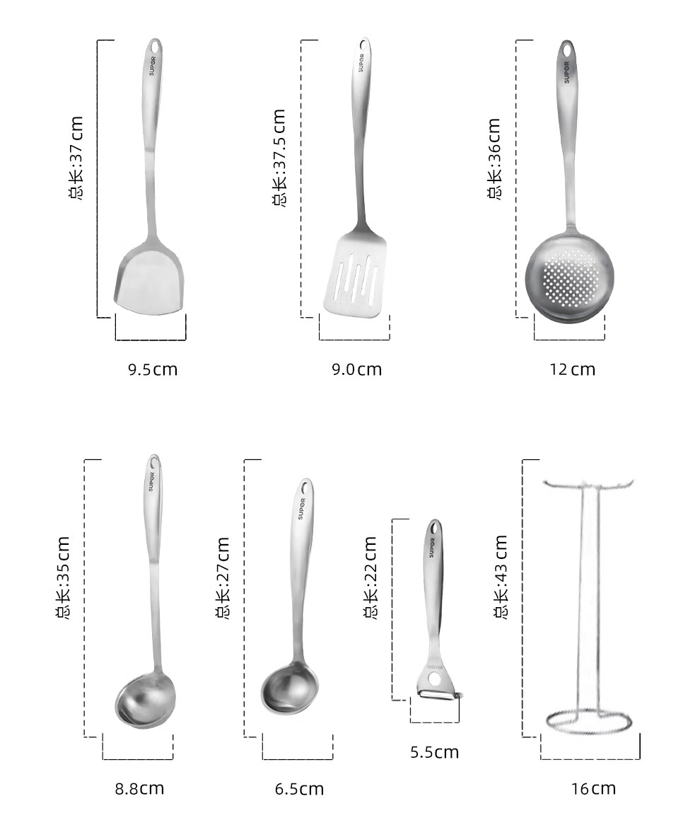 SUPOR kitchenware set, stainless steel pot set, wok, hot pot, soup, milk pot, pressure cooker, steamer set, knife set, shovel spoon, cutting board, exquisite 22-piece set
