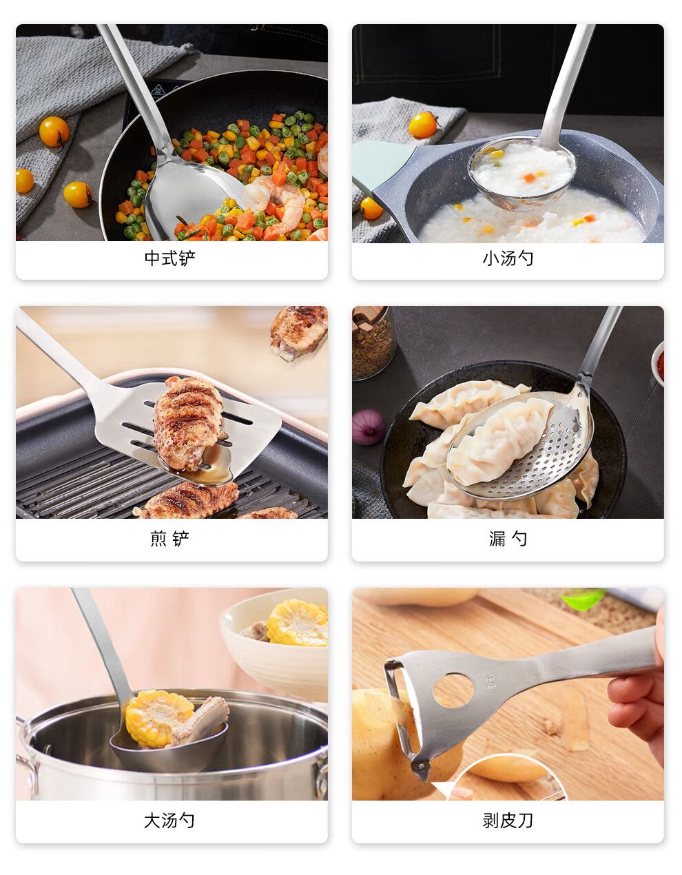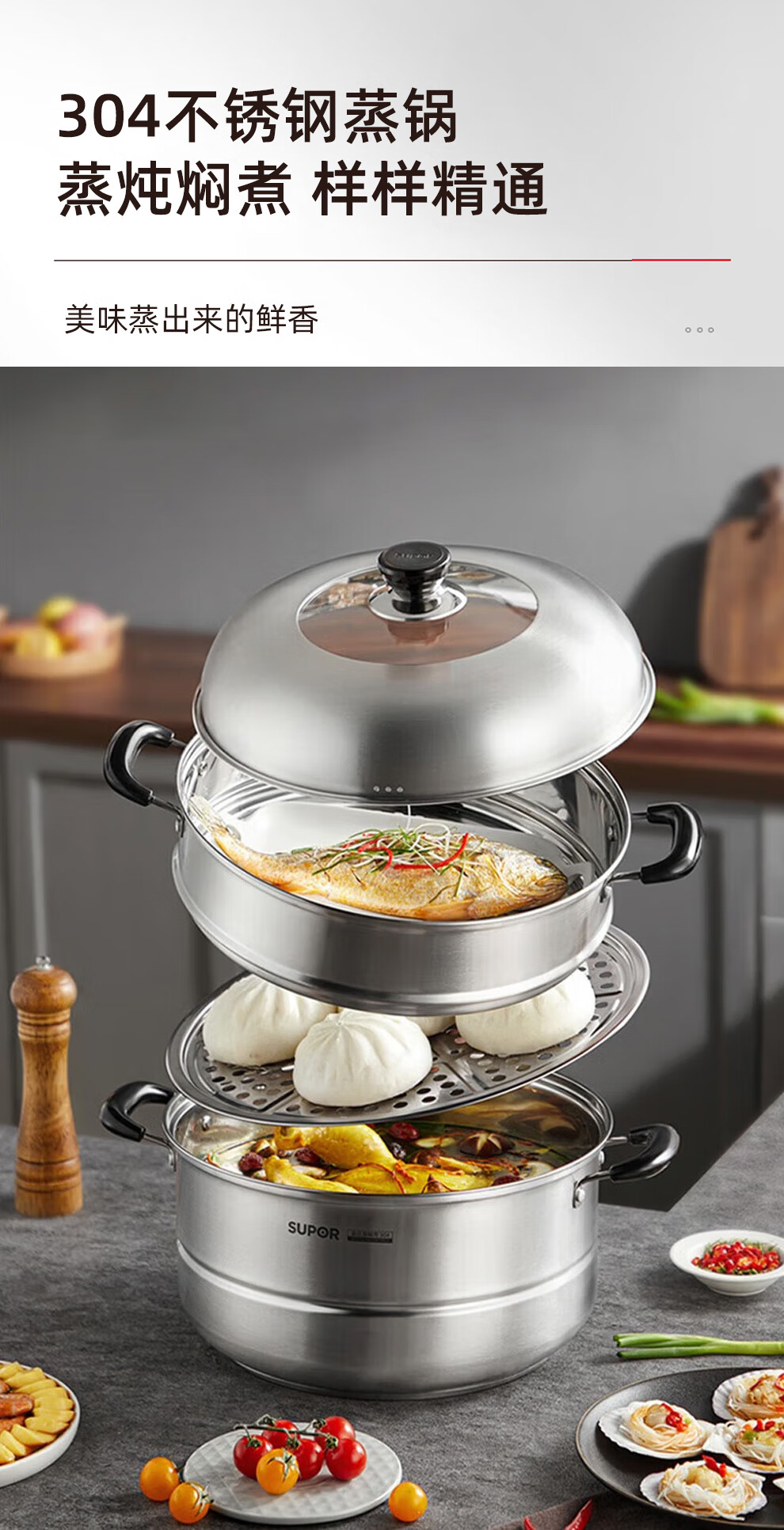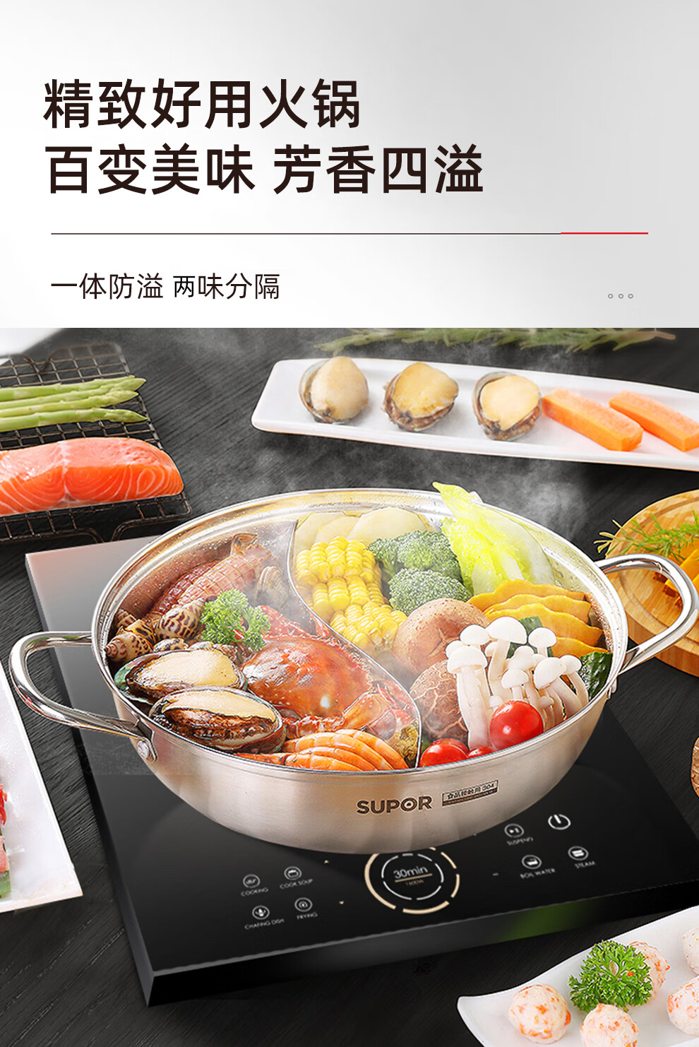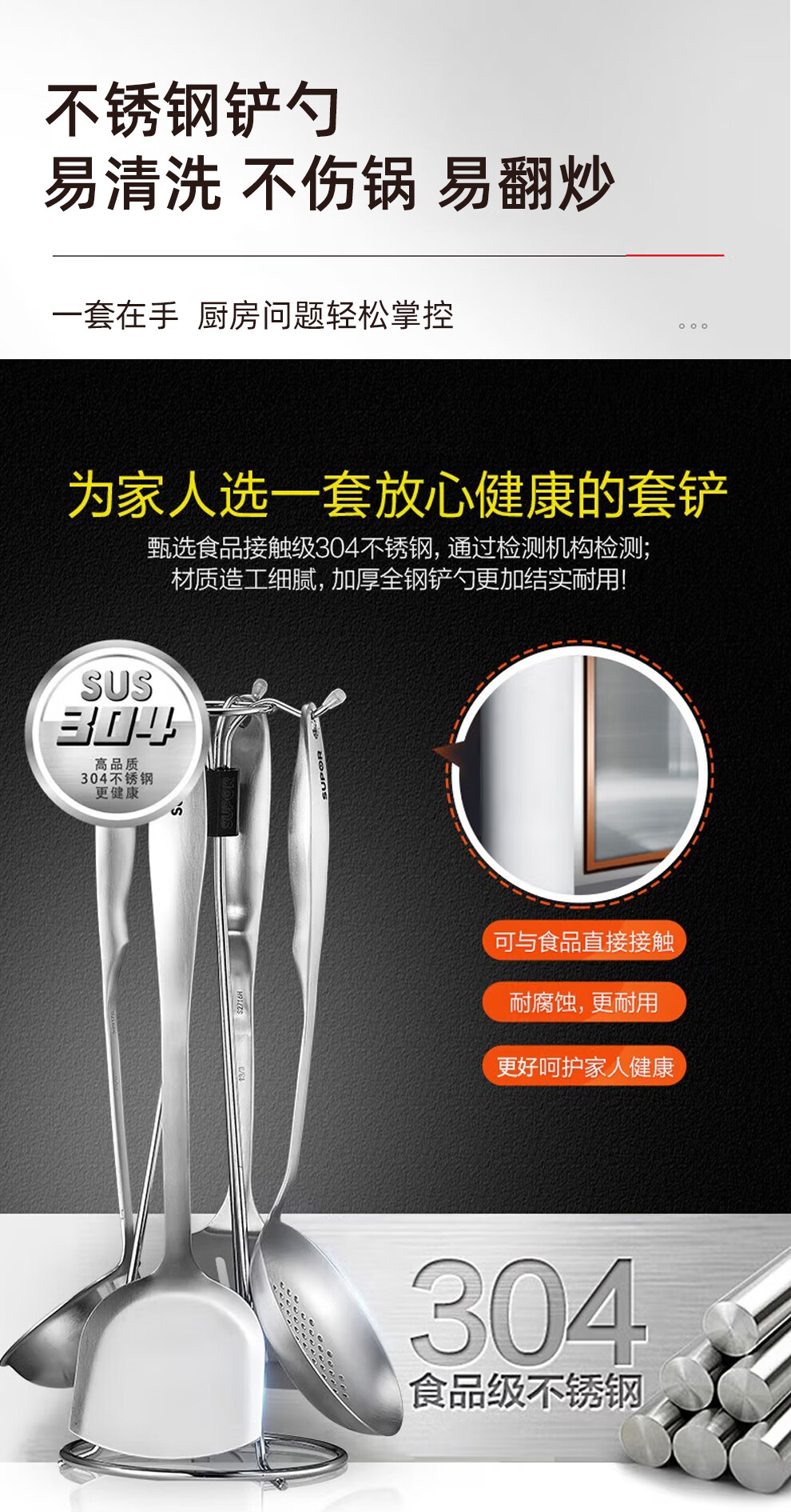 SUPOR kitchenware set, stainless steel pot set, wok, hot pot, soup, milk pot, pressure cooker, steamer set, knife set, shovel spoon, cutting board, exquisite 22-piece set