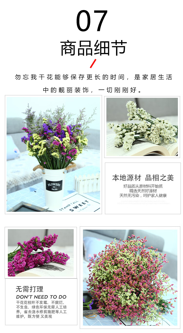 Love Yunnan Forget-Me-Not Dried Flowers Flower Ornaments Living Room Decoration Real Flower Arrangement Gypsophila Bouquet Festival Birthday Matching Rose Red + Red Crystal + Grass About 30 pcs