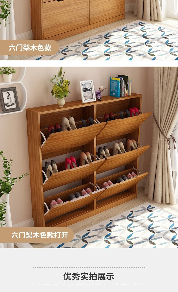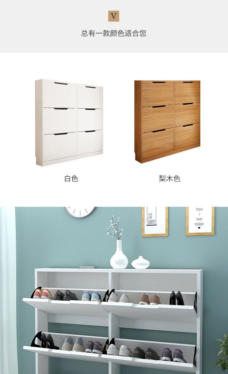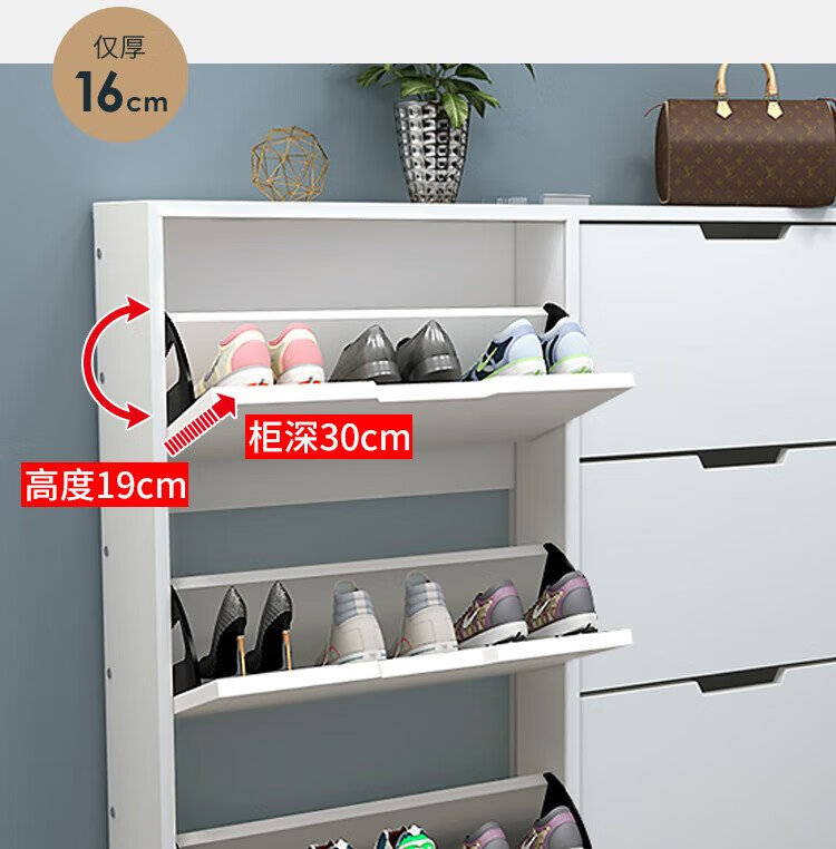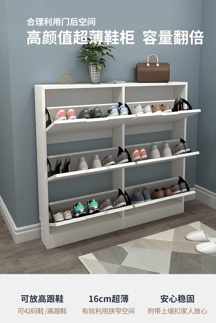 Yameile ultra-thin shoe cabinet door entry cabinet, tipping shoe cabinet storage cabinet integrated against the wall, corridor home closed shoe rack