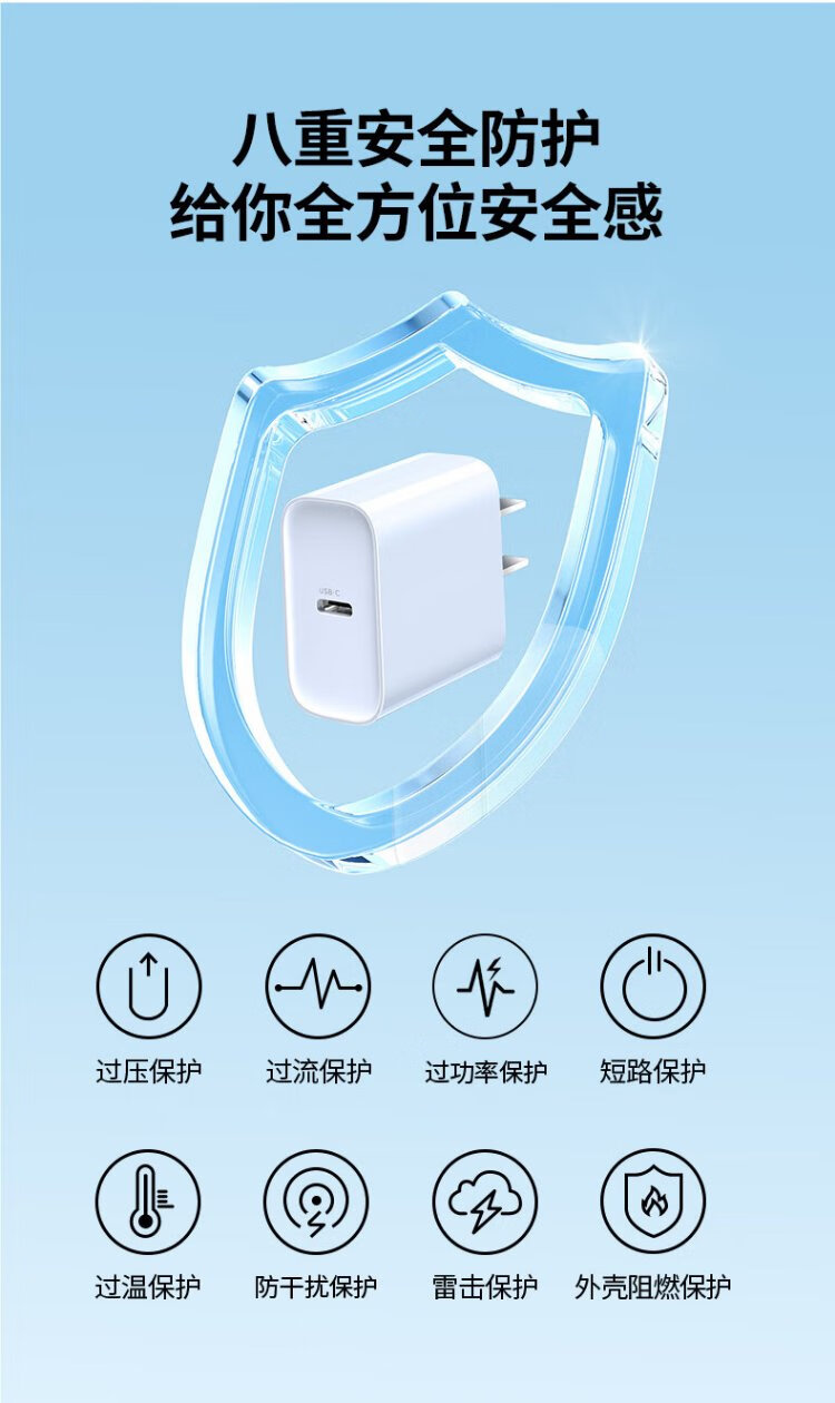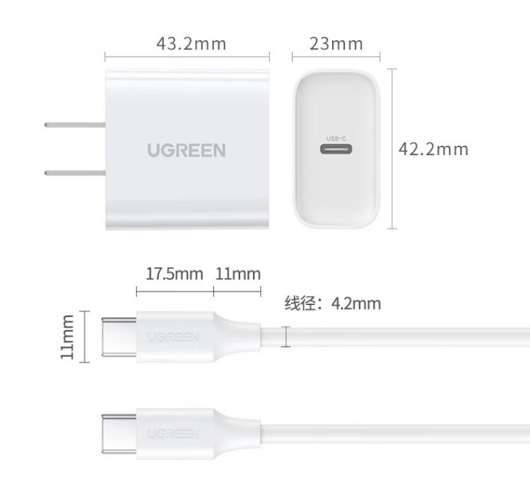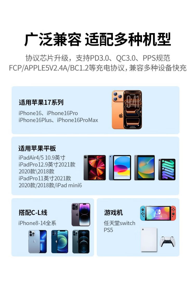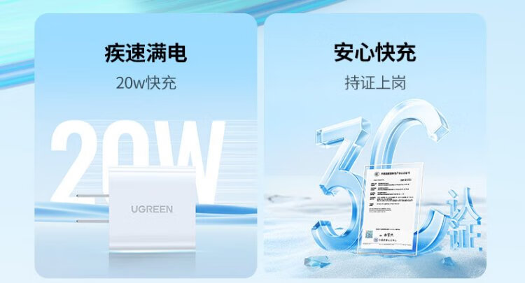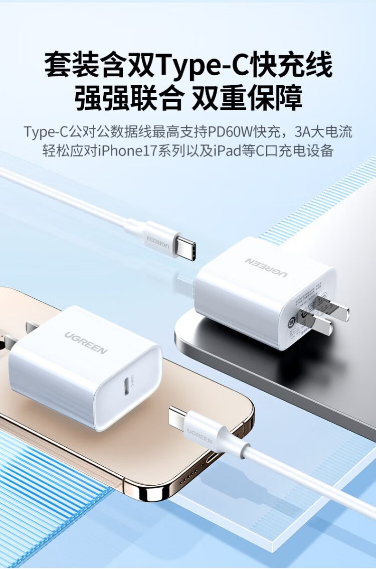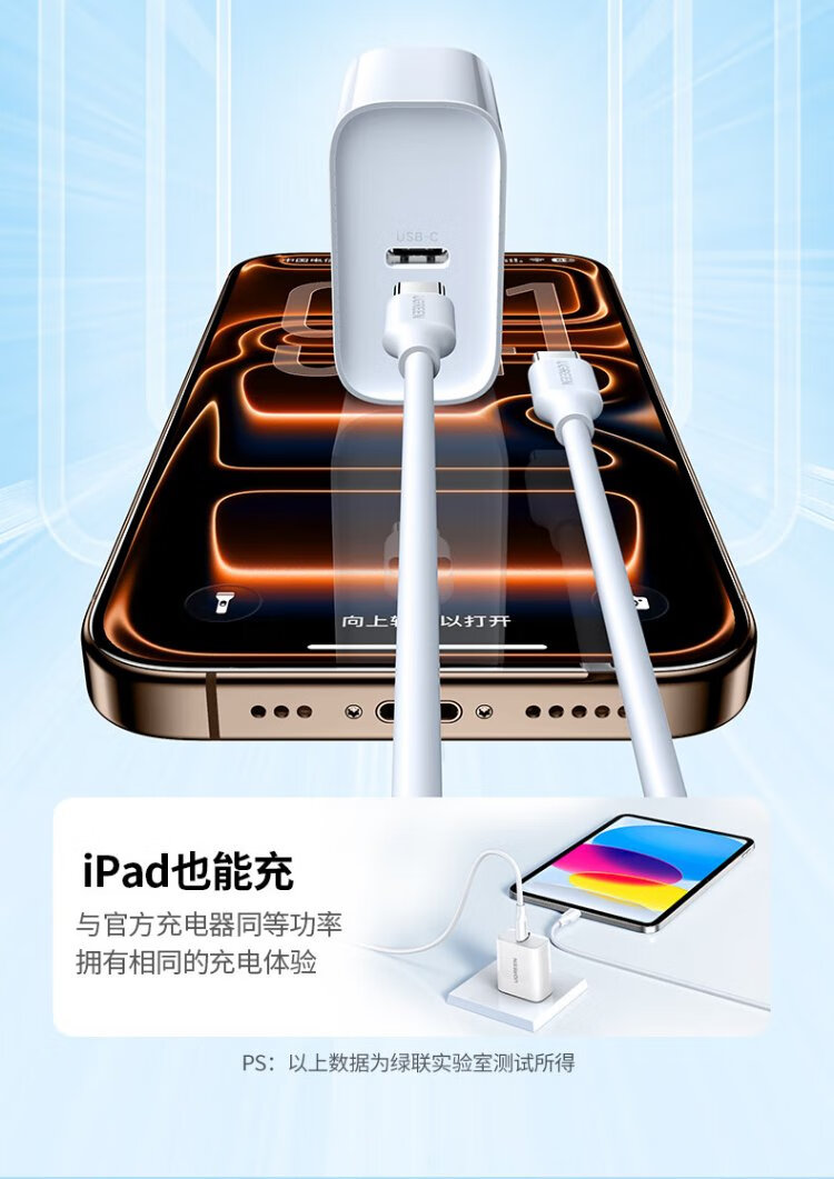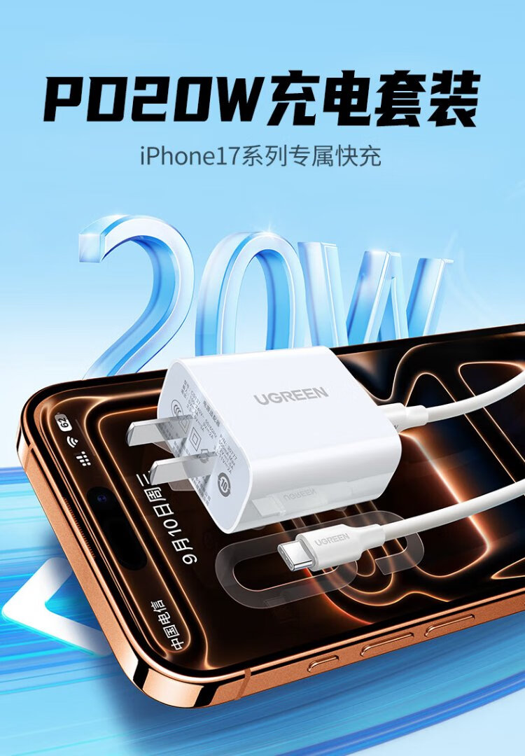Green Alliance 3C certified Apple charger head set GaN PD20W fast charging head + Type-C data cable for iPhone17ProMax/16Plus/15/14 PD20W Apple 8-17 fast charging head