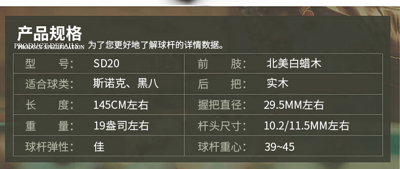 Jianying billiard cue split English snooker billiard cue large head medium head black 8 eight Chinese style single cue SD20 SD20 single cue package (without box) 11.5mm