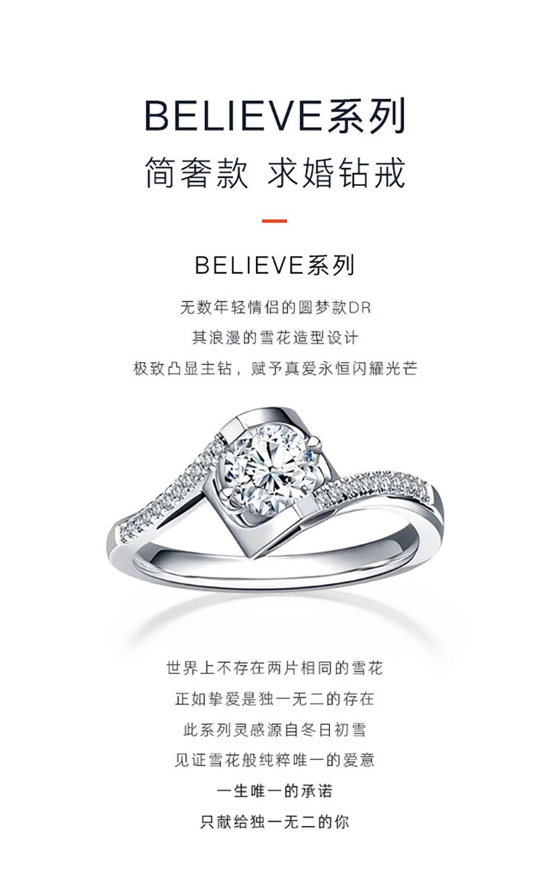 DR Proposal Diamond Ring Platinum BELIEVE Simple Luxury Style Engagement Wedding Holiday Gift in Snow Love Land WJ0078 Total About 22 Points 18 Points G Color SI1-Platinum