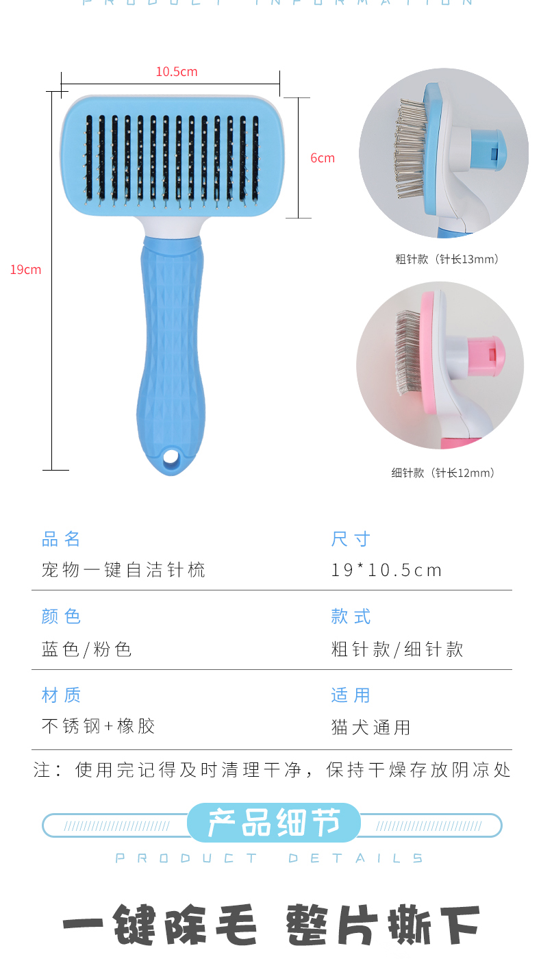 XiChong cat comb, dog hair comb to remove floating hair, Teddy golden hair cleaner brush, dog hair brush, knot-opening comb, small and medium-sized dog pet hair comb, large dog supplies, anti-slip handle, square self-cleaning comb, gray fine needles