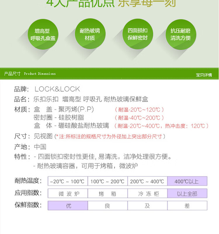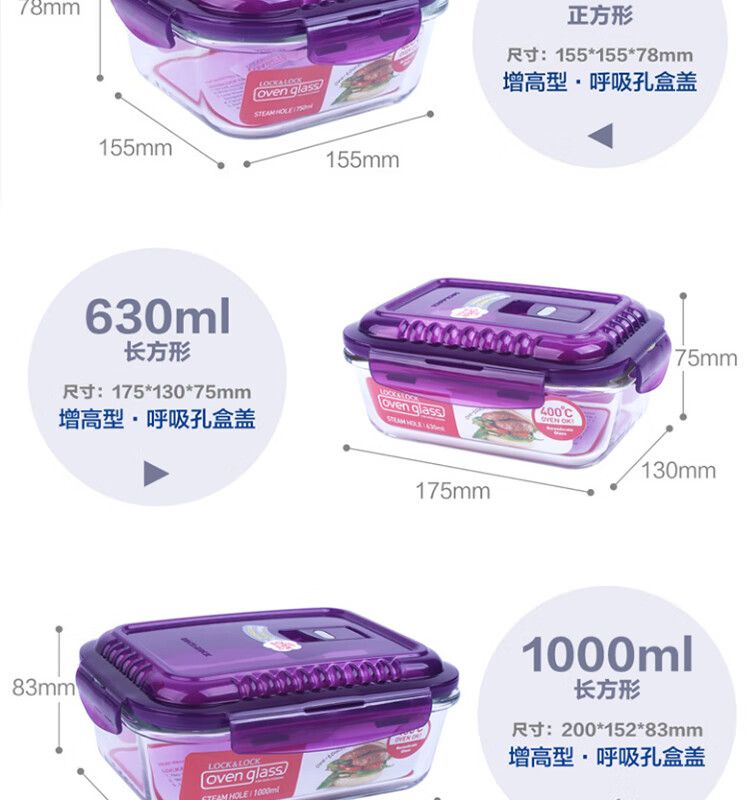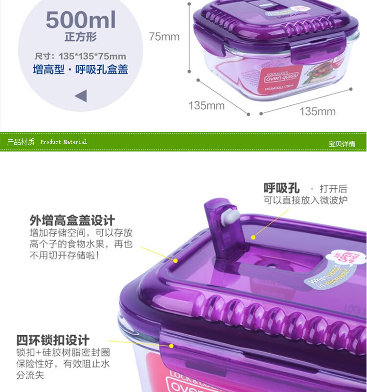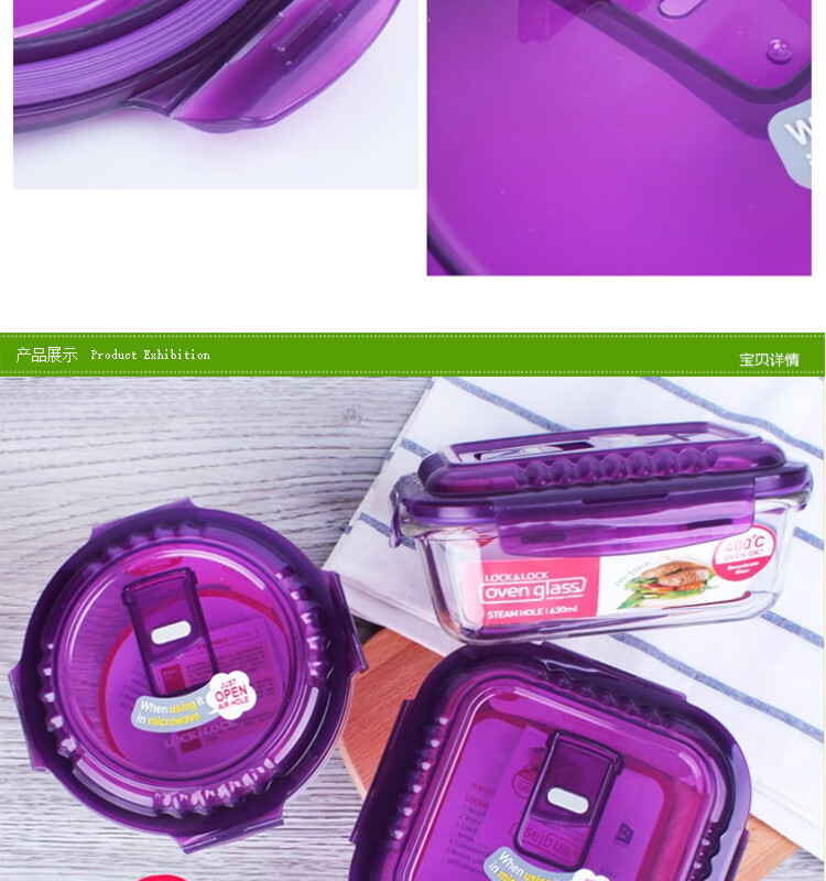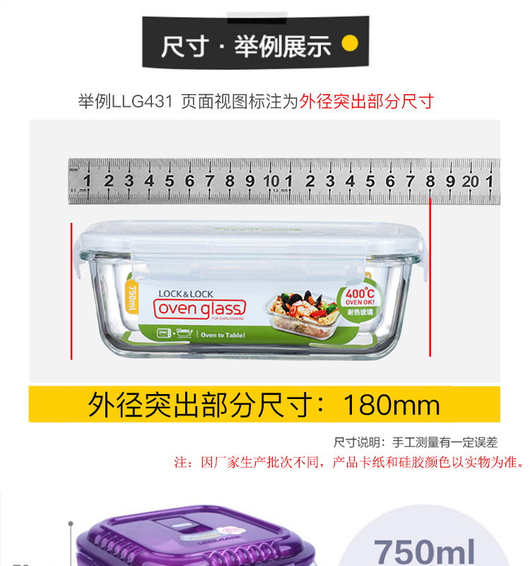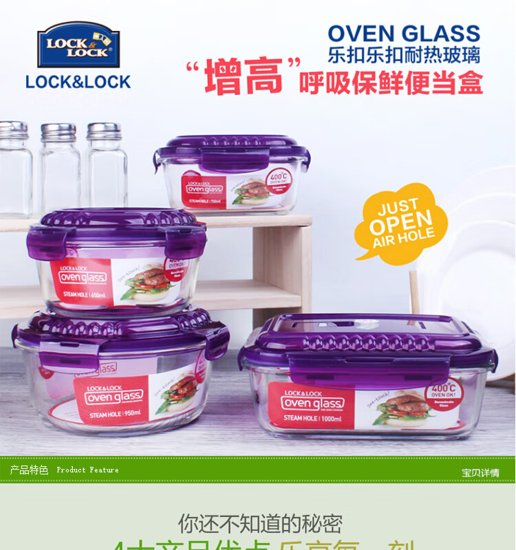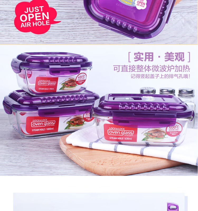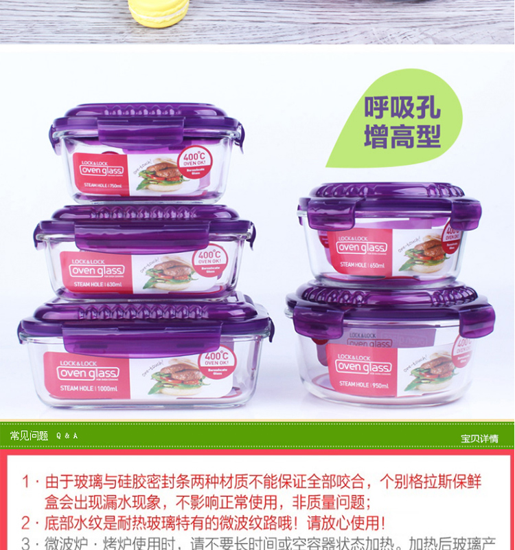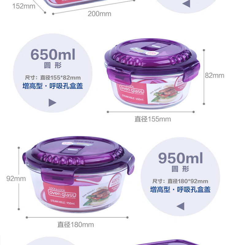 Lock and Lock breathable heat-resistant glass crisper microwave lunch box sealed lunch box lunch box instant noodle bowl 650ml