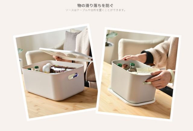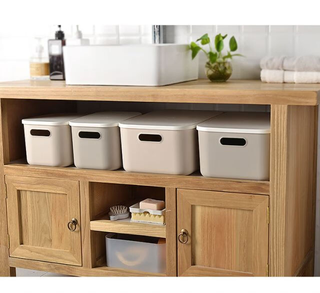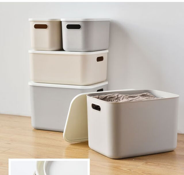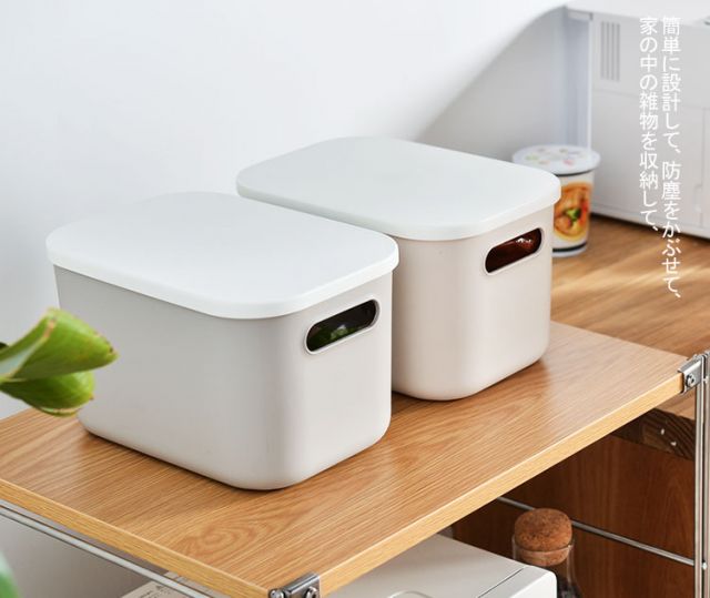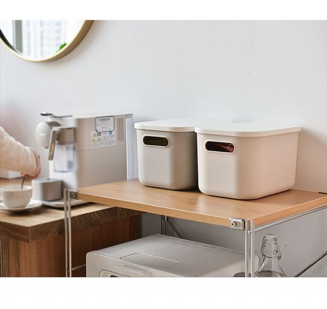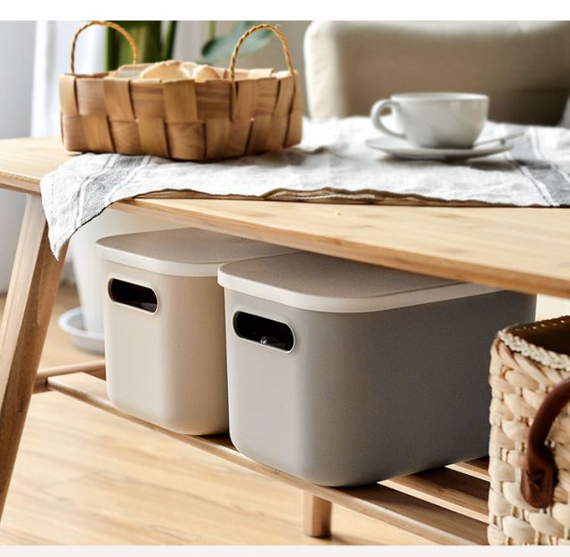 Bailu storage box with lid, home storage, kitchen storage box, sundry organizer, desktop storage, snack toy plastic basket, light gray large size