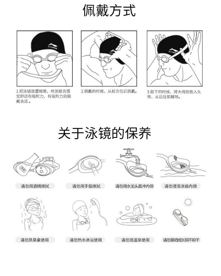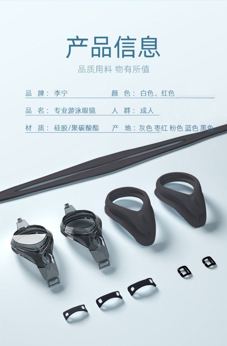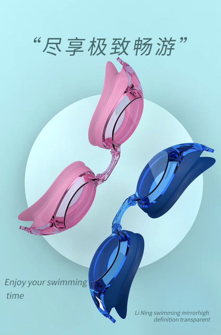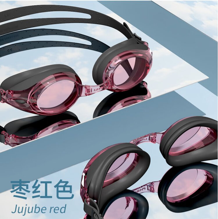 Li Ning swimming goggles high-definition anti-fog large-frame swimming goggles diving waterproof universal flat swimming goggles swimming equipment LSJL6233 maroon red