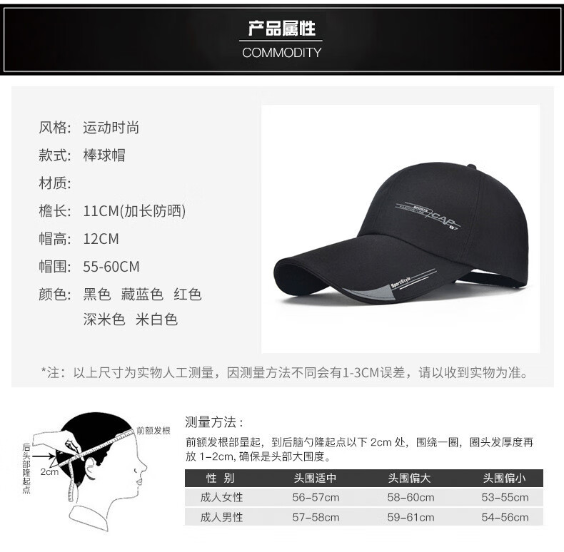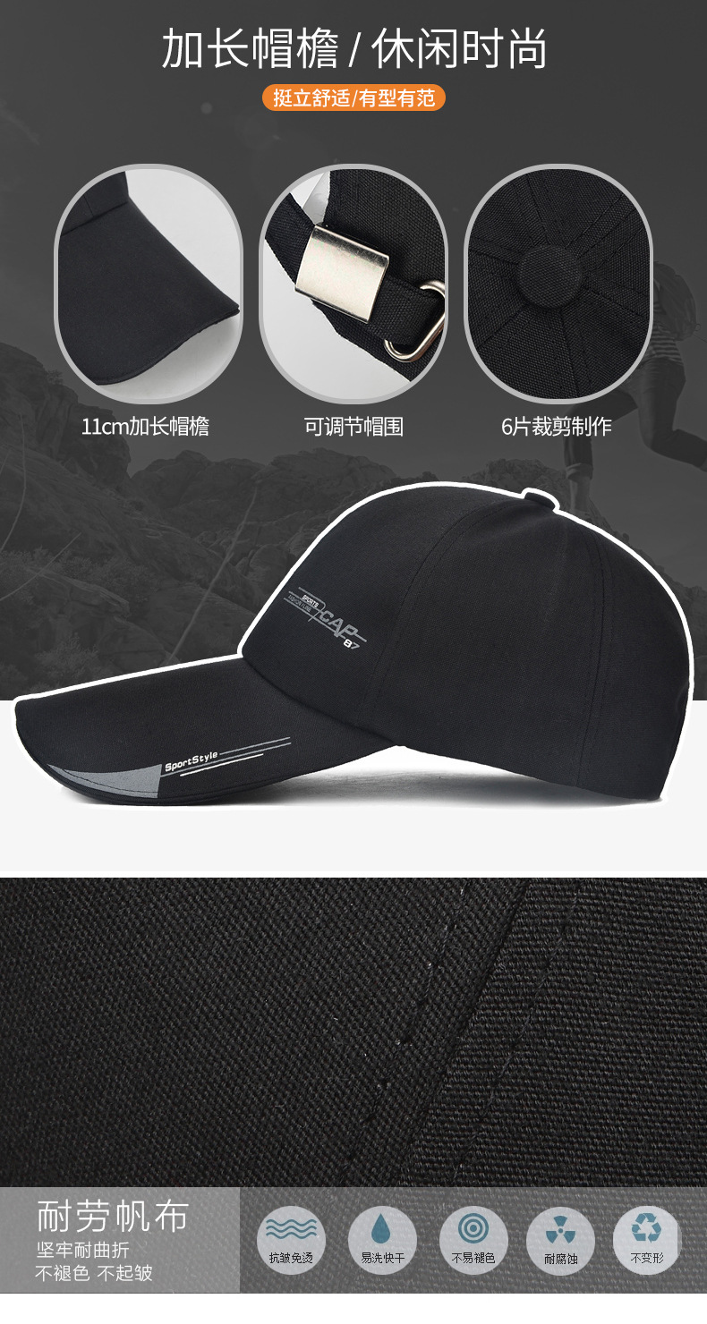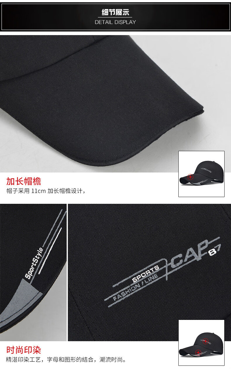 Baisiteng Hats Men's and Women's Baseball Caps Korean Style Casual Trendy Extended Brim Spring and Autumn Sun Protection Shade Outdoor Peaked Cap Summer Sports Fishing Hat Black Extended Brim Adjustable
