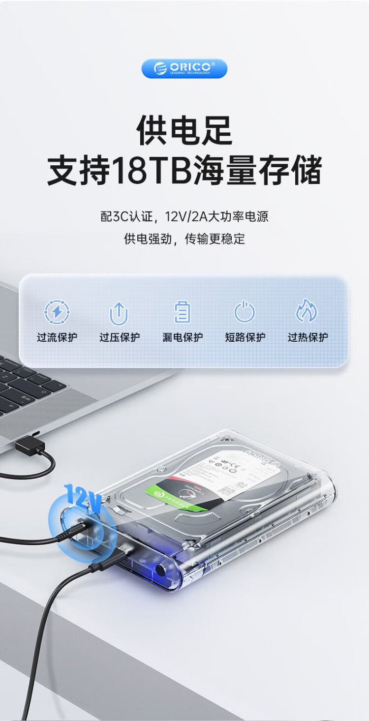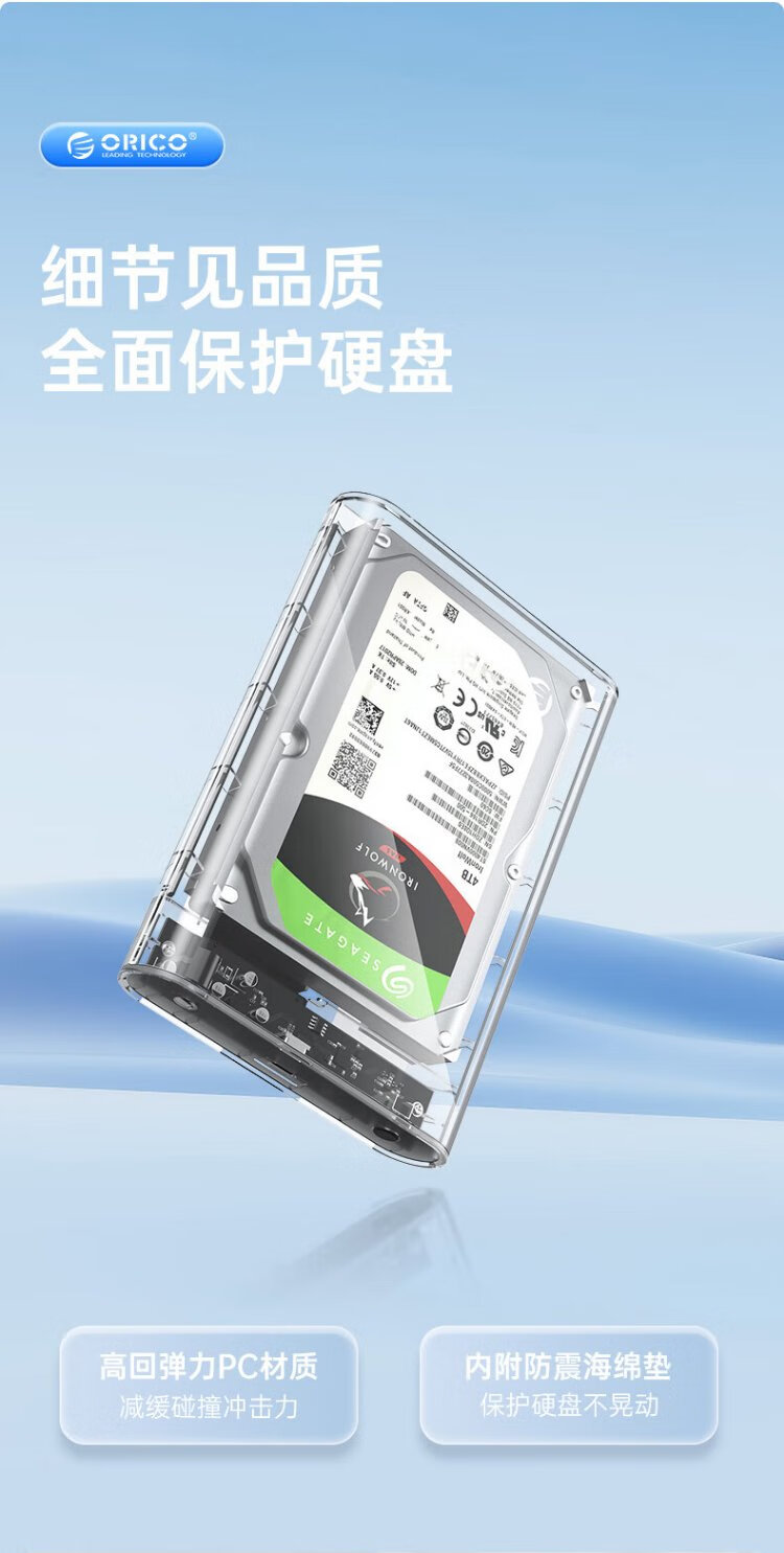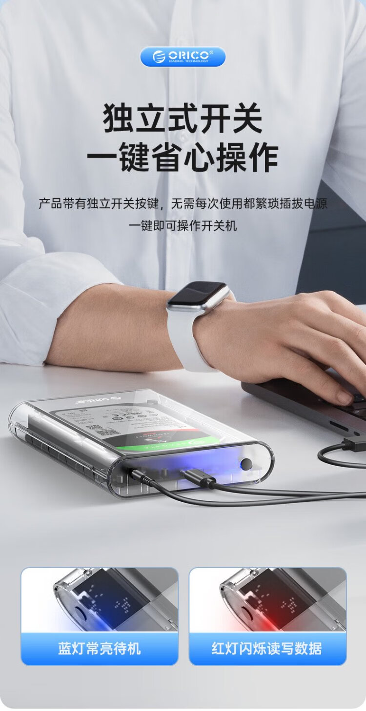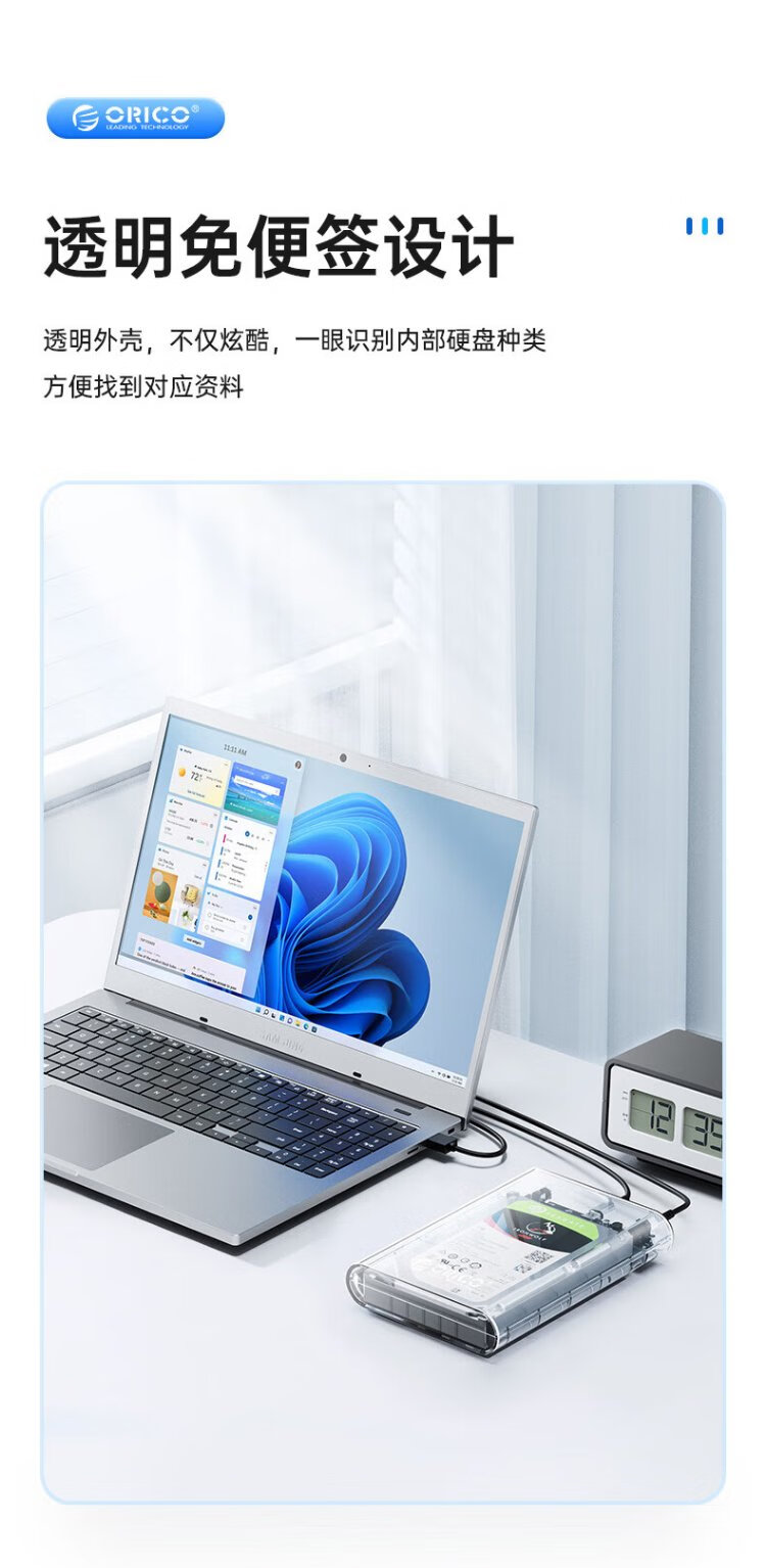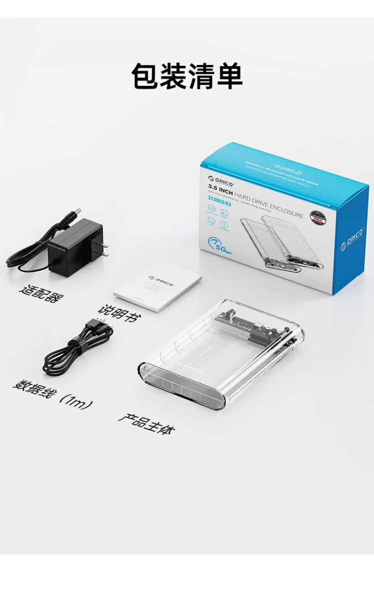 ORICO 3.5-inch mobile hard drive box Type-C3.1 SATA serial port mechanical hard drive external hard drive box-transparent 3139C3