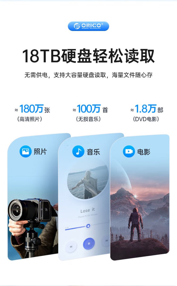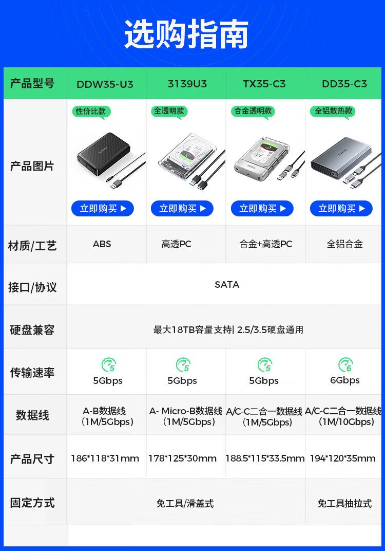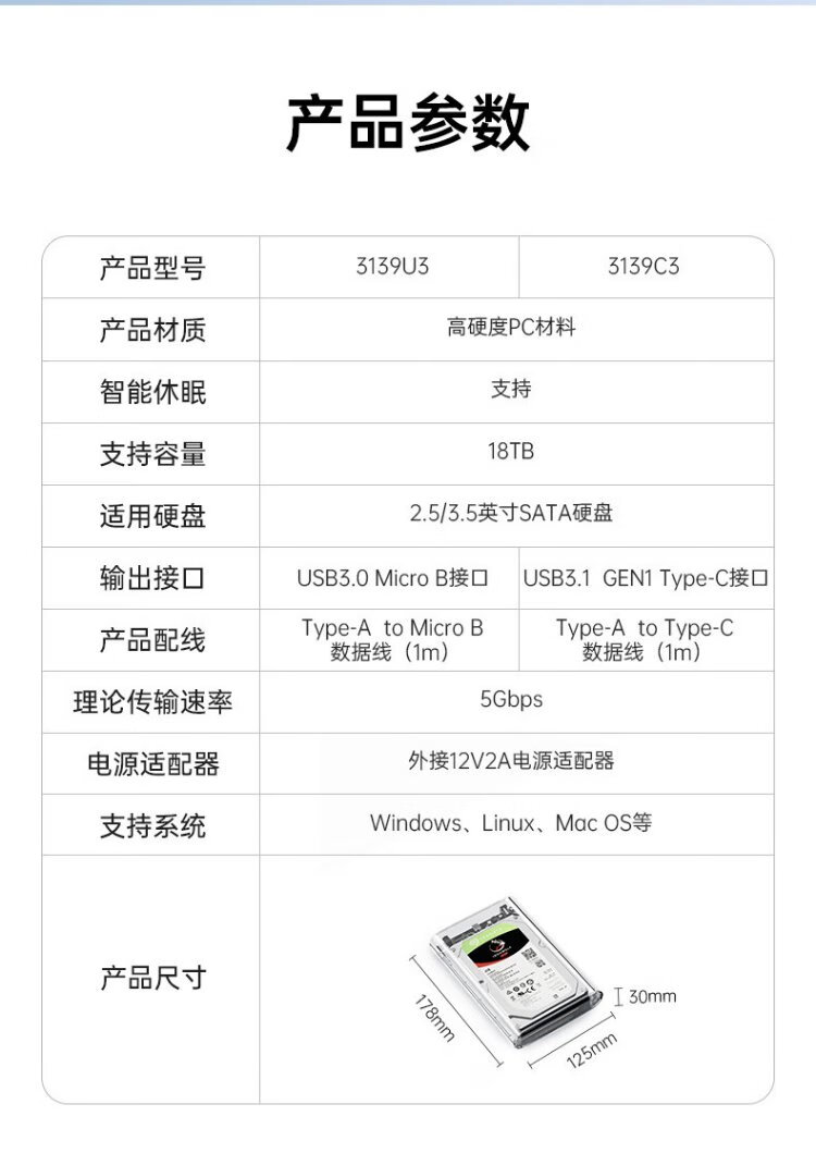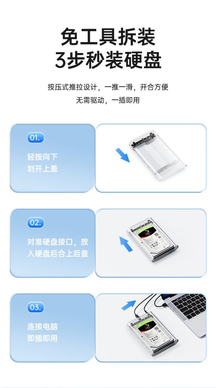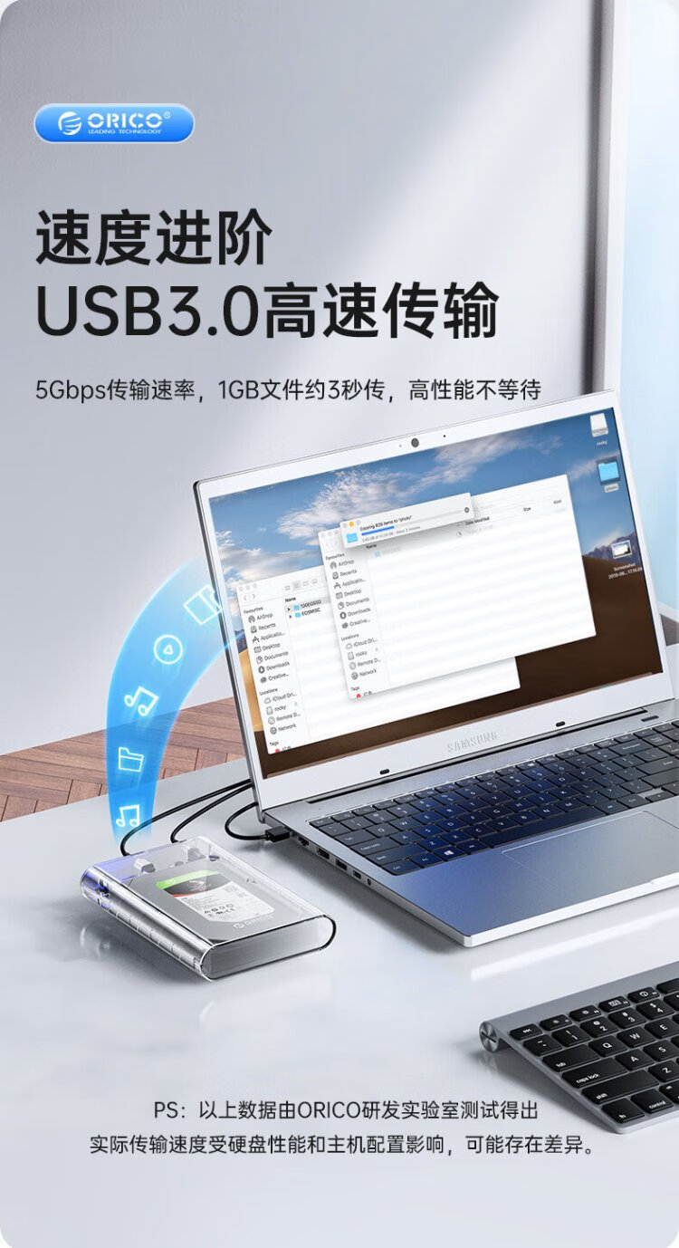ORICO 3.5-inch mobile hard drive box Type-C3.1 SATA serial port mechanical hard drive external hard drive box-transparent 3139C3