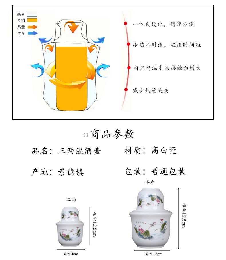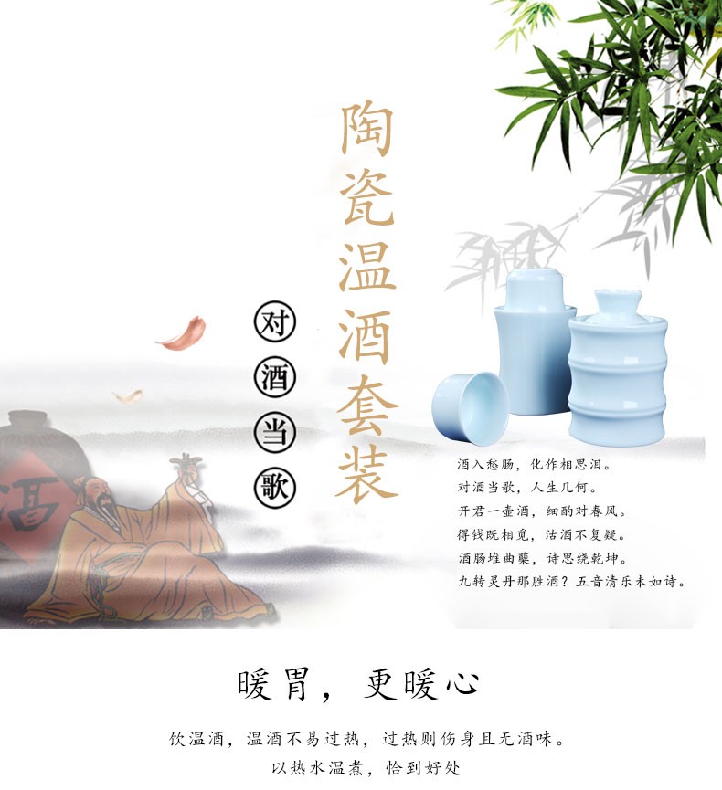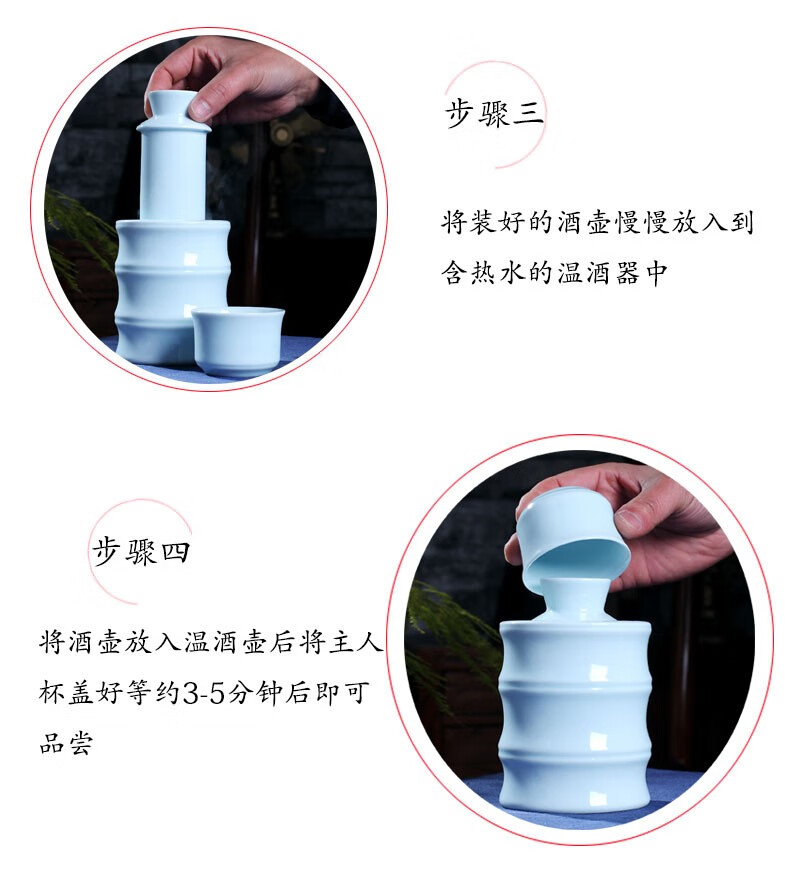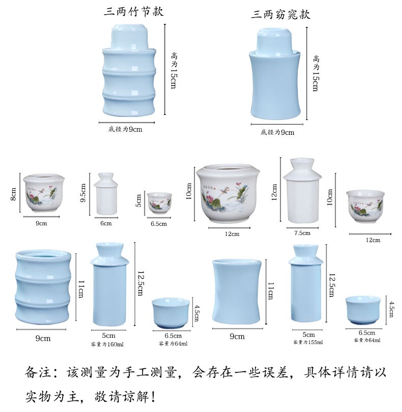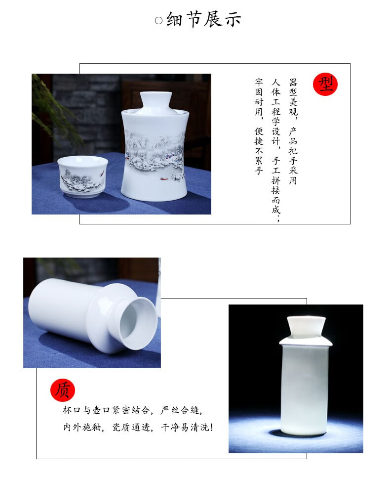 Porcelain Yun Jingdezhen Household Chinese-style Warming Ceramic Warming Wine Cup White Wine Kettle Two and a Half Jin Jin equals 0.5 kg Wine Divider Wine Cup Hot Wine Kettle Fuchun Shanju-3 Pack of 150ml