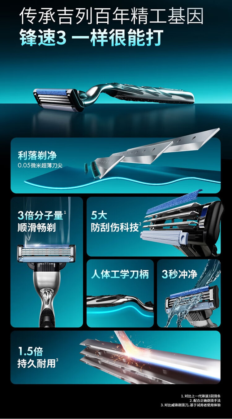 Gillette blades adapted to the Forward 3 classic razor blade Gillette head imported original 2-head non-Geely