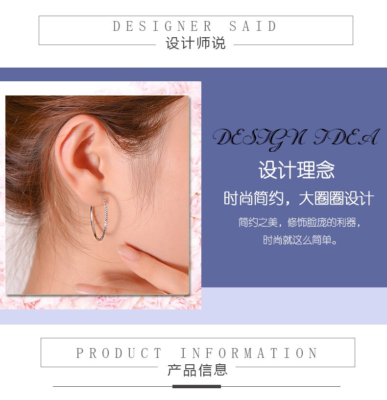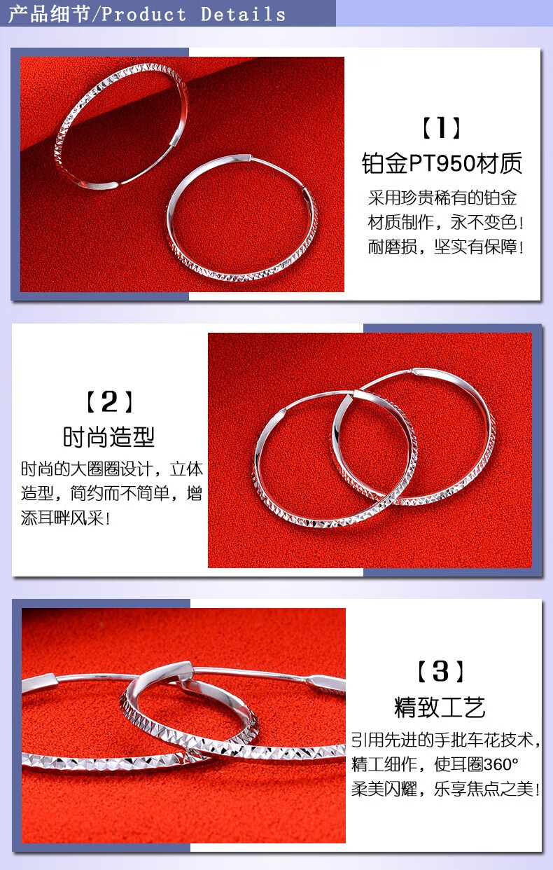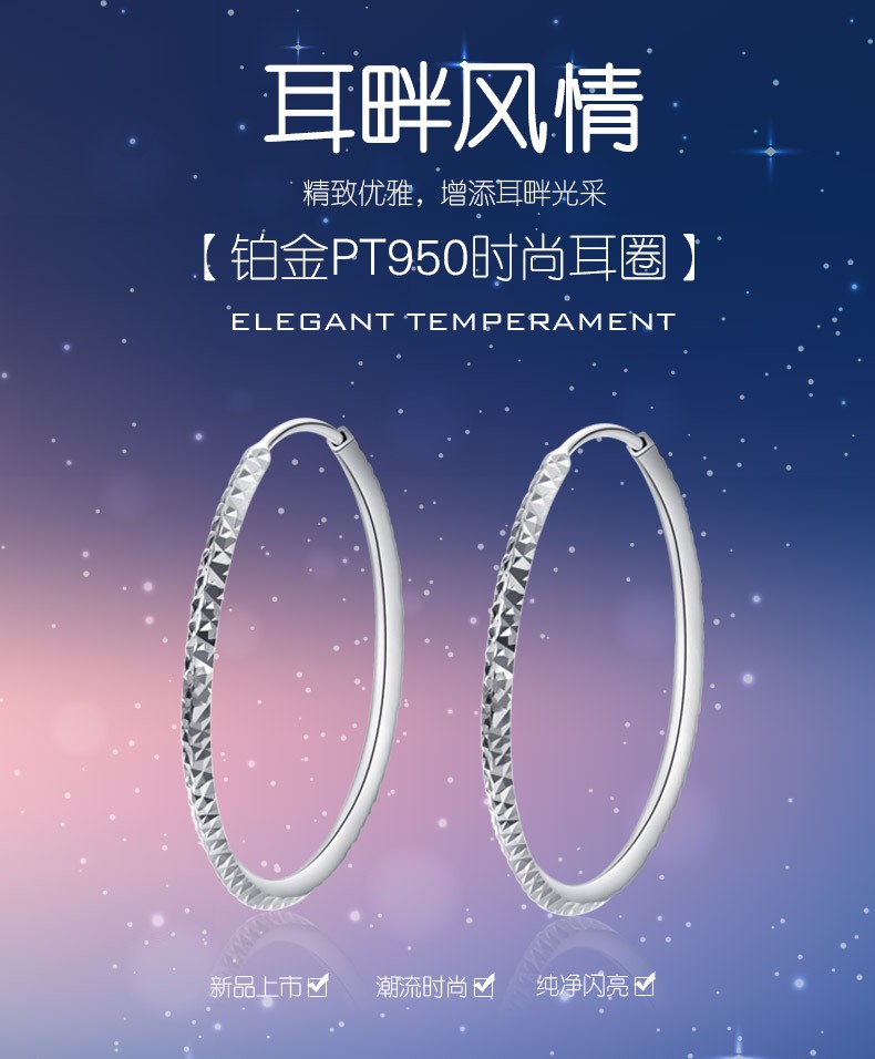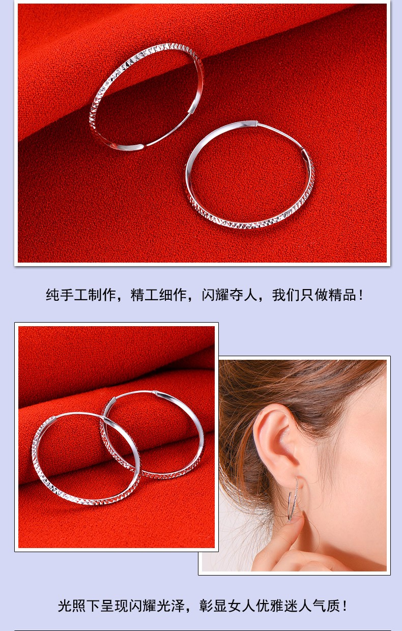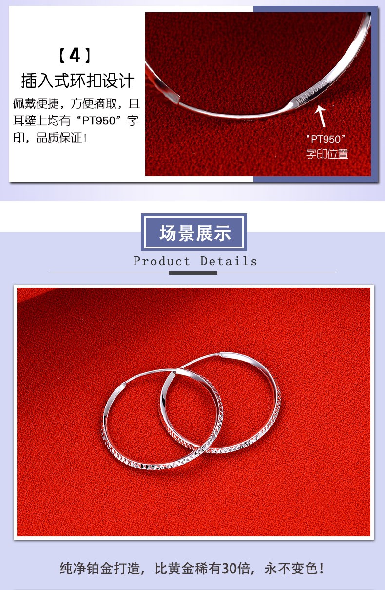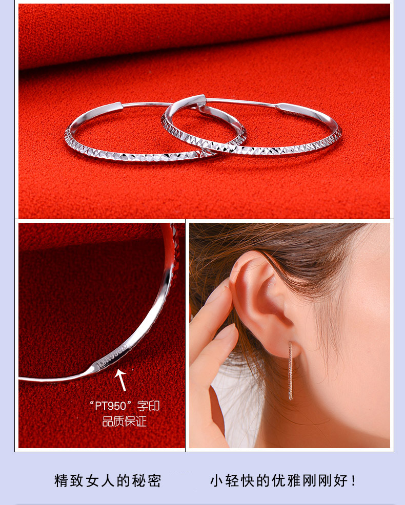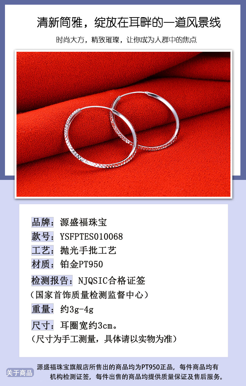Yuanshengfu's new PT950 high-quality fashionable platinum earrings, fashionable, simple and versatile platinum earrings, large earrings with car flowers, 4.40g (inner diameter about 3cm)