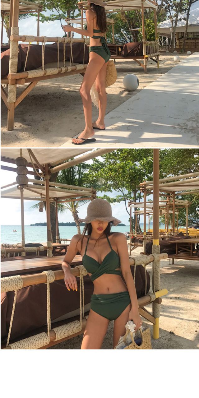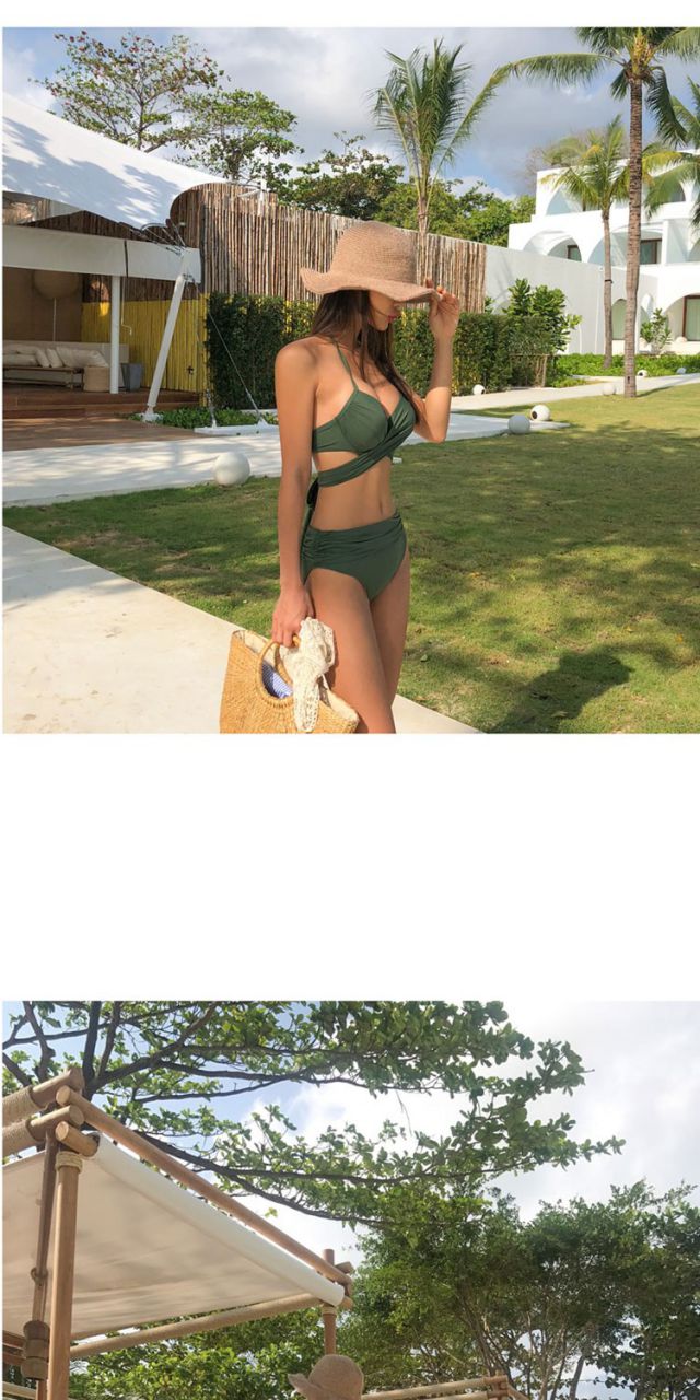Bikini swimsuit for women sexy large breasts push up hot spring swimsuit military green M