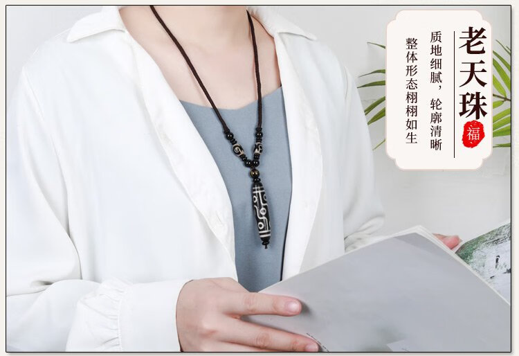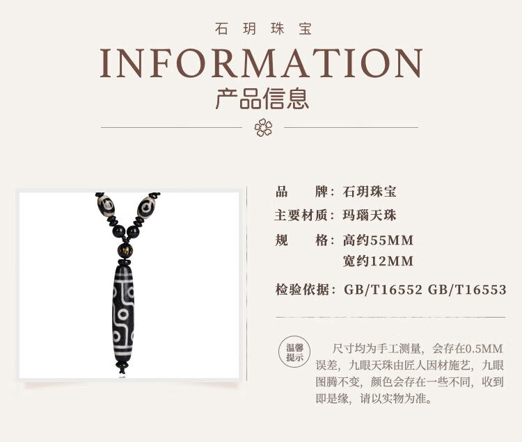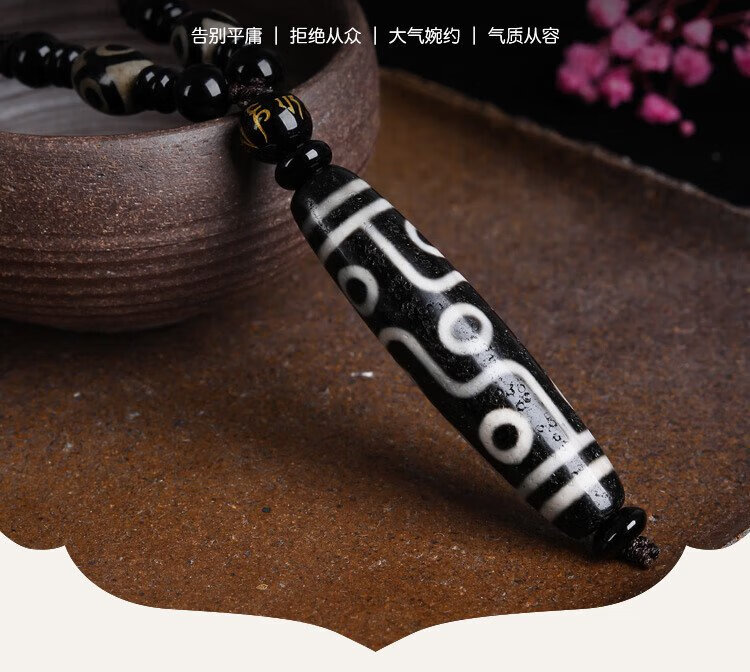 Shi Yue Jewelry Nine-Eyed Dzi Bead Pendant Necklace Chalcedony Crystal Agate Pendant Authentic Animal Year Gift Men and Women