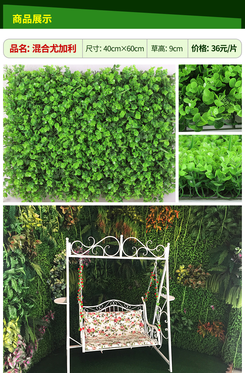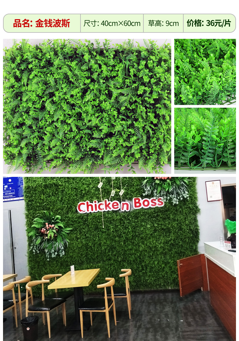 Win the show, simulated plant wall, green plant wall background wall, green simulated plant mall advertising door head artificial decoration, broad-leaf grass 40*60CM piece