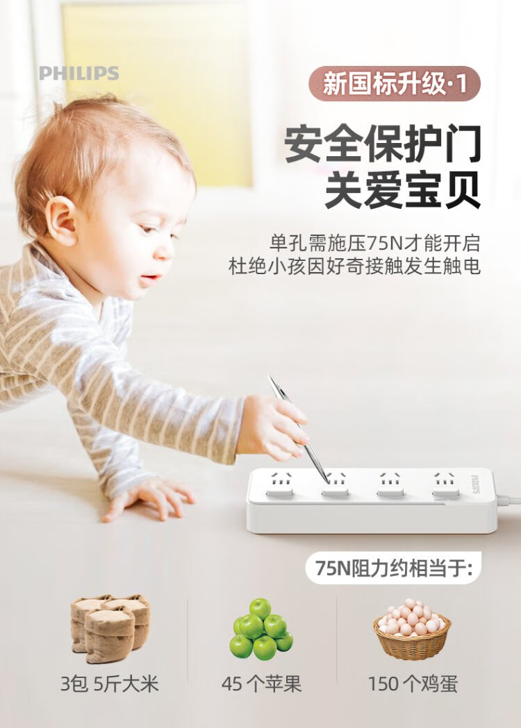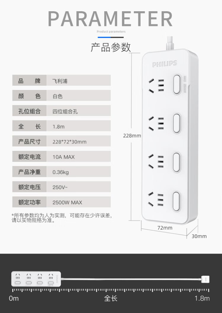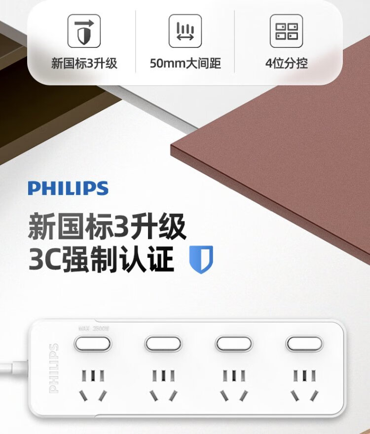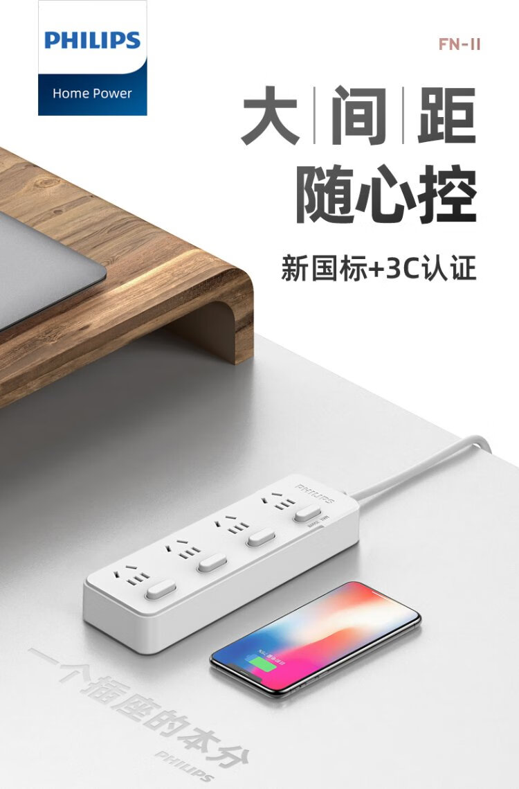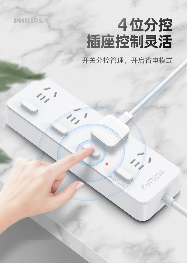 Philips (PHILIPS) new national standard safety socket 4-hole separate control 1.8 meters child protection door plug board / strip / strip / terminal board / drag strip 3421C