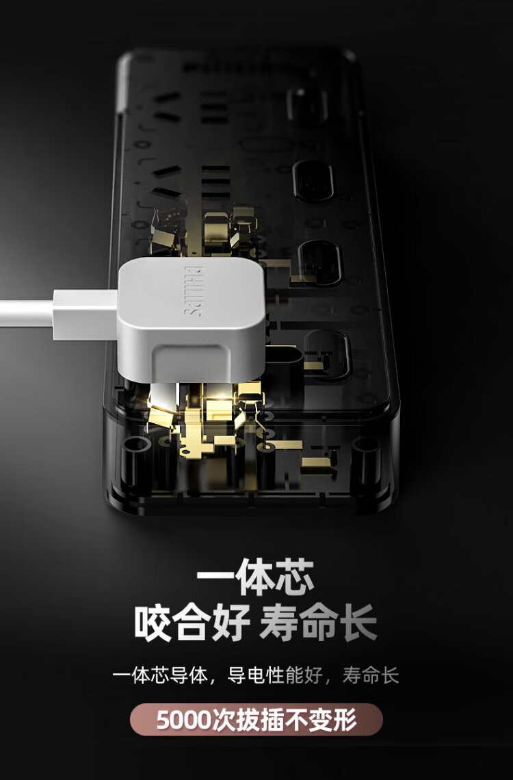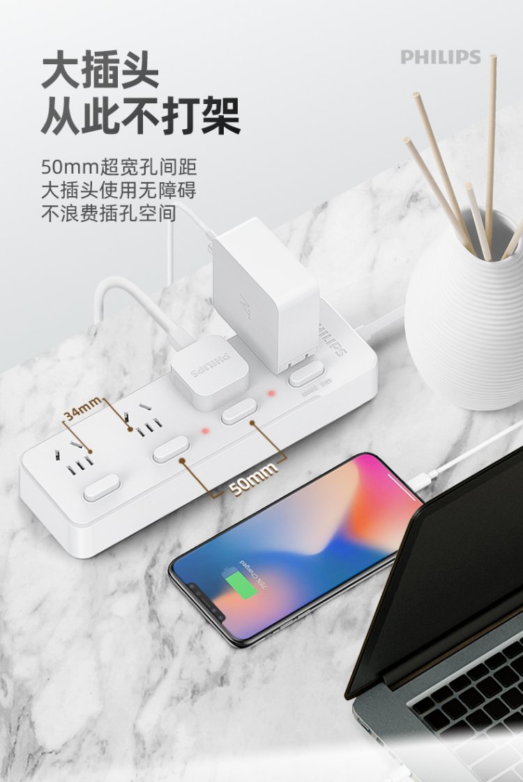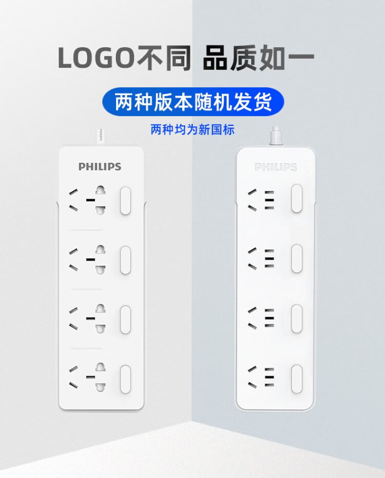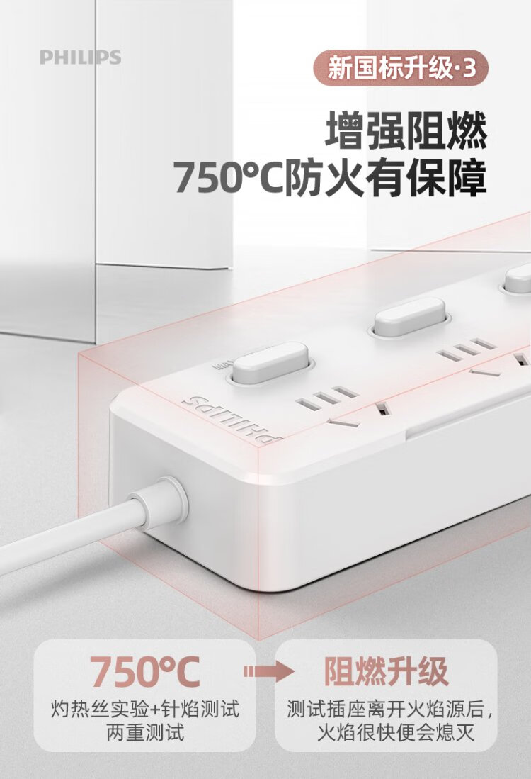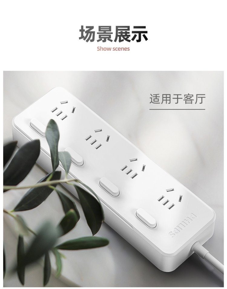 Philips (PHILIPS) new national standard safety socket 4-hole separate control 1.8 meters child protection door plug board / strip / strip / terminal board / drag strip 3421C