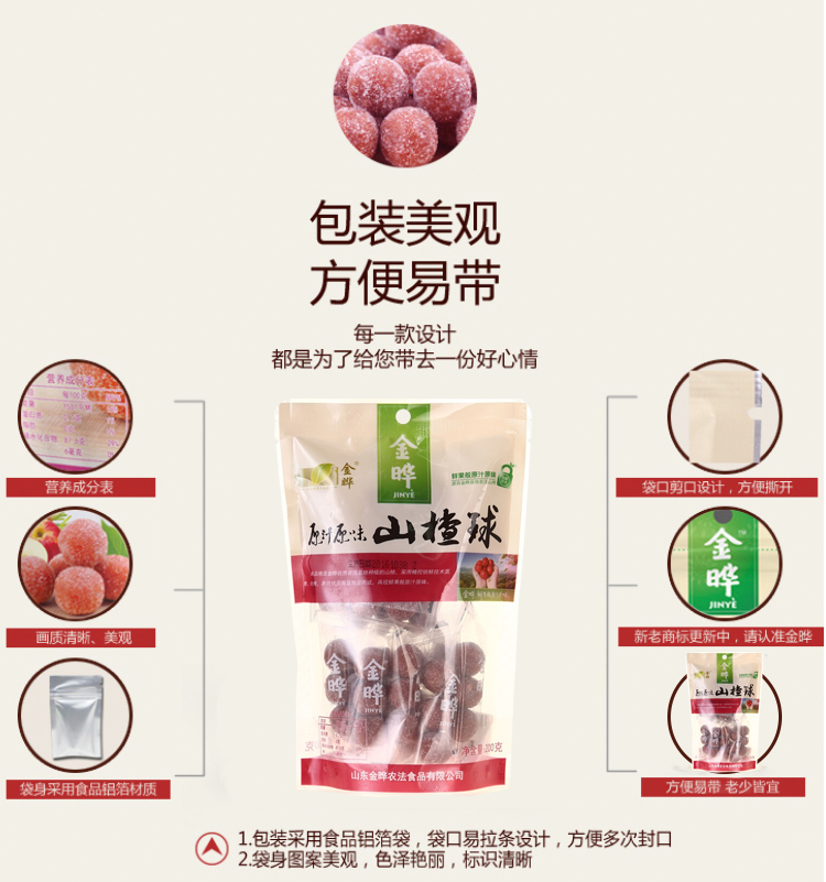 Jinye snacks, candied fruits, original hawthorn balls 200g/bag
