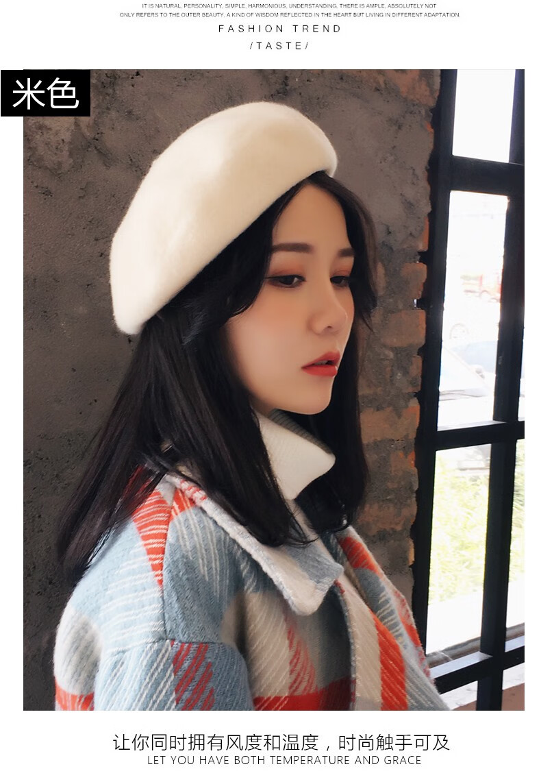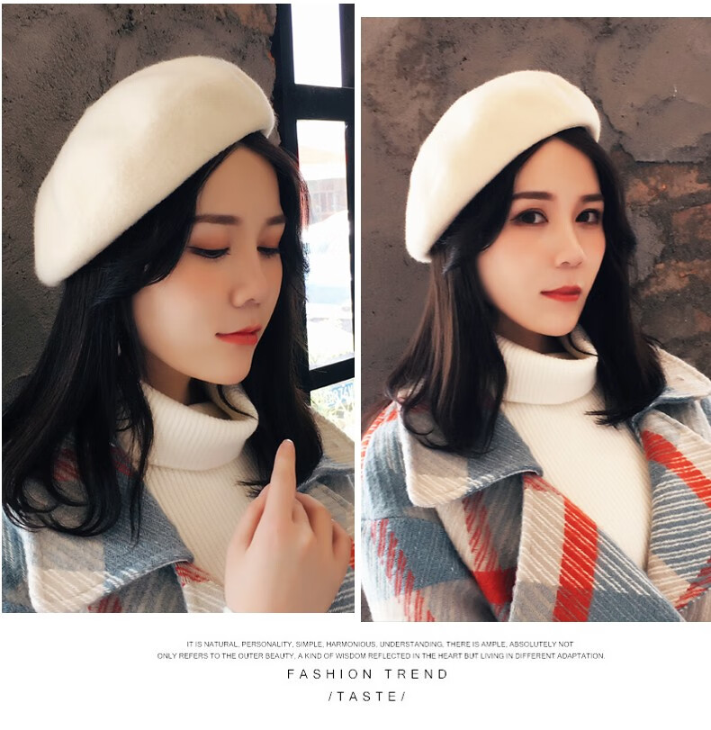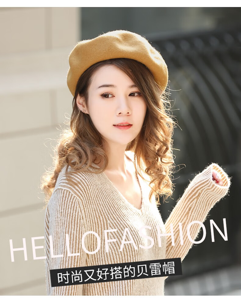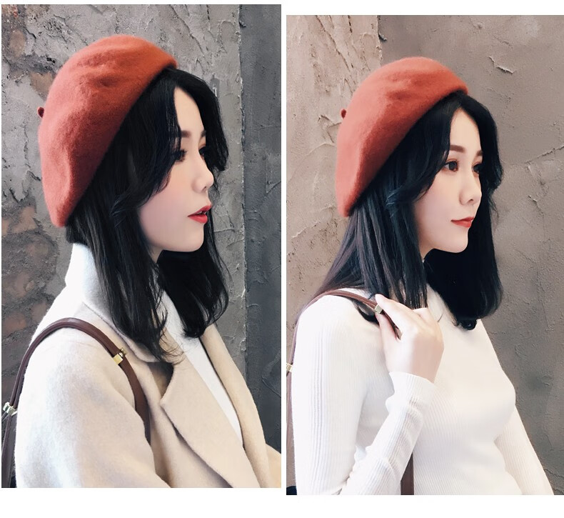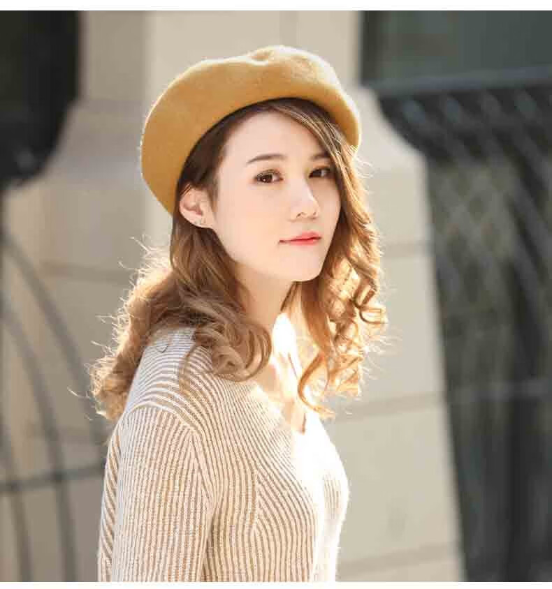 Charming Smile Wool Beret Hat Women Spring Autumn Winter Korean Style Japanese Retro Versatile Painter Hat Fashionable Bere Hat Warm Hat Caramel Color One Size (56-58cm)