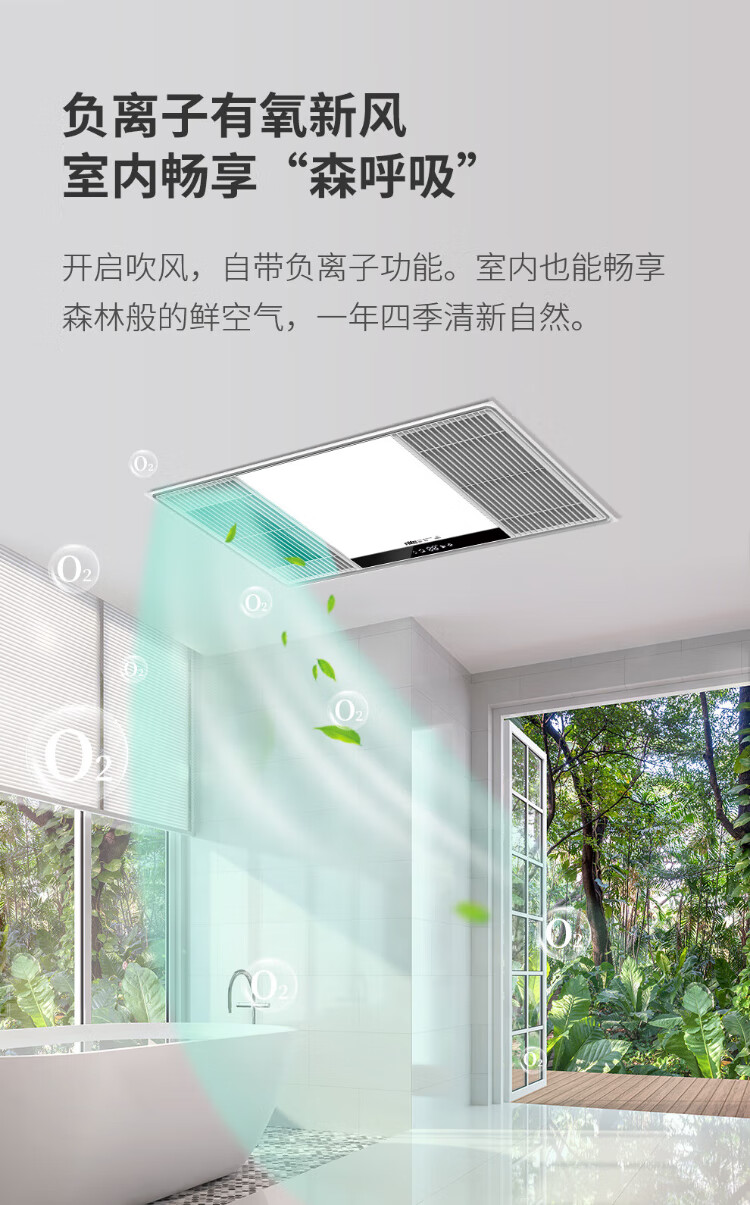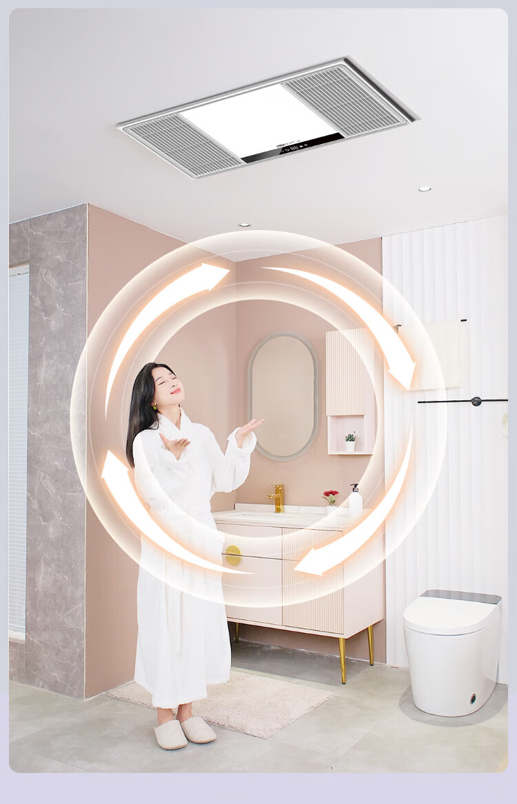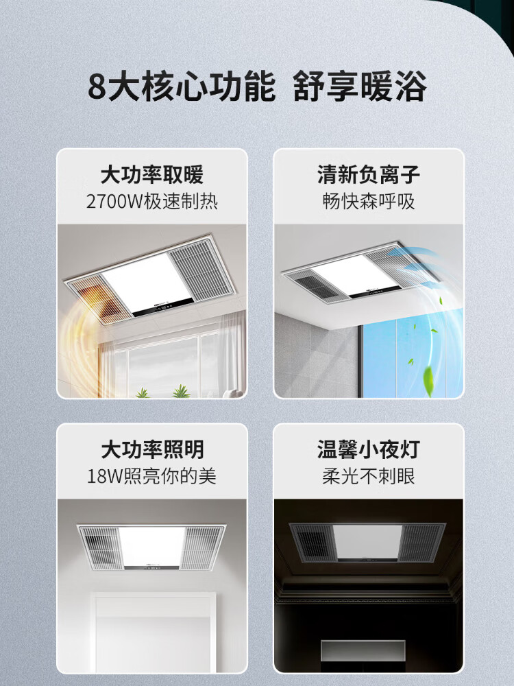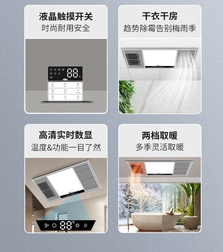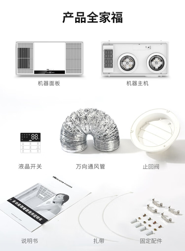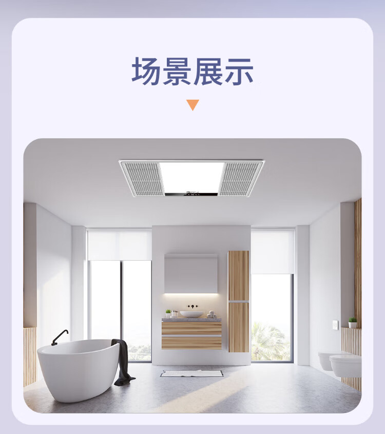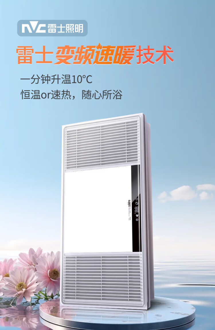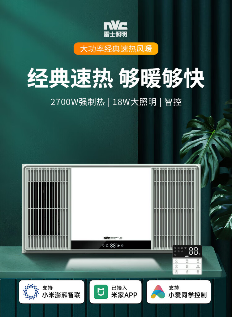 NVC Free Warm Bath Heater, Warm Air, Lighting and Exhaust Integrated Bathroom Ventilation Air Heating Quick Heating Air Heating Bath Heater Y344 2700W Ultra-Thin 6cm | Variable Frequency Constant Temperature