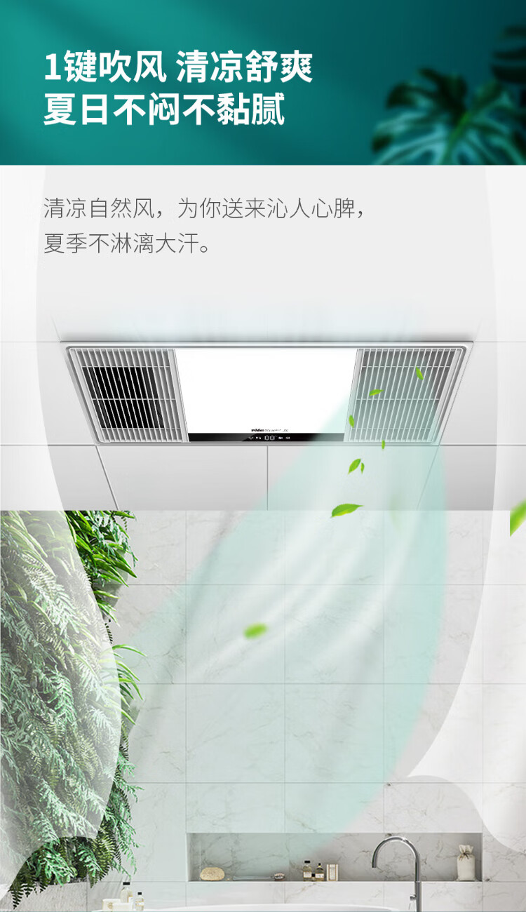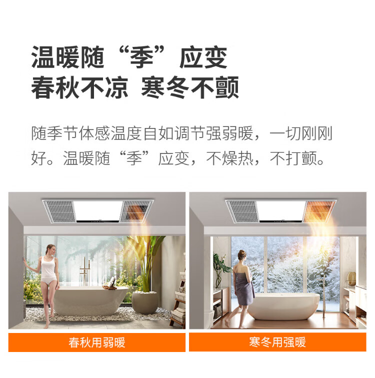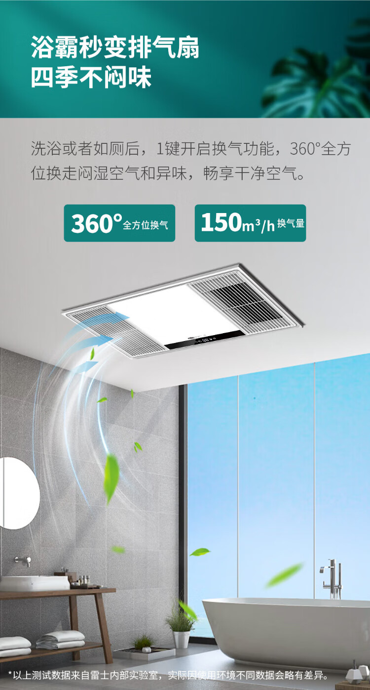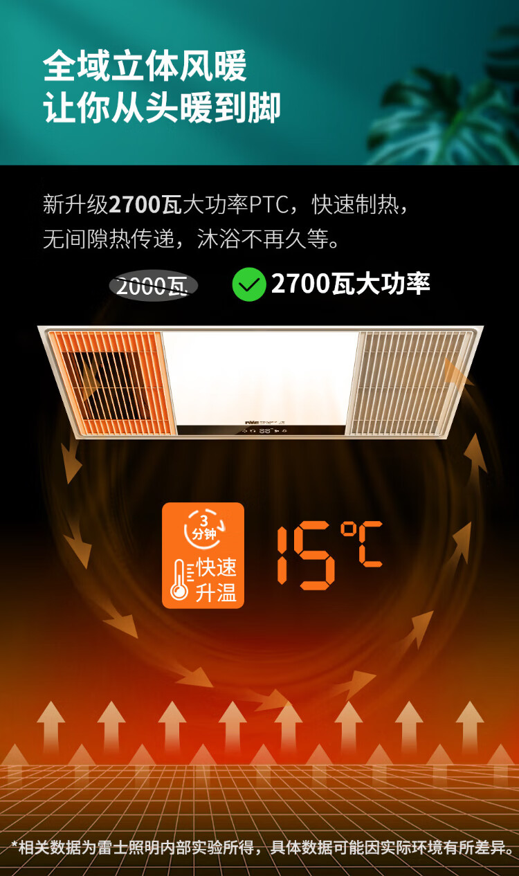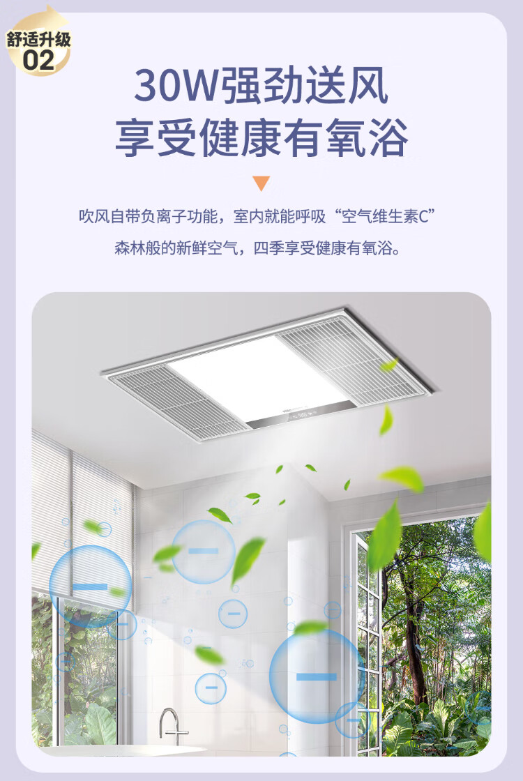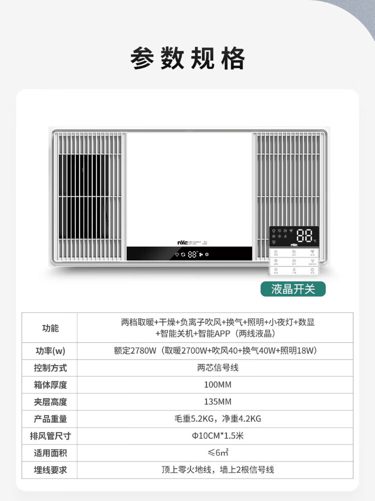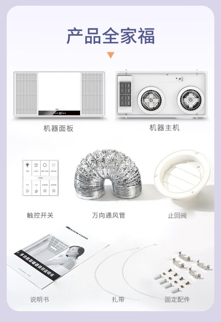 NVC Free Warm Bath Heater, Warm Air, Lighting and Exhaust Integrated Bathroom Ventilation Air Heating Quick Heating Air Heating Bath Heater Y344 2700W Ultra-Thin 6cm | Variable Frequency Constant Temperature