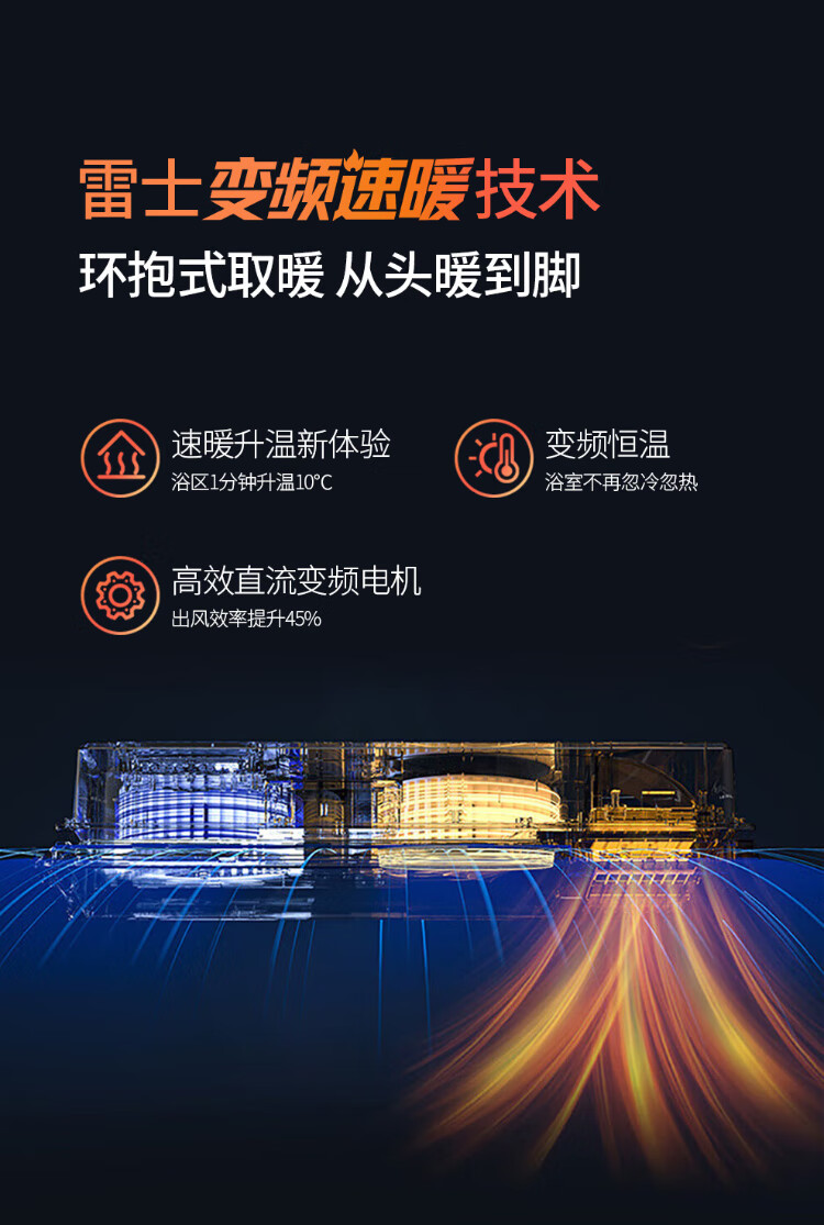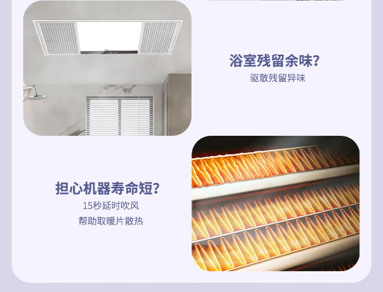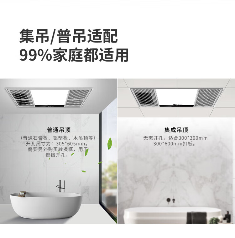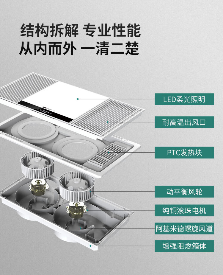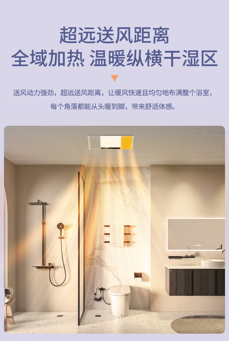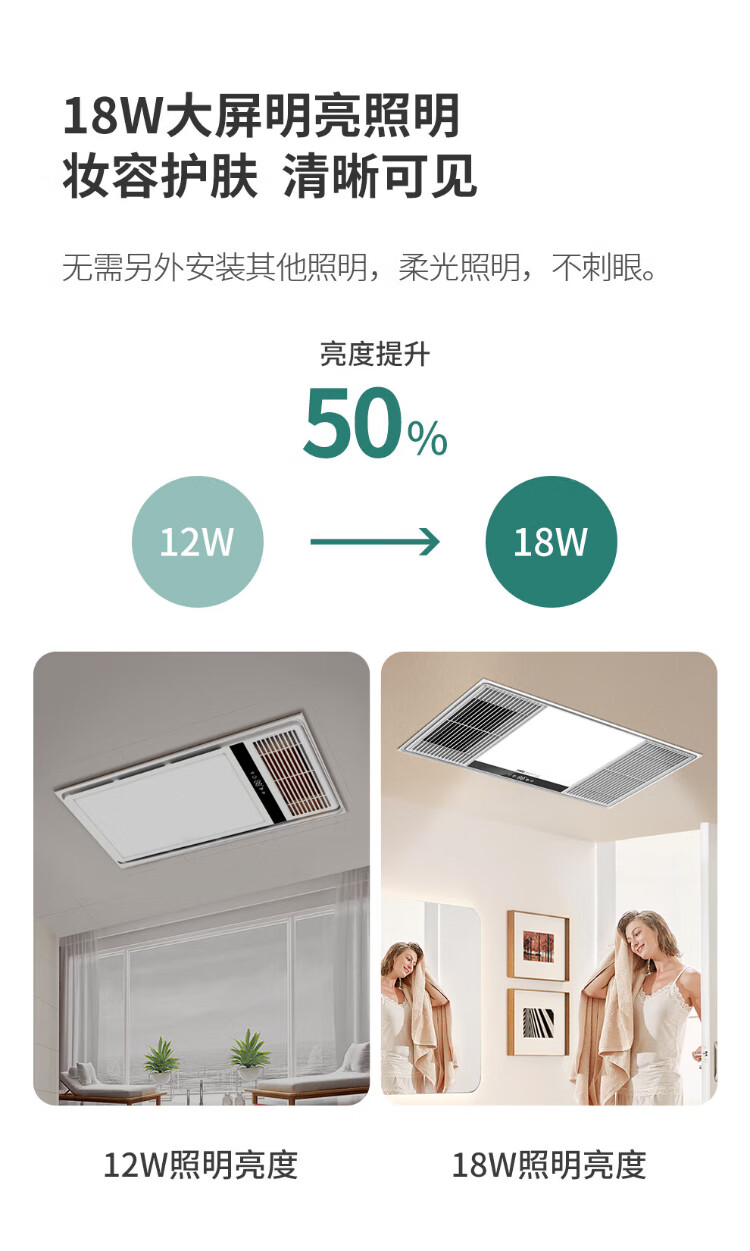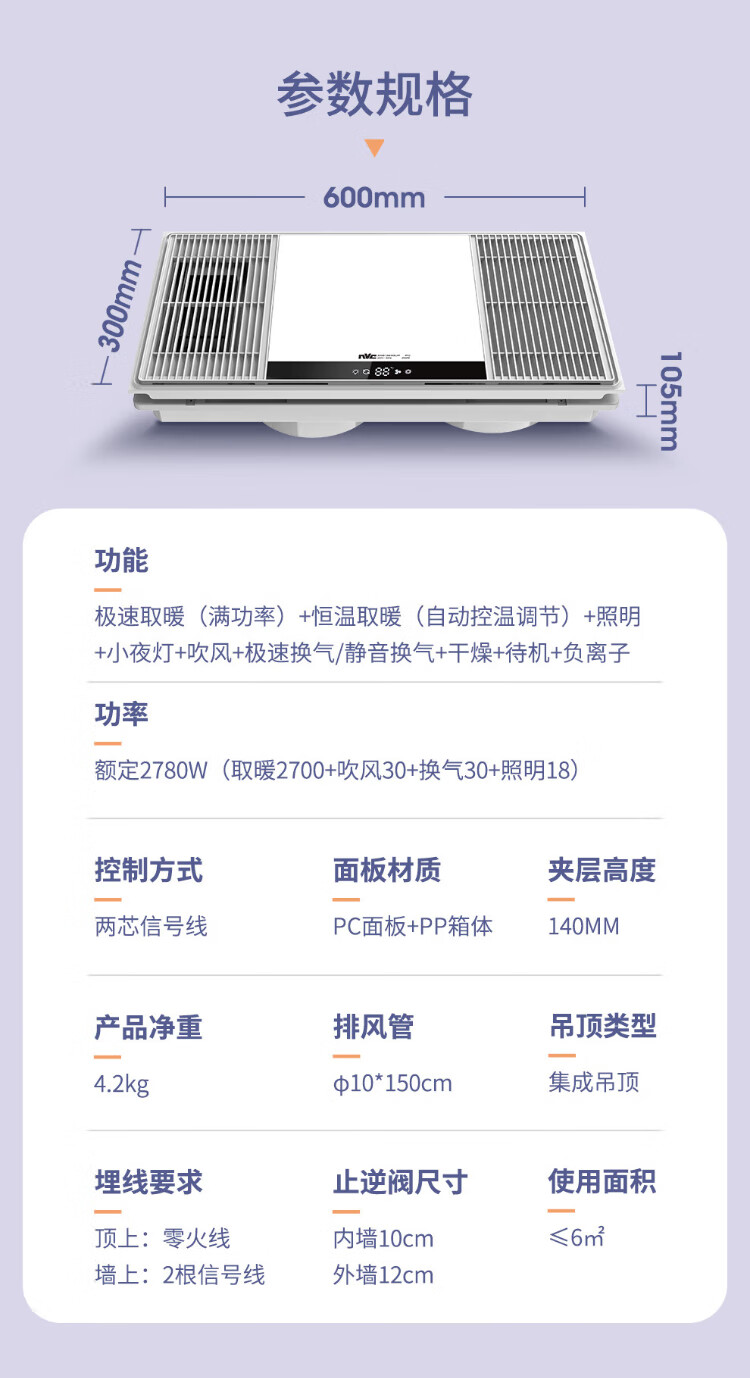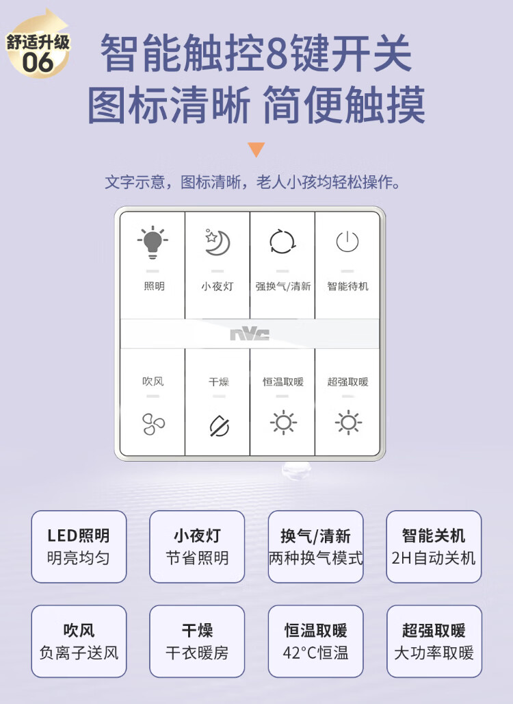 NVC Free Warm Bath Heater, Warm Air, Lighting and Exhaust Integrated Bathroom Ventilation Air Heating Quick Heating Air Heating Bath Heater Y344 2700W Ultra-Thin 6cm | Variable Frequency Constant Temperature