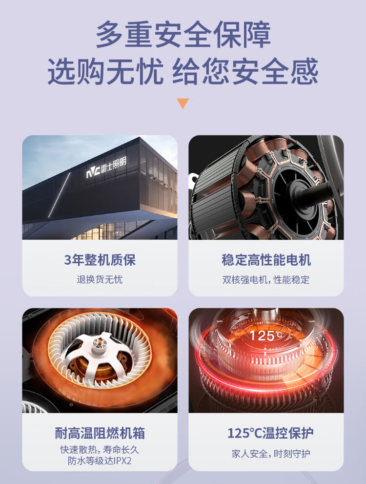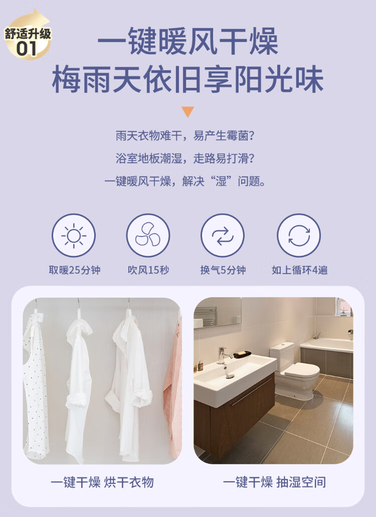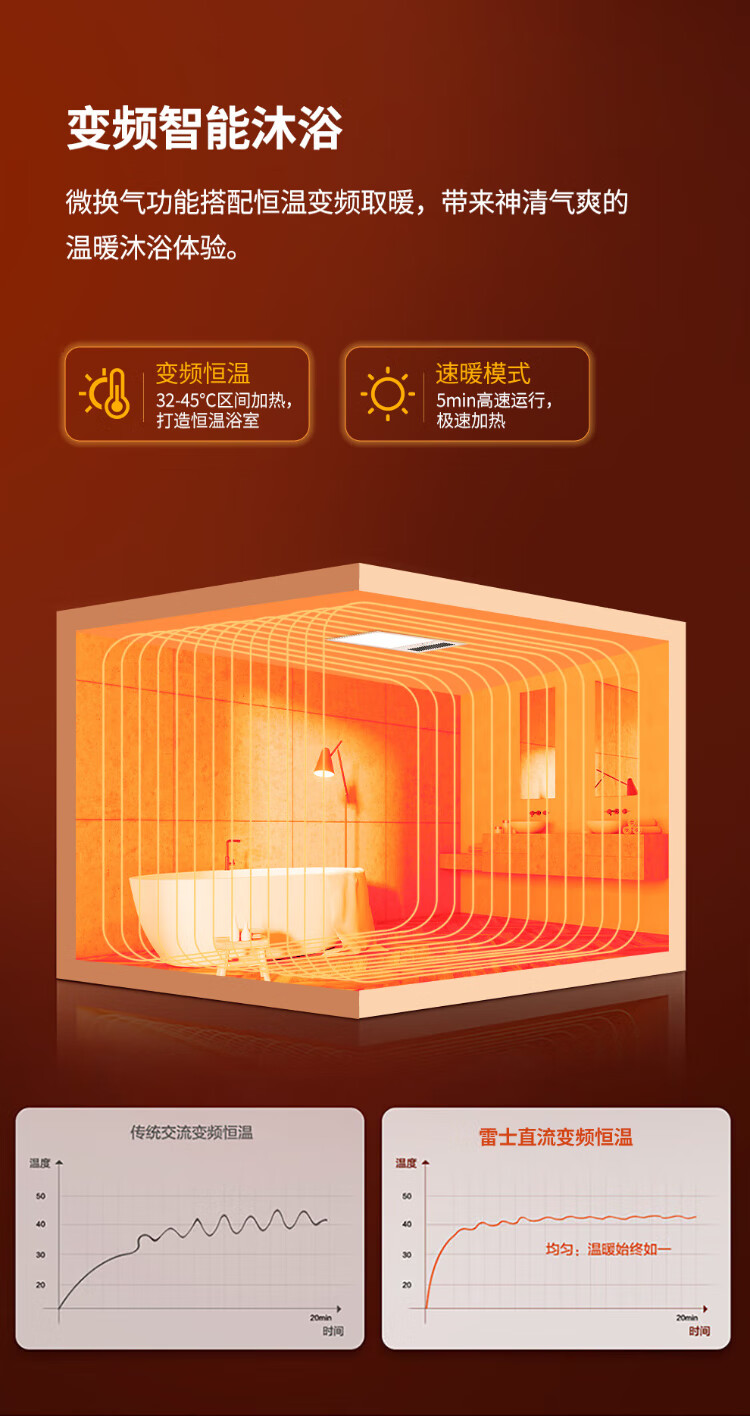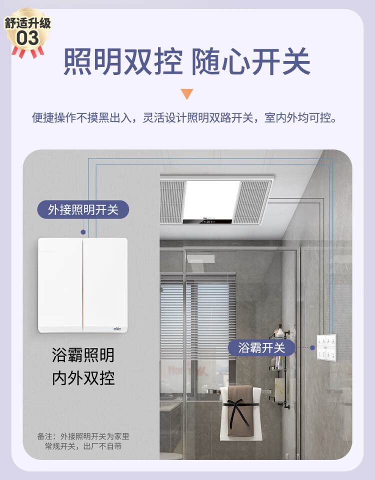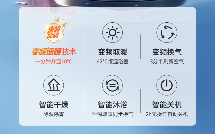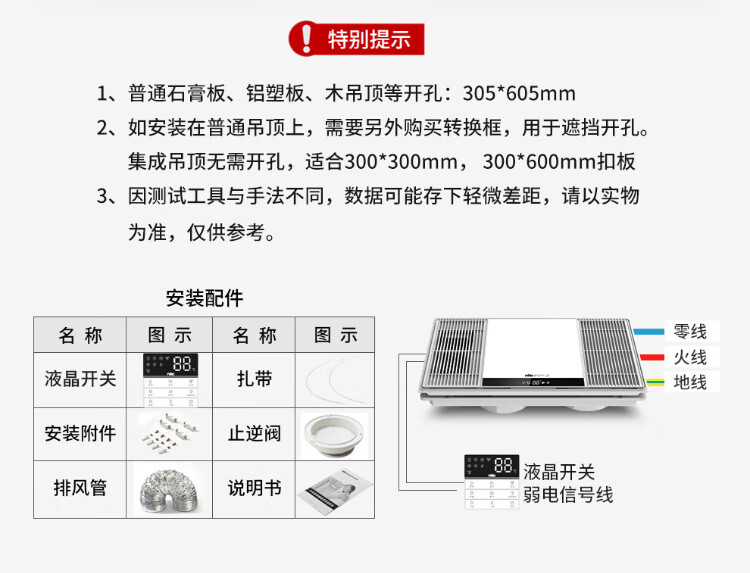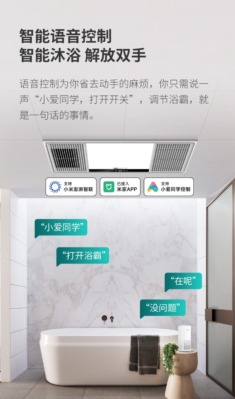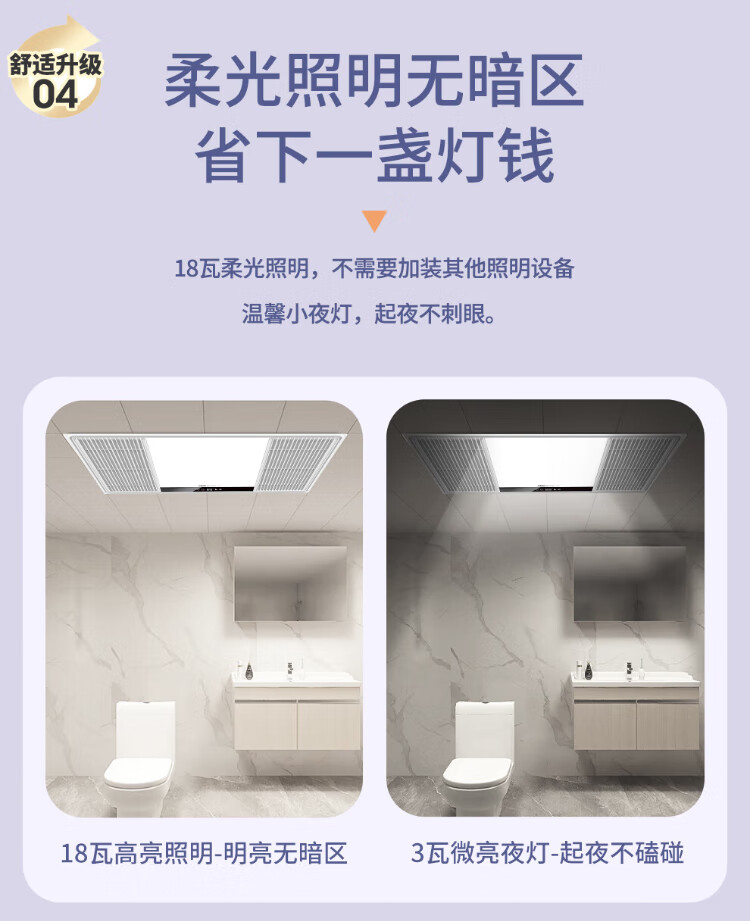 NVC Free Warm Bath Heater, Warm Air, Lighting and Exhaust Integrated Bathroom Ventilation Air Heating Quick Heating Air Heating Bath Heater Y344 2700W Ultra-Thin 6cm | Variable Frequency Constant Temperature