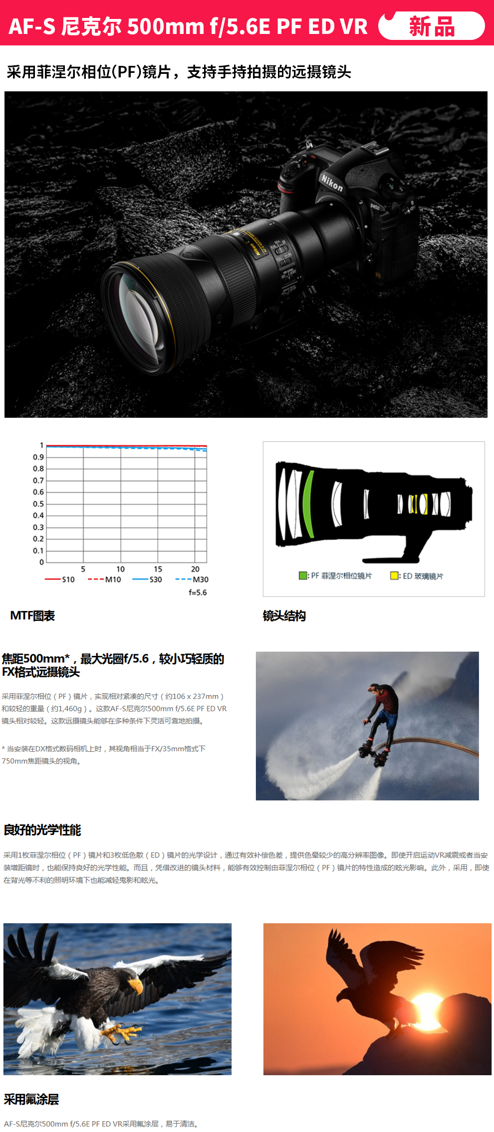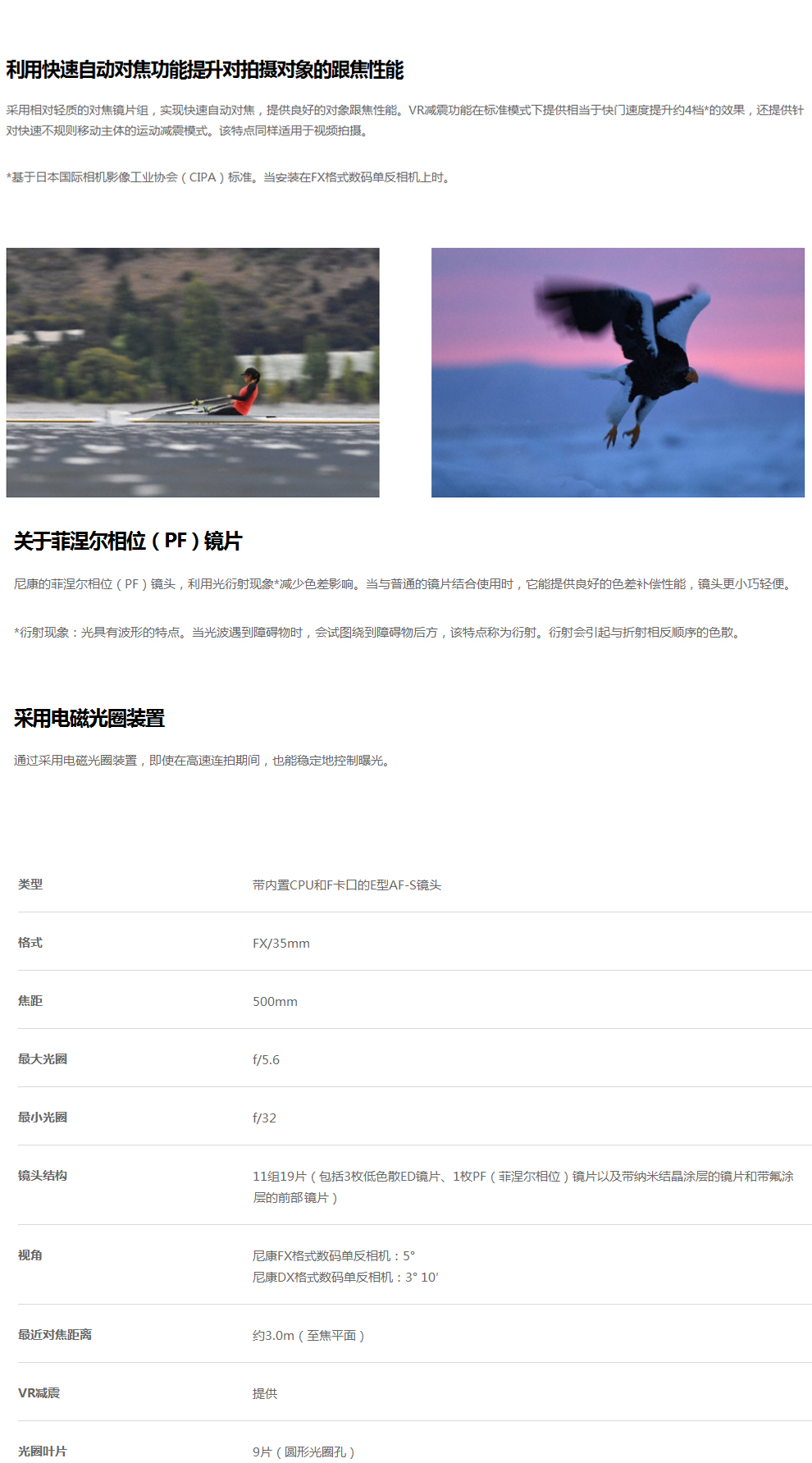 Nikon AF-S NIKKOR 500mm f/5.6E PF ED VR telephoto fixed focus lens black