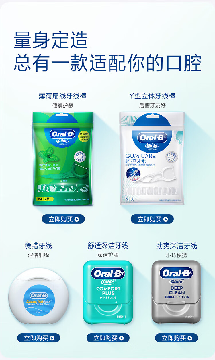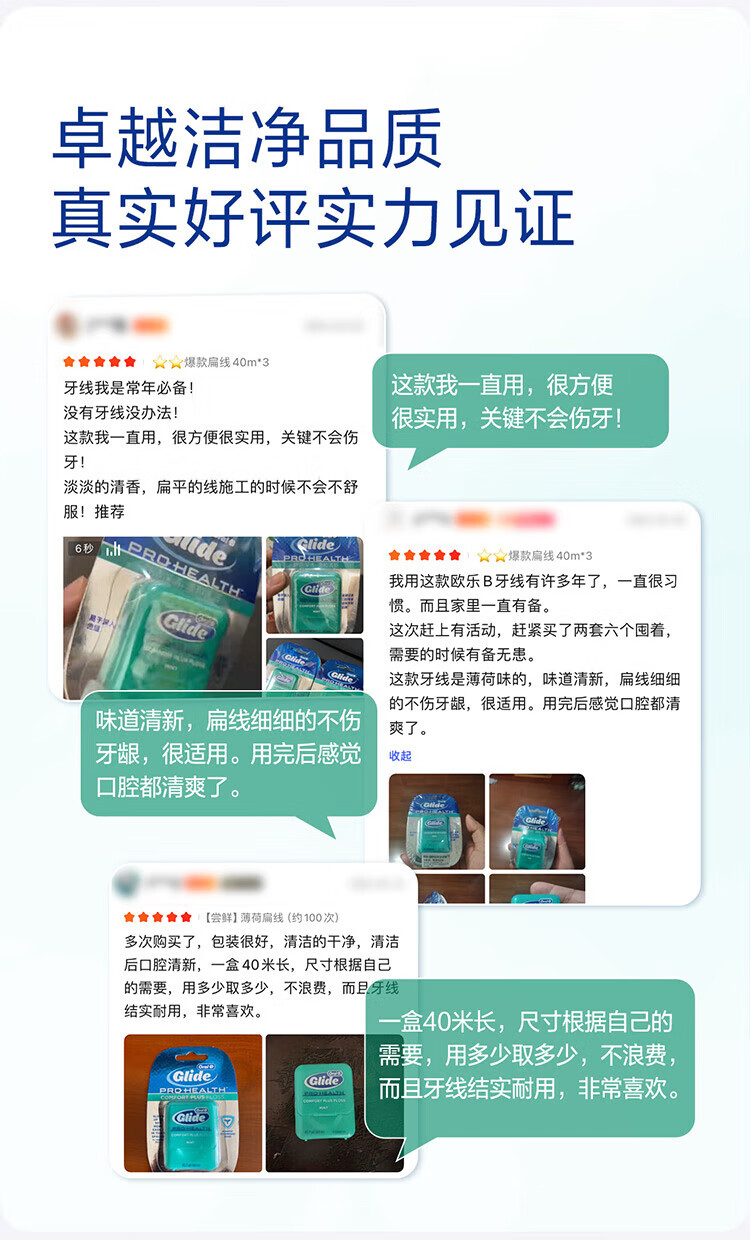 Oral-B Dental Floss Roll Portable Gum Protection Thin Smooth Flat Floss Mint 40m*3 Box About 300 Times Toothpicks New and Old Mixed