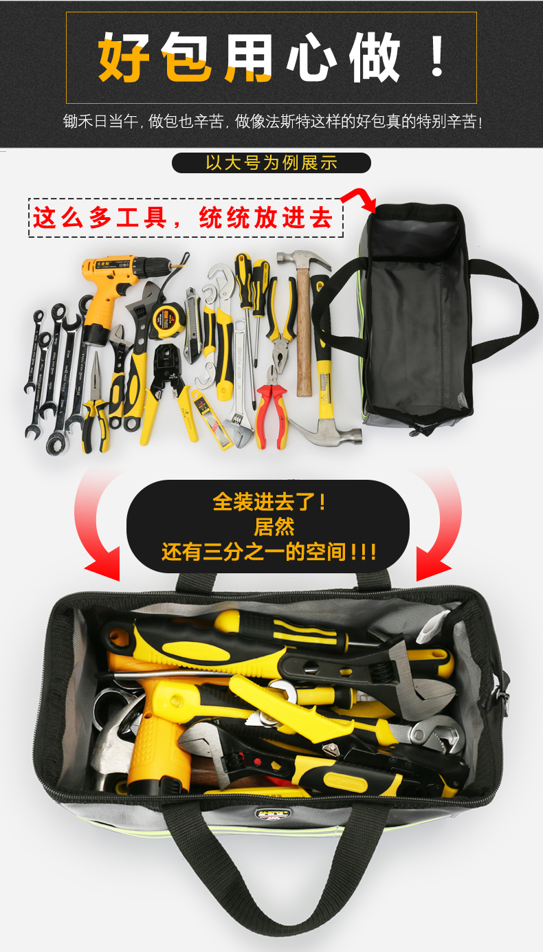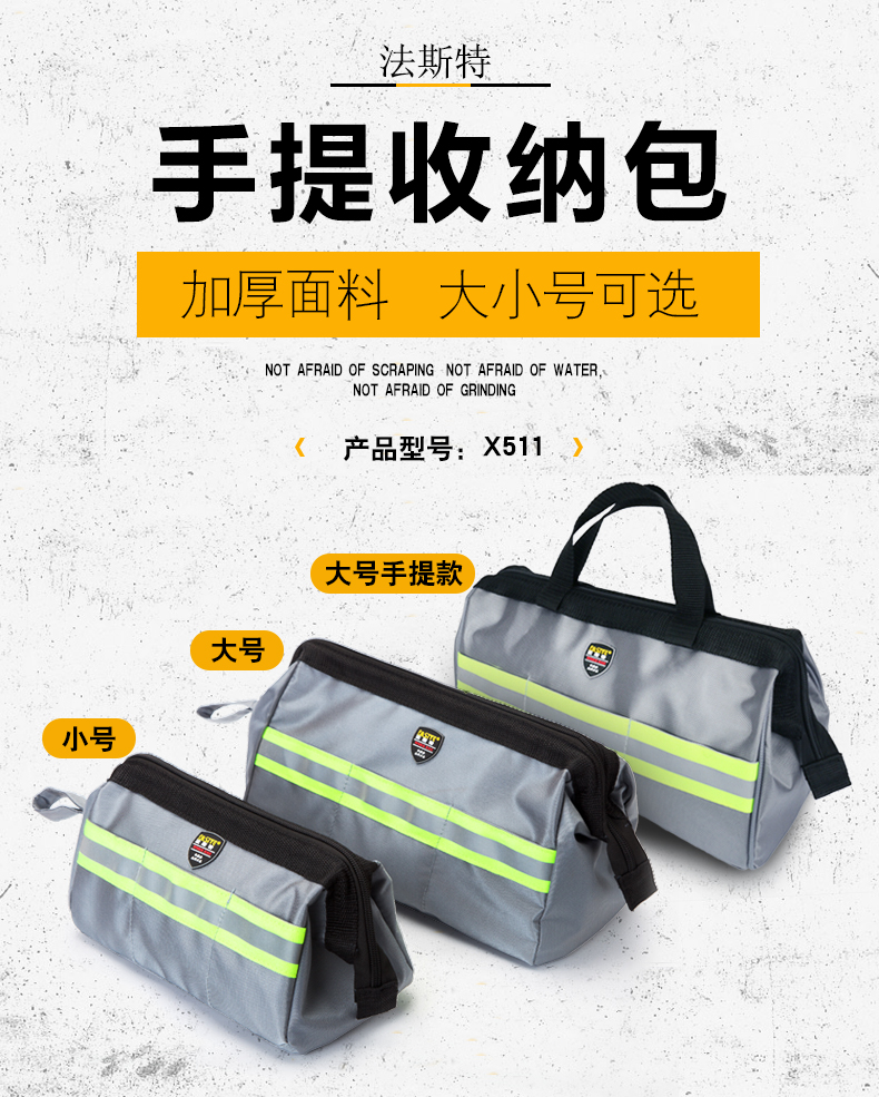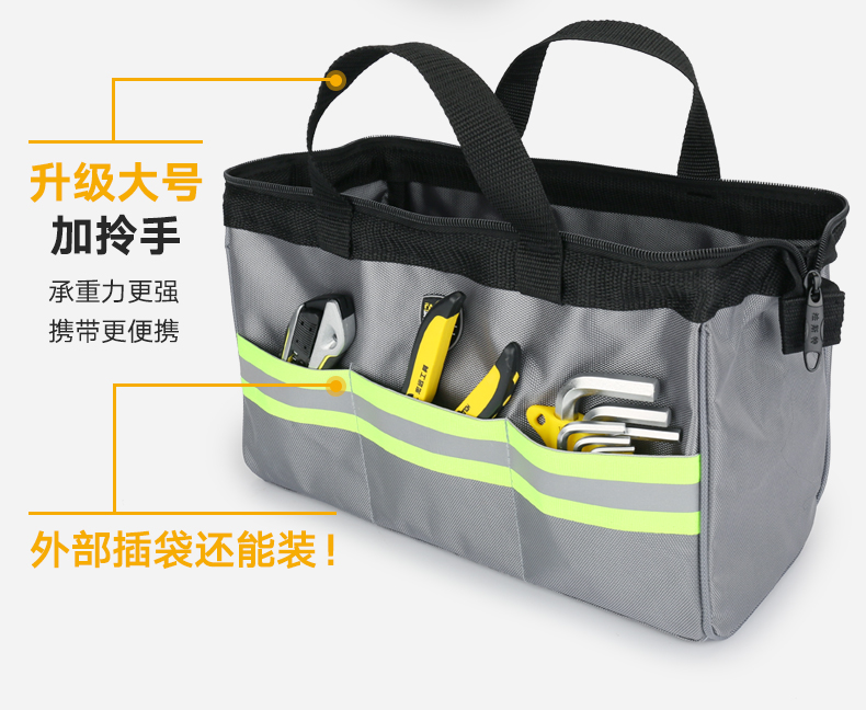 FASITE tool bag small storage bag small portable portable double-layer thickened hardware parts stationery wash bag tool bag Oxford cloth electrician bag portable silver small 9 inch 24*13*16.5 cm