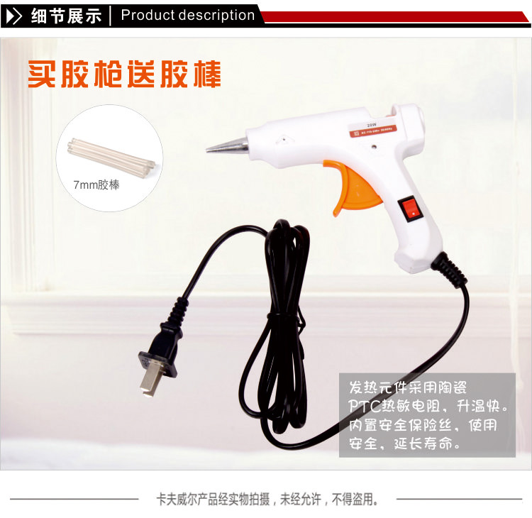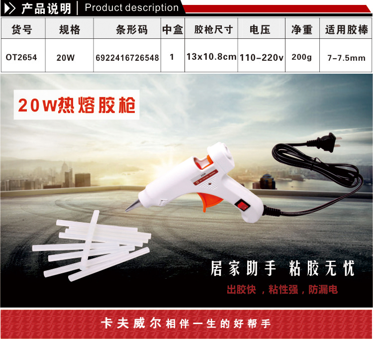 Kraftwell OT2654 20W industrial grade hot glue gun set/hot melt glue gun requires a 7MM diameter glue stick