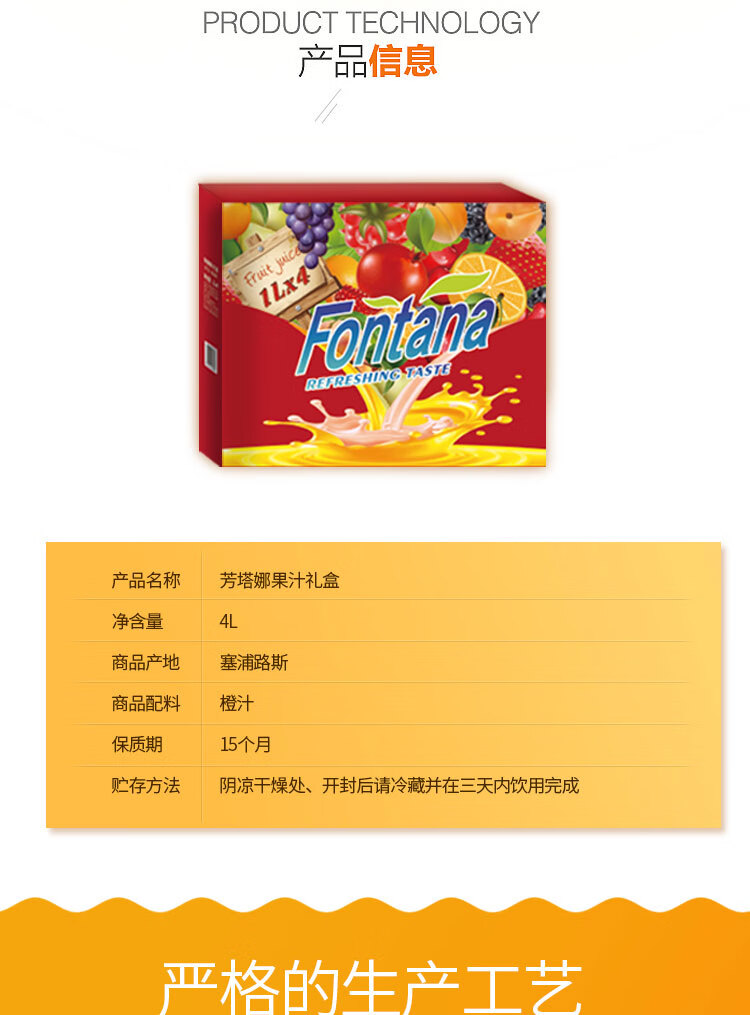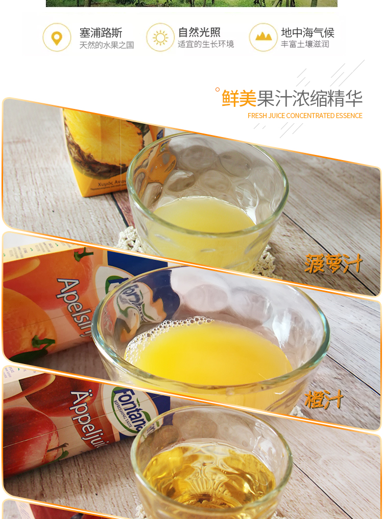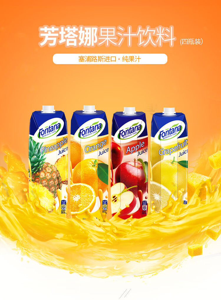Imported from Mediterranean Cyprus Fontana (Fontana) orange juice 100% pure juice 1L*4 bottles juice drink full box gift box