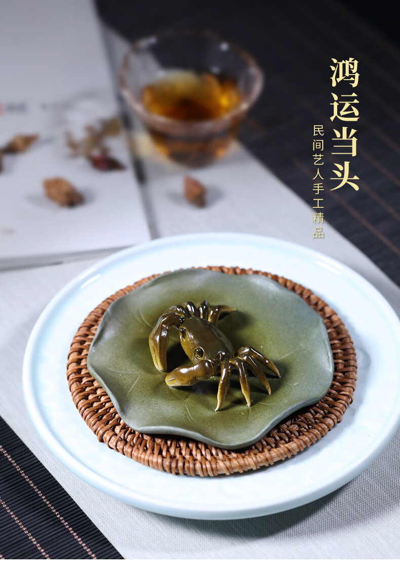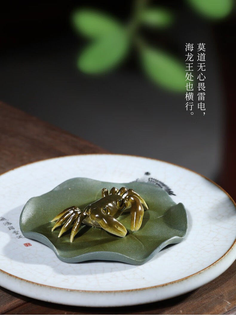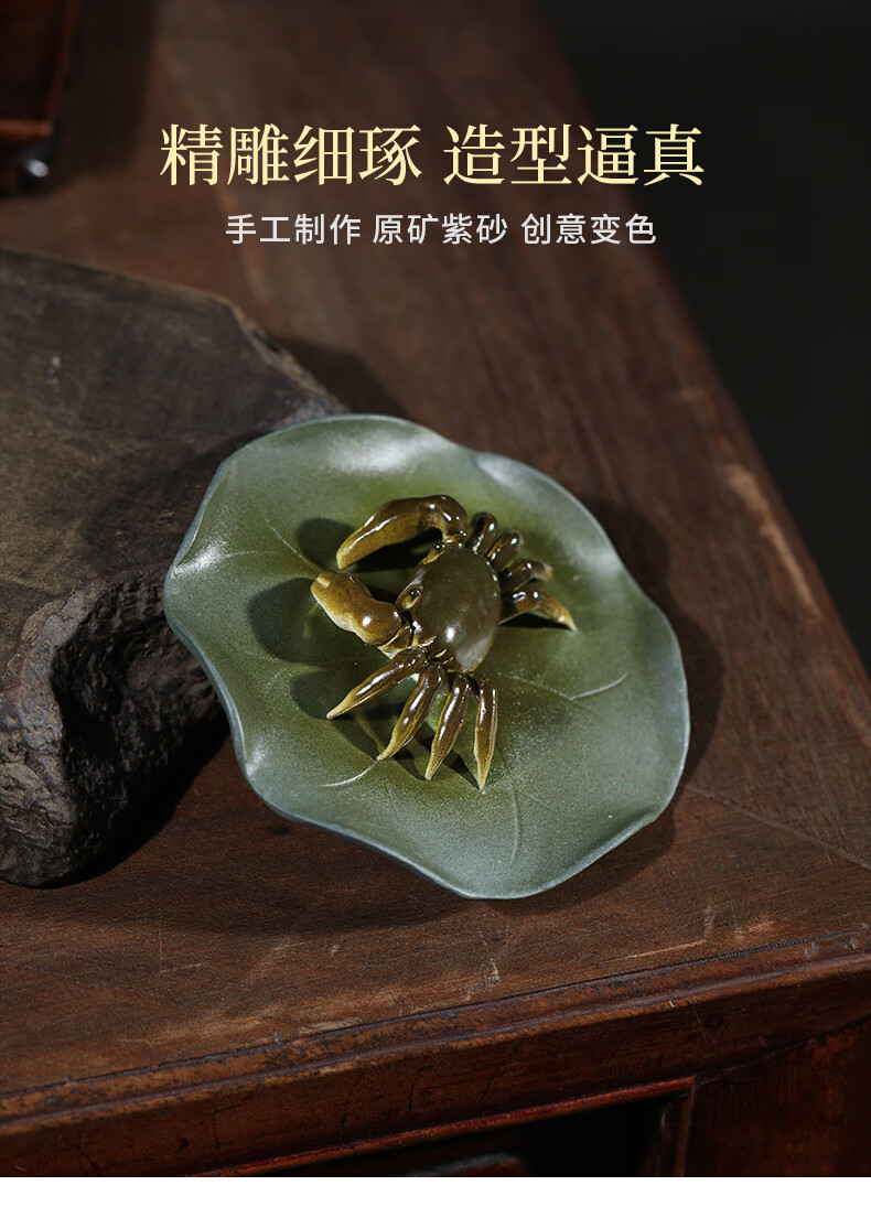 Hidden Pot Tianxia Yixing Purple Clay Color Changing Crab Tea Pet Purely Handmade Boutique Original Mineral Lotus Leaf Tea Playable Cultivated Tea Tray Ornament Good Luck