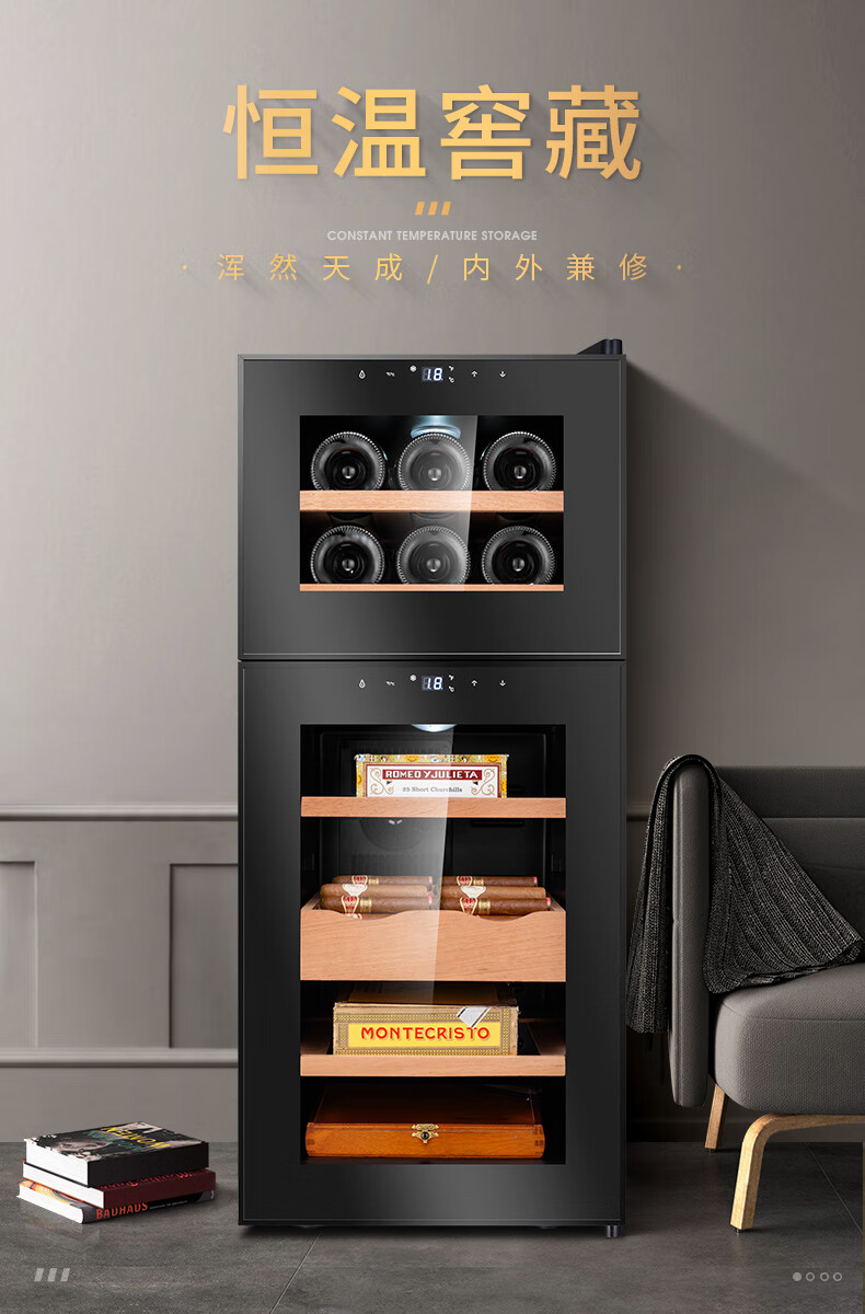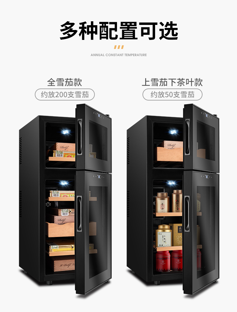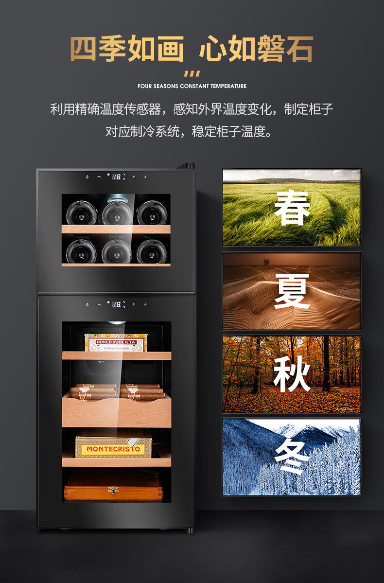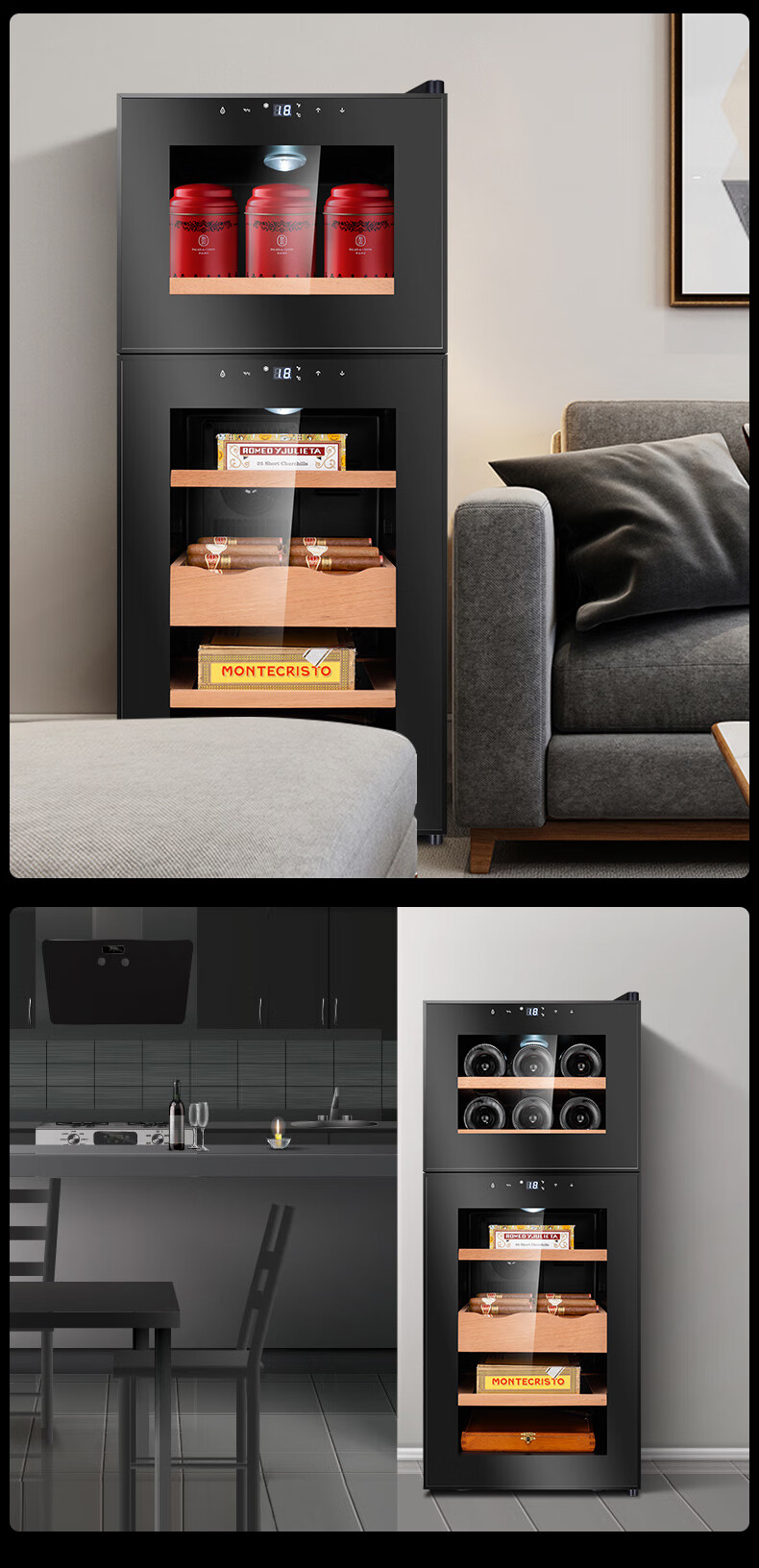 CIGARLOONG 18C cigar cabinet temperature controlled and moisturizing electronic cigar cabinet cigar box double door double temperature double control energy saving silent cigar red wine dual-use cabinet upper cigar and lower red wine dual temperature zone + cedar wood shelf