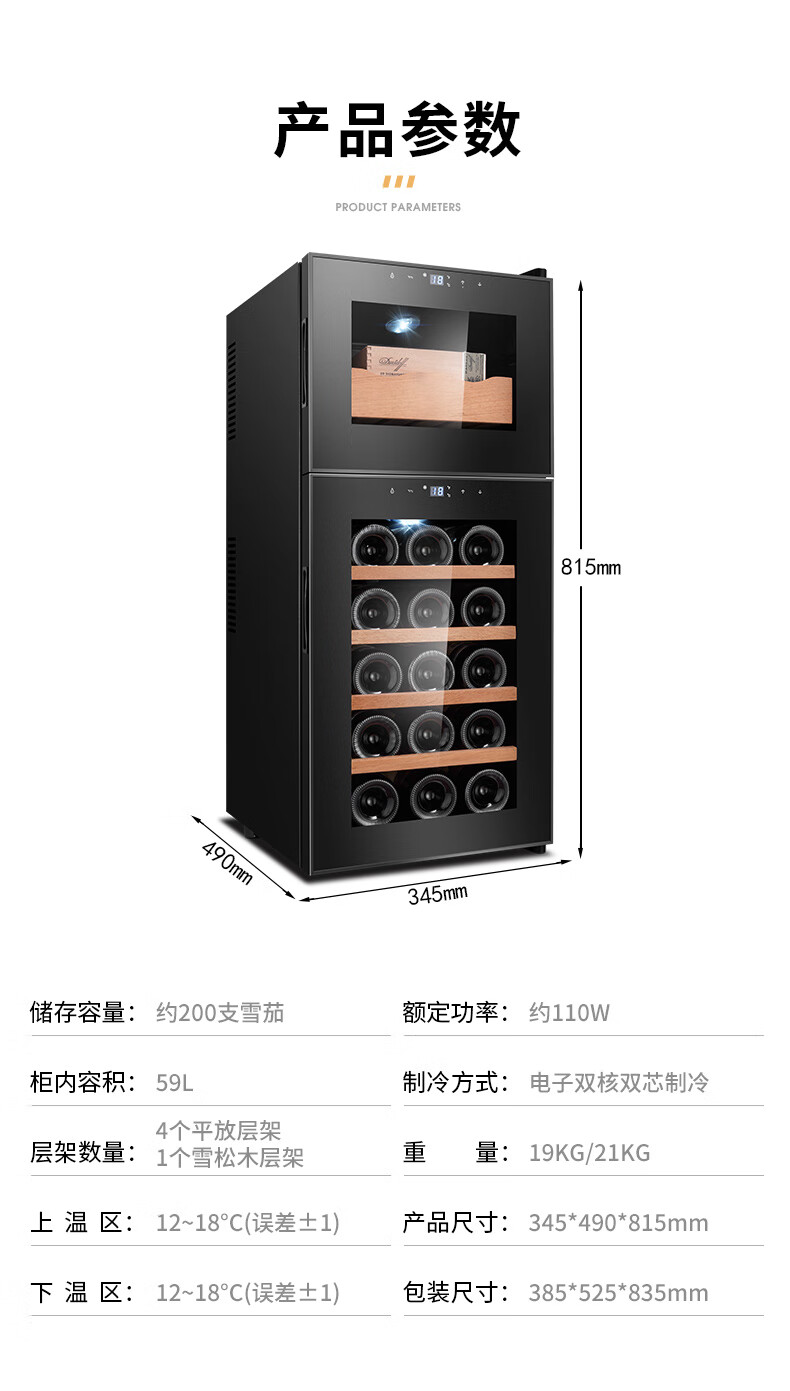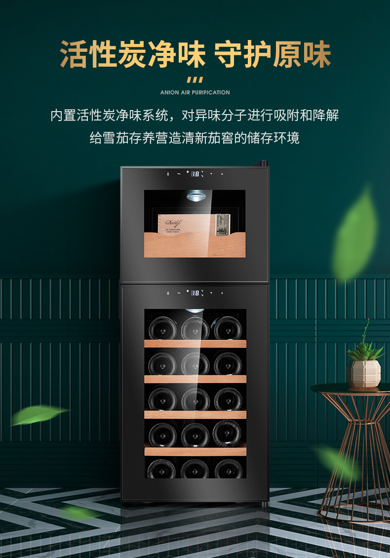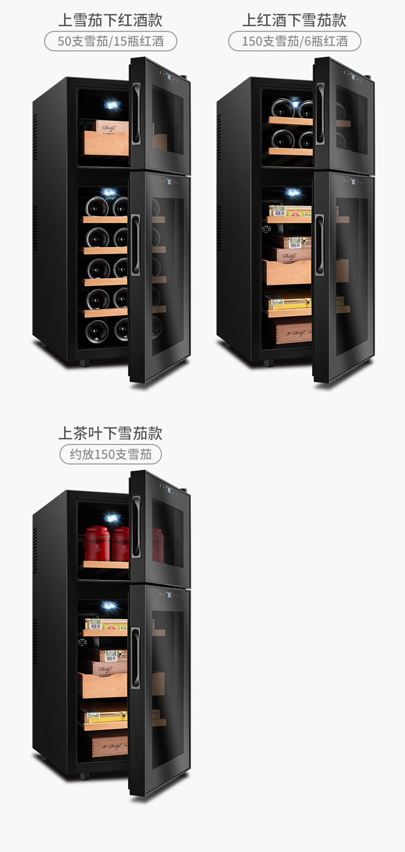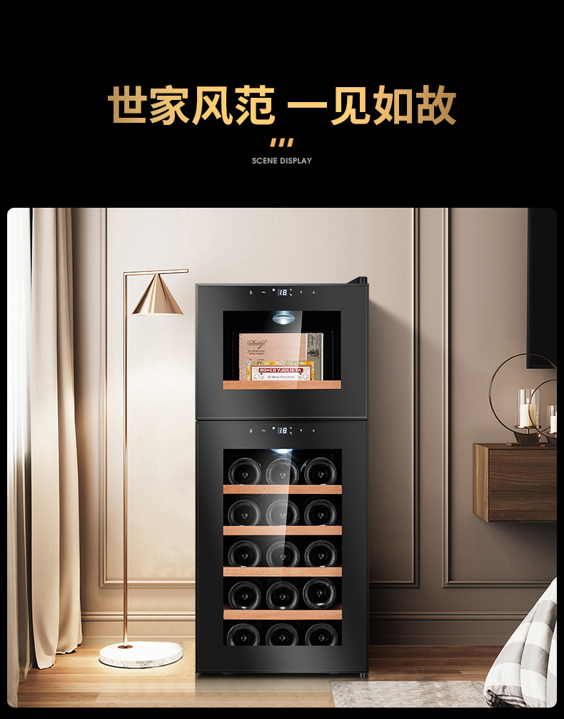 CIGARLOONG 18C cigar cabinet temperature controlled and moisturizing electronic cigar cabinet cigar box double door double temperature double control energy saving silent cigar red wine dual-use cabinet upper cigar and lower red wine dual temperature zone + cedar wood shelf