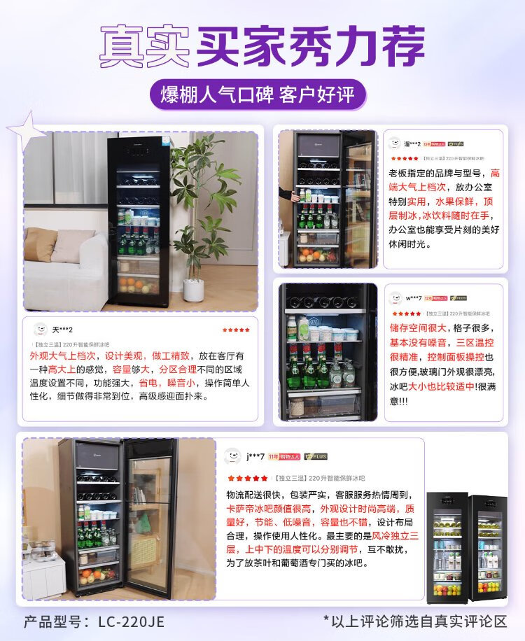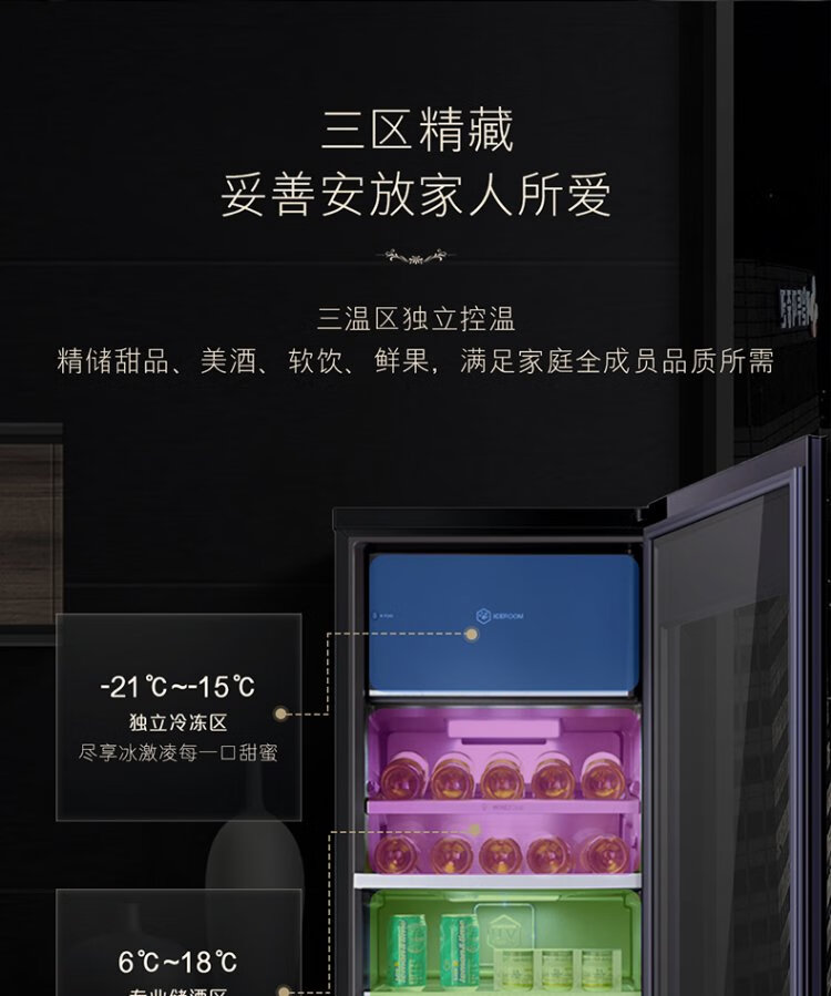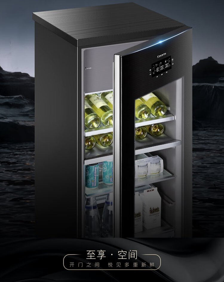 Casarte Independent Ice Making Home Office Refrigerator Warm Ice Bar Tea Beverage Fruit Fresh Cabinet Small Freezer Refrigerator Freezer 200JE-Three Temperature Zones Independent Ice Making