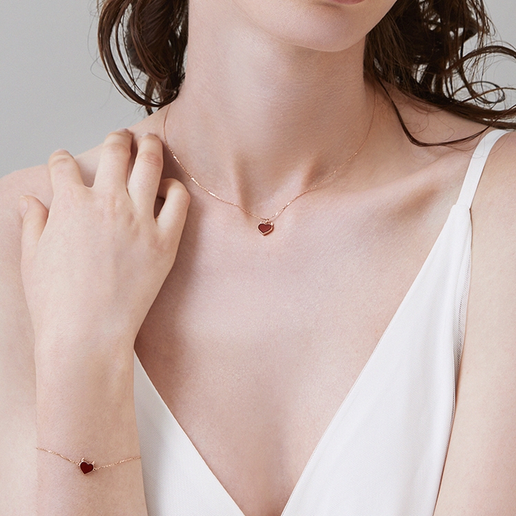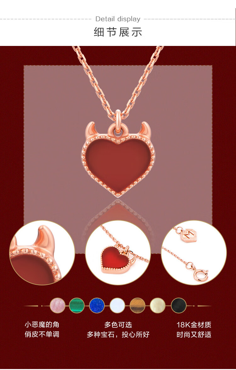 Chow Tai Fook MONOLOGUE Monologue MIX Devil's Heart 18K Gold Gemstone Necklace MV41 Birthday Gift Chalcedony 40cm