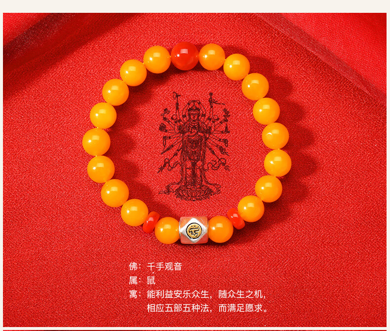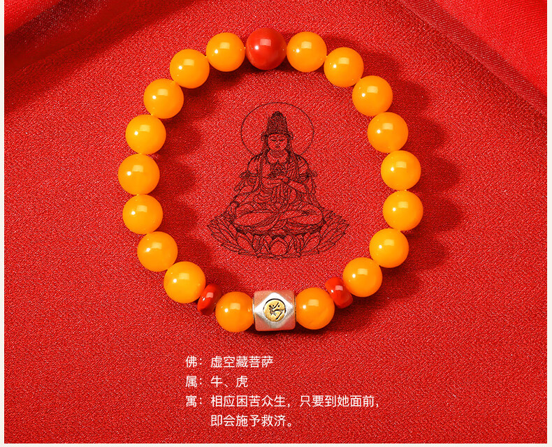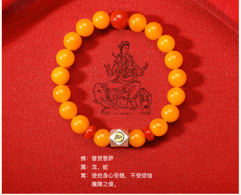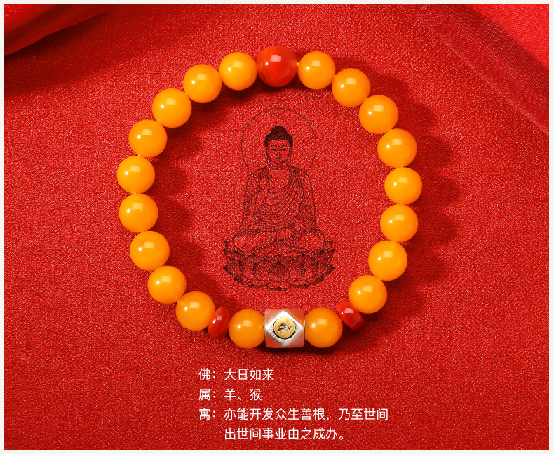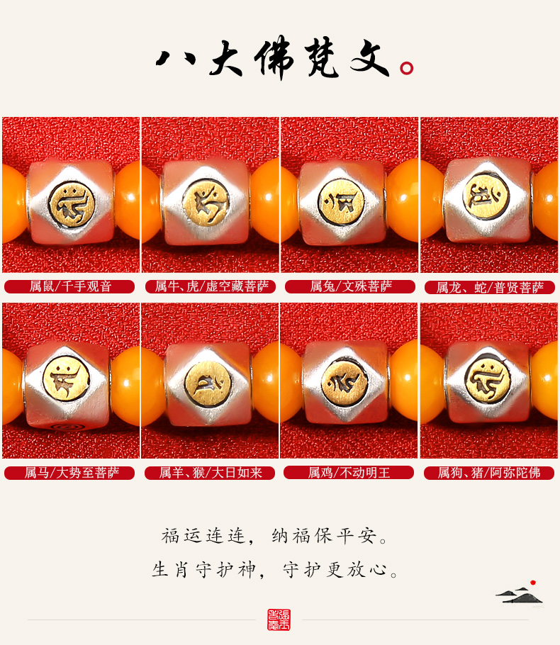 Mujue (MUJUE) Lucky Encounter Beeswax Bracelet Eight Buddha Sanskrit Twelve Zodiac Patron Saint Bracelet 8mm Dog, Pig/Amitabha