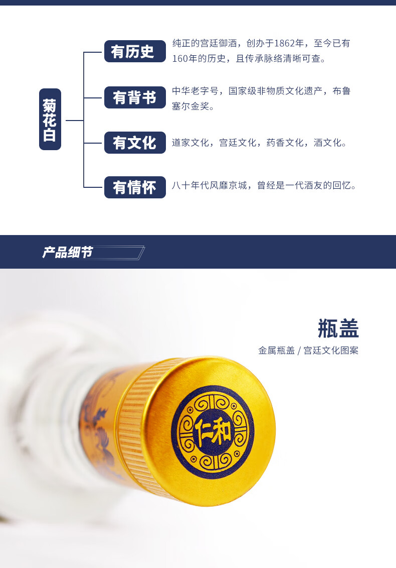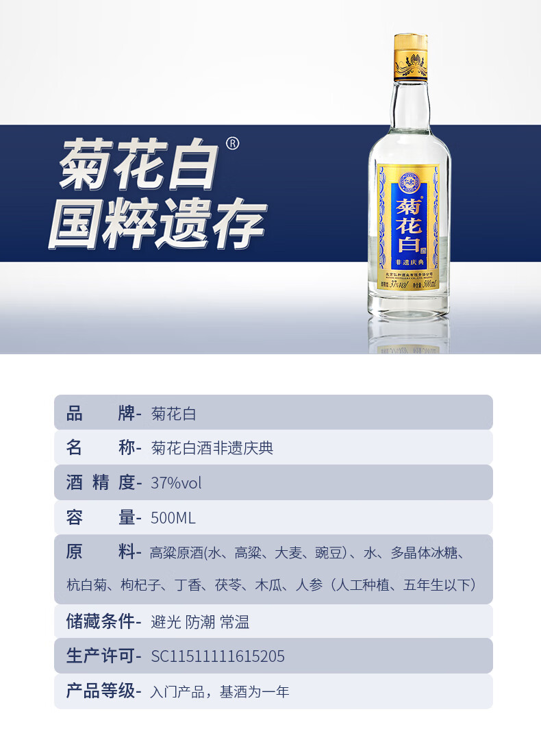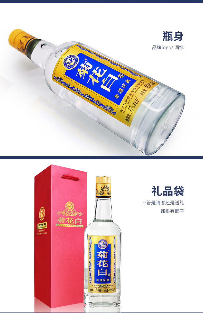 Chrysanthemum liquor intangible cultural heritage celebration 37 degrees 500ml light bottle liquor old Beijing specialty wine Double Ninth Festival gift ginseng chrysanthemum wine 37 degrees 500ml 1 bottle