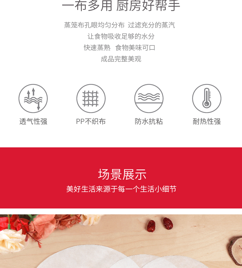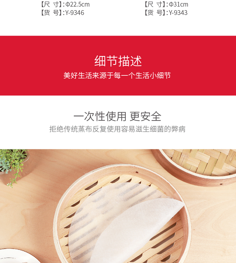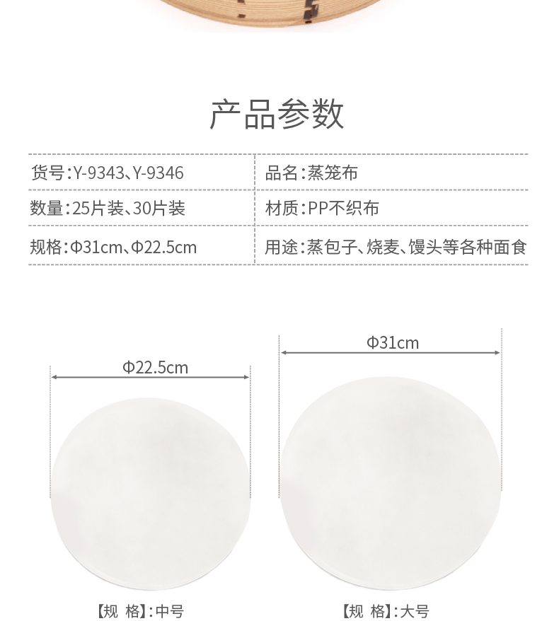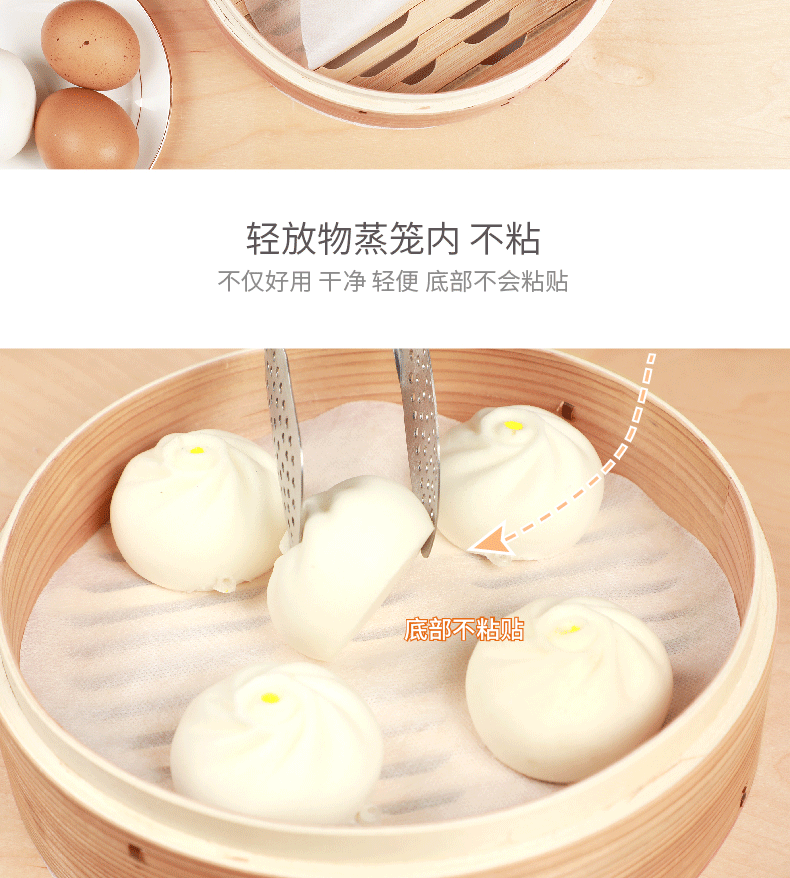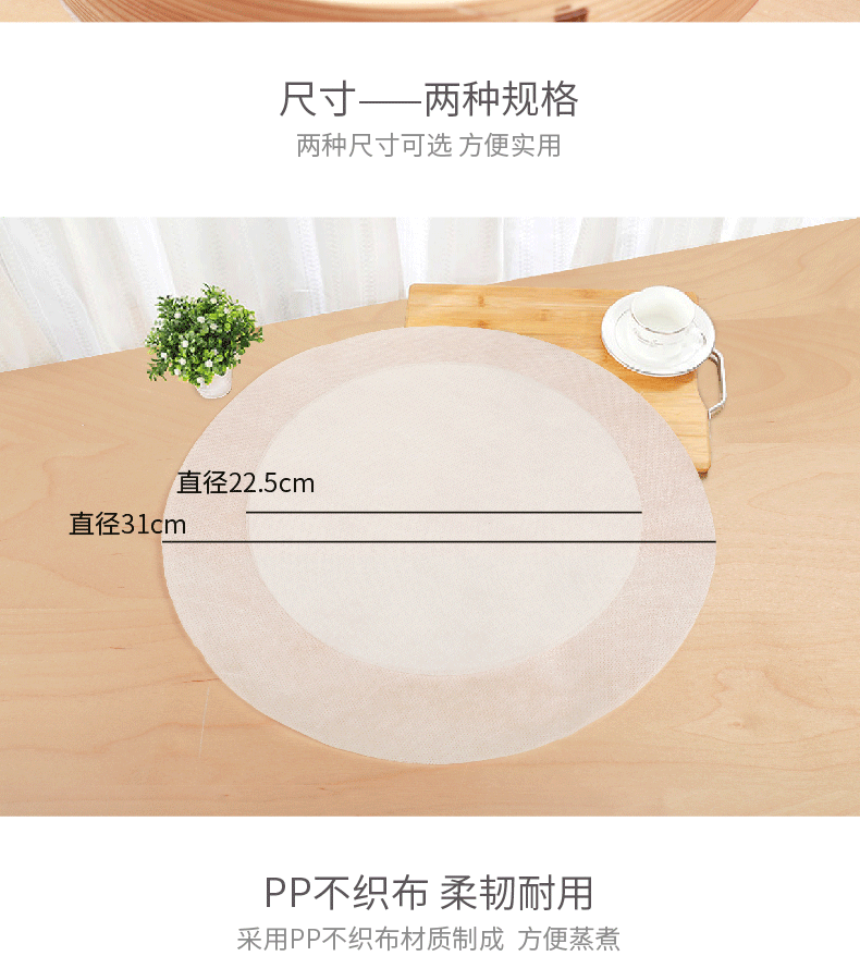 Yekee disposable steamer cloth, household round small steamer mat, steamed bun bread paper holder, not easy to stick to the steamer paper, diameter 22.5cm, 30 pieces