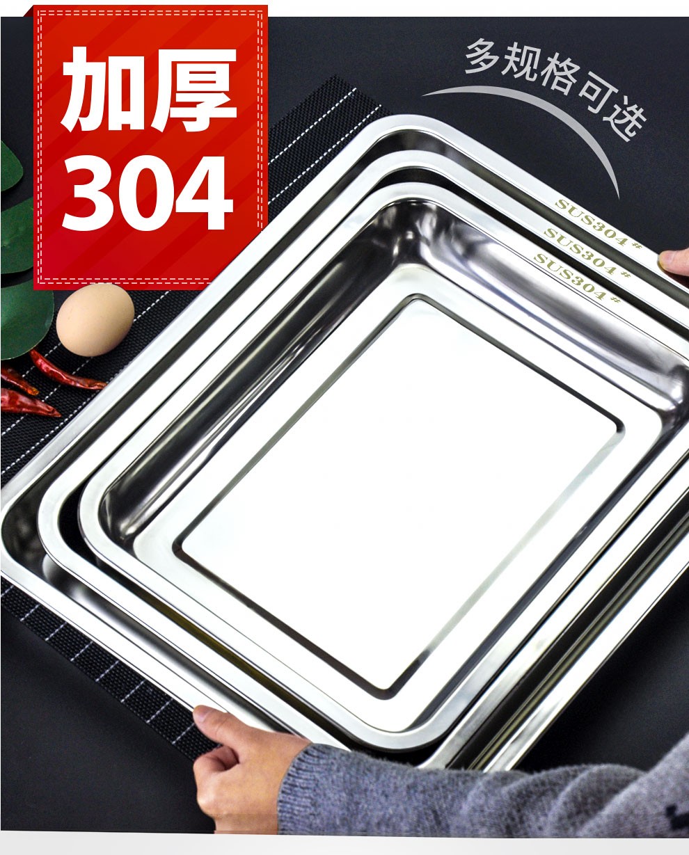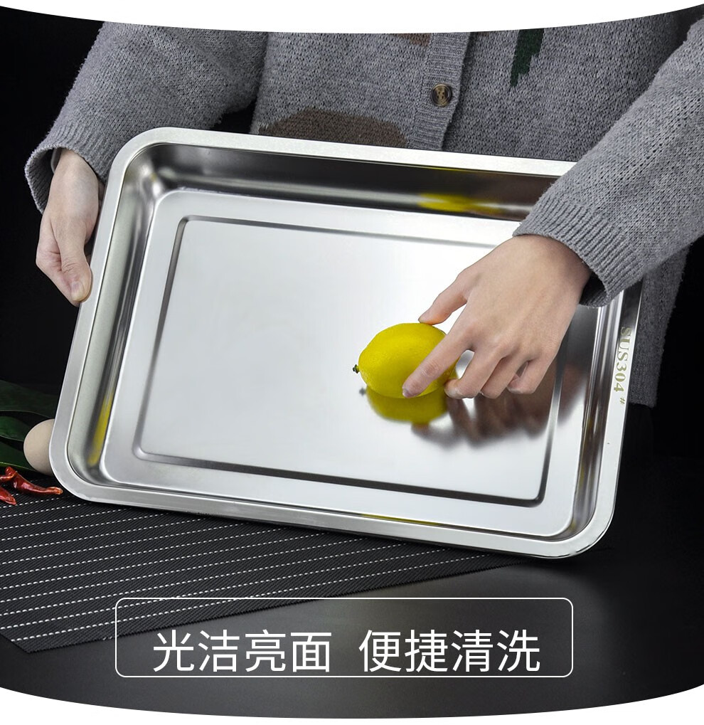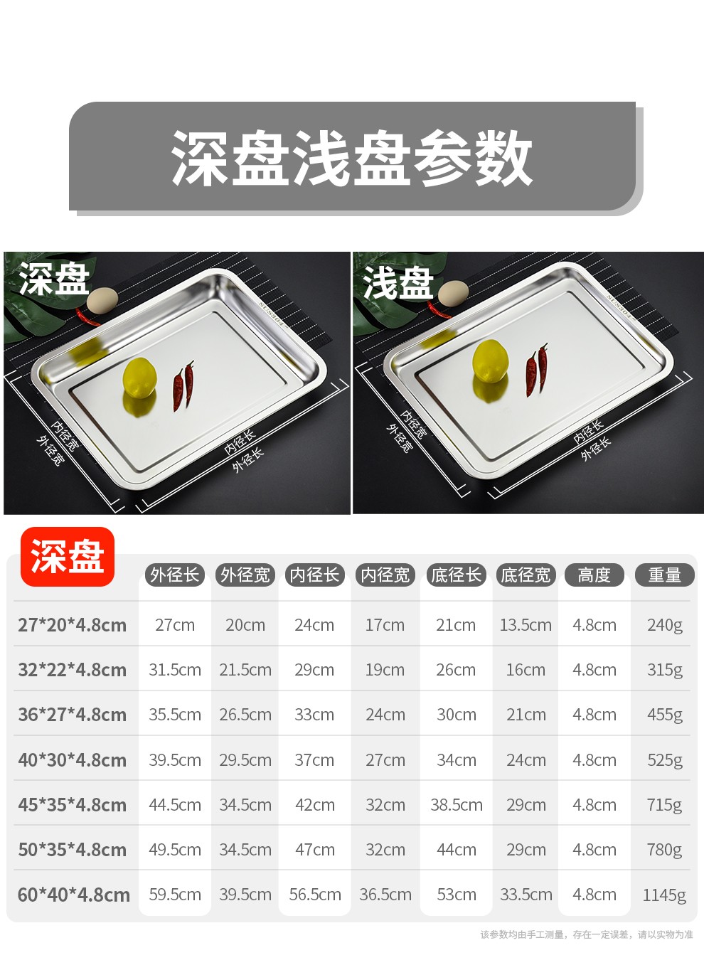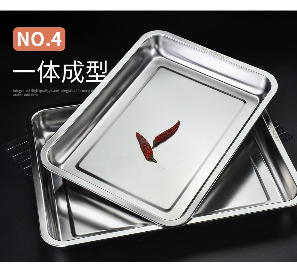 VIENDONA food grade 304 stainless steel tray rectangular plate household square plate dinner plate grilled fish iron plate steaming plate canteen 304 steel deep plate 60*40*4.8cm