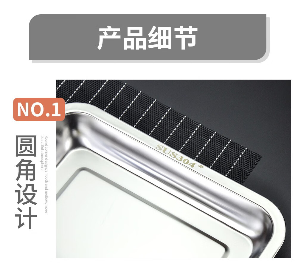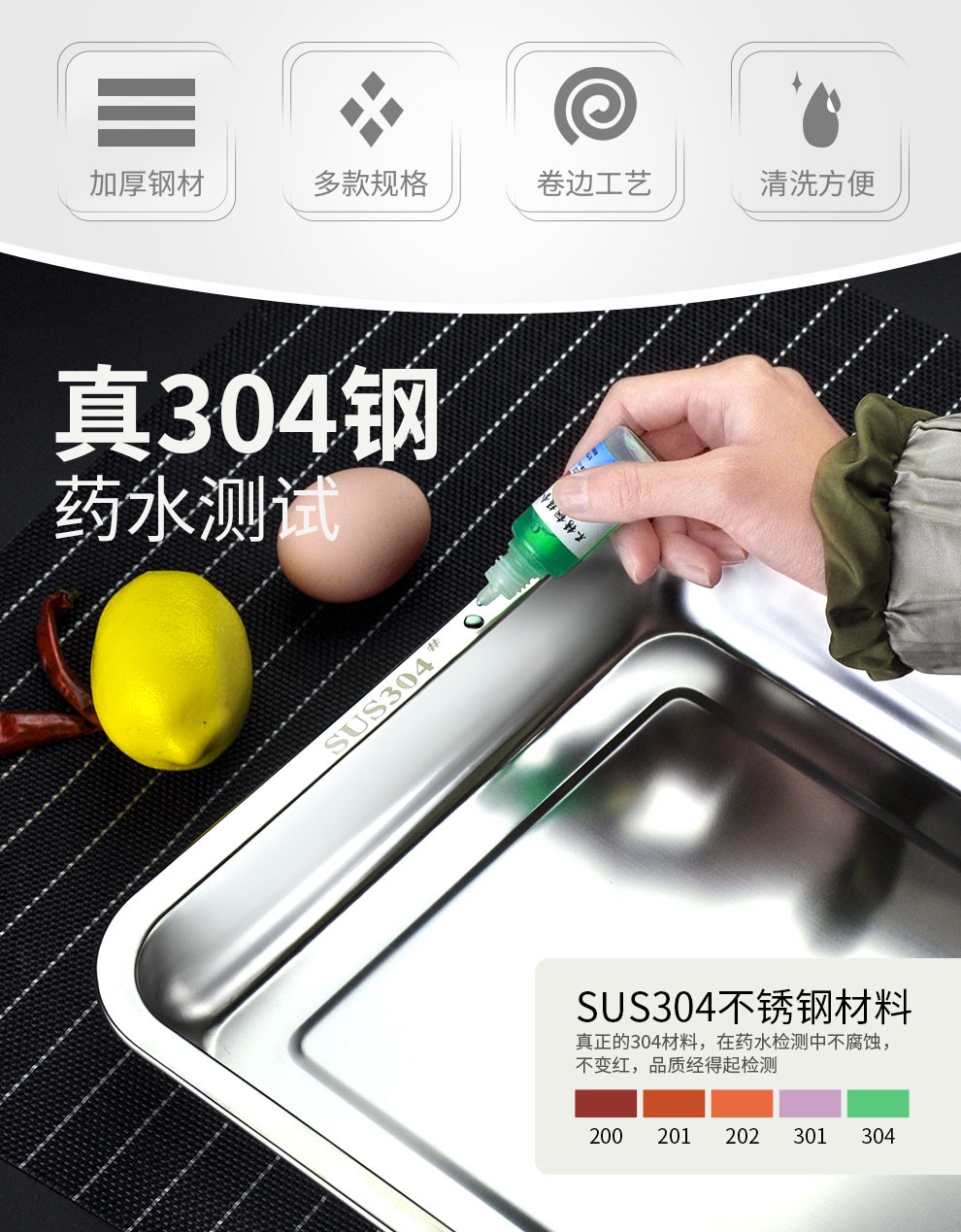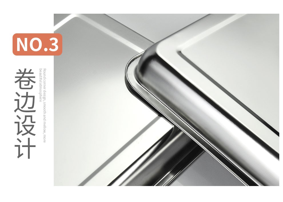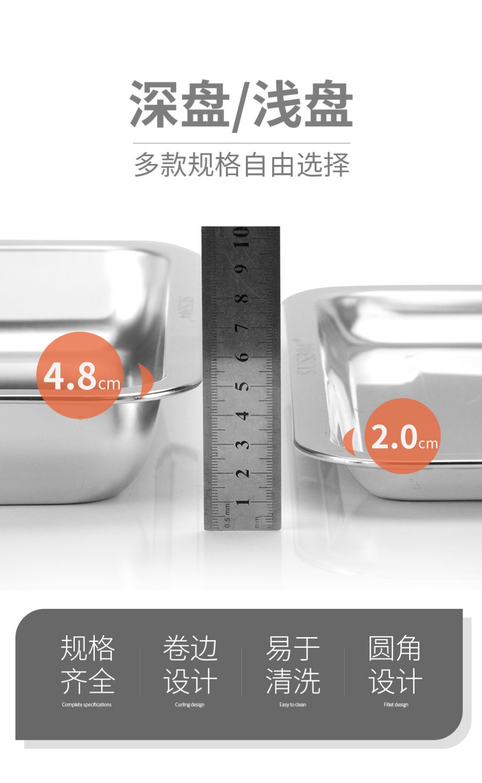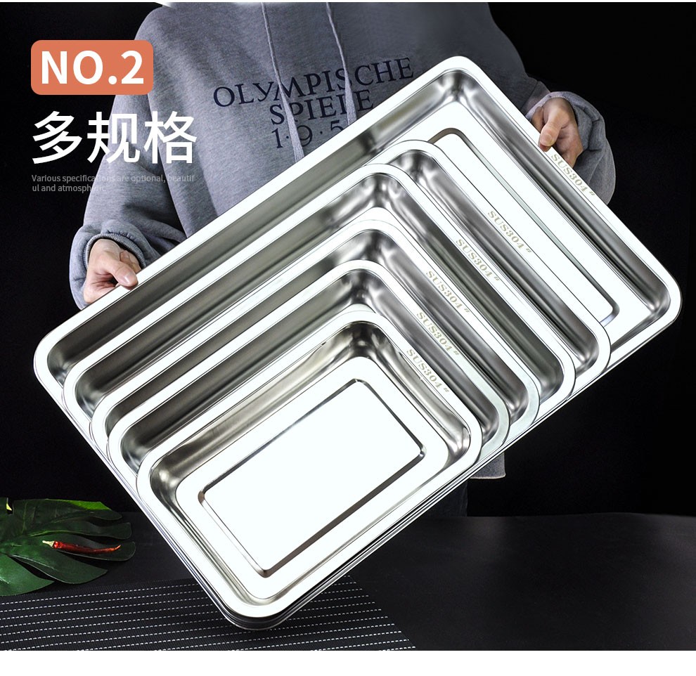 VIENDONA food grade 304 stainless steel tray rectangular plate household square plate dinner plate grilled fish iron plate steaming plate canteen 304 steel deep plate 60*40*4.8cm