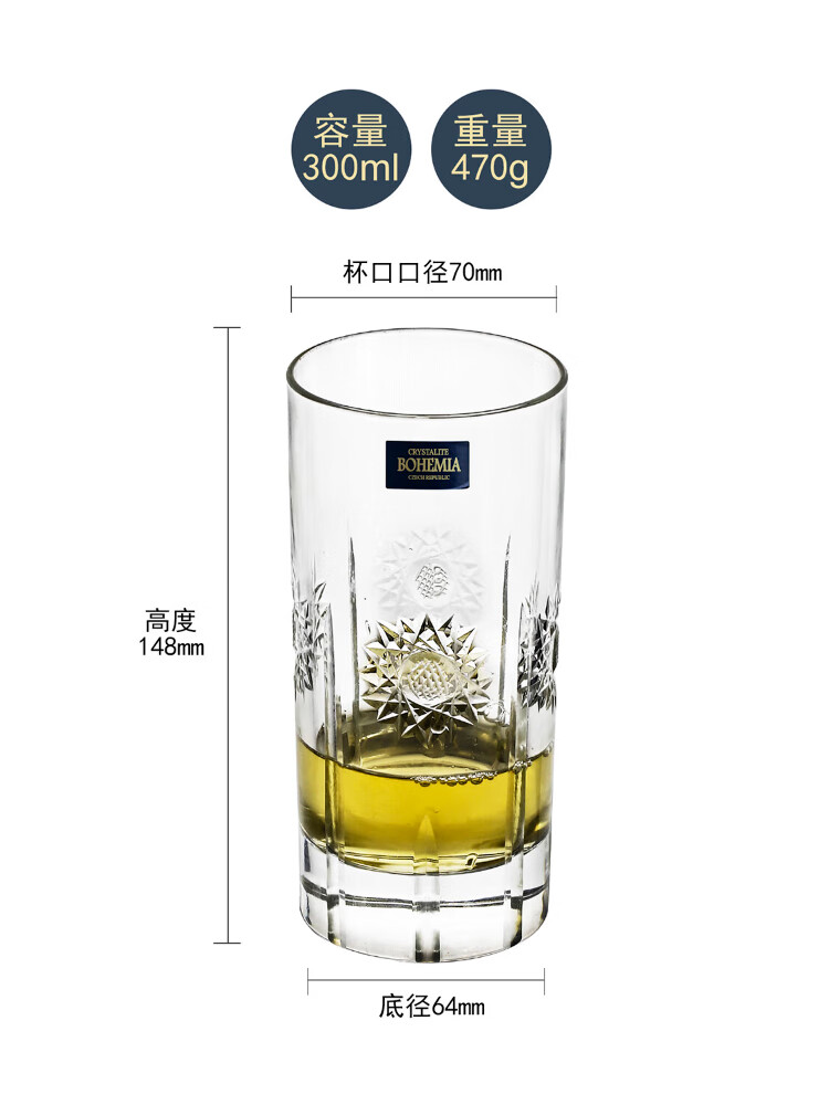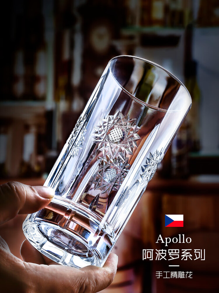 Gauss (Glass) milk cup water cup high-value household crystal glass beer cup set imported red wine cup high-end Apollo finely carved water cup