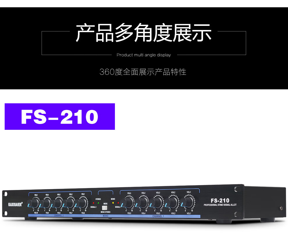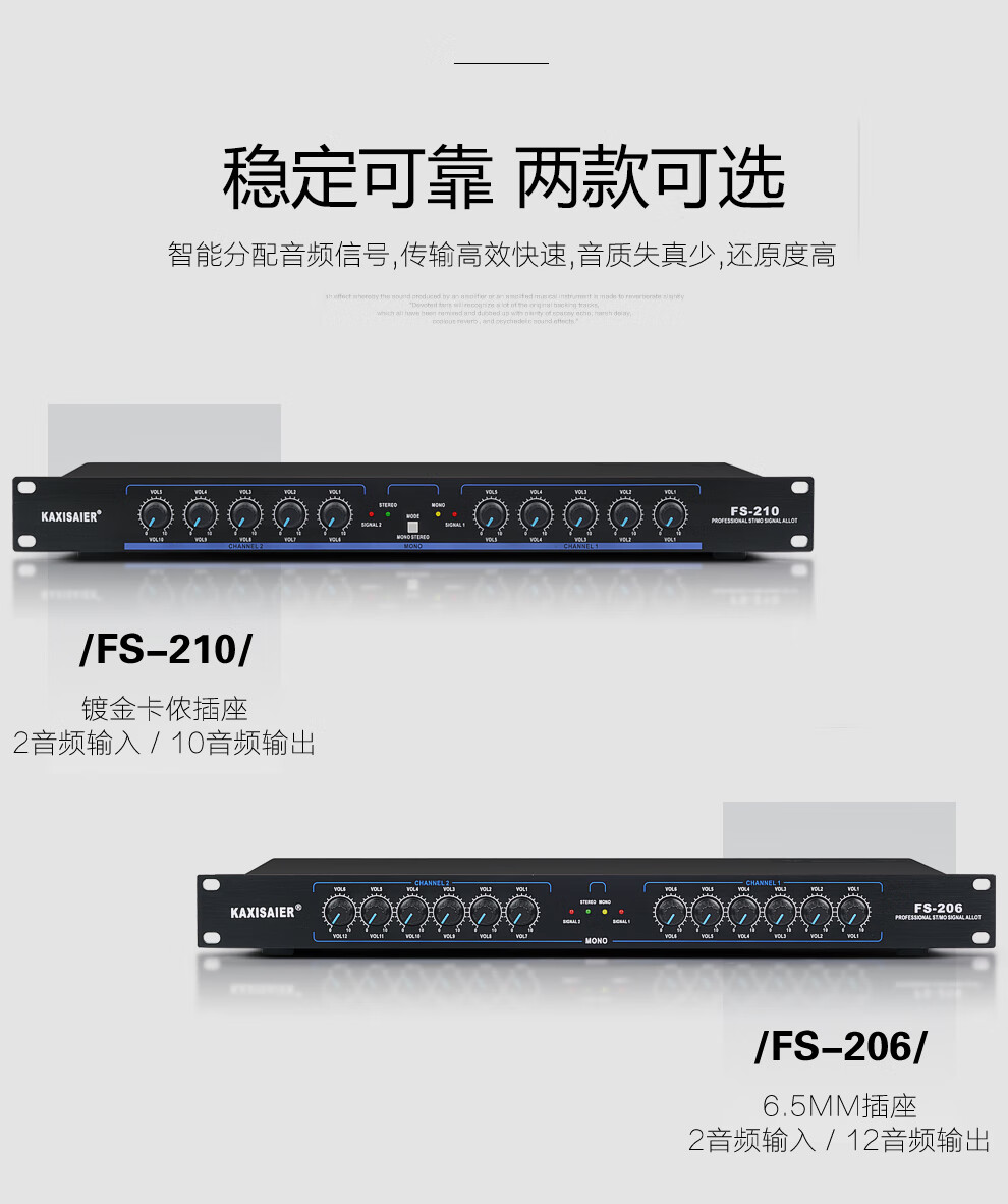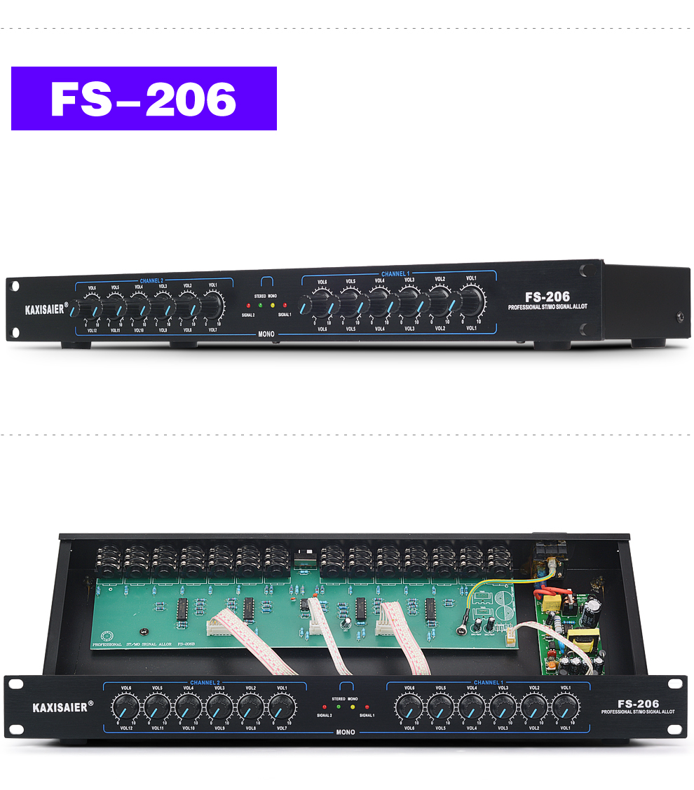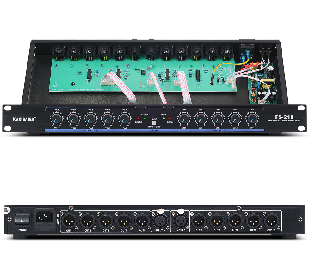 KAXISAIER audio signal distributor 2-in-10-out gold-plated XLR stage line array performance multi-amplifier splitter FS-206 12-way 6.5 audio port