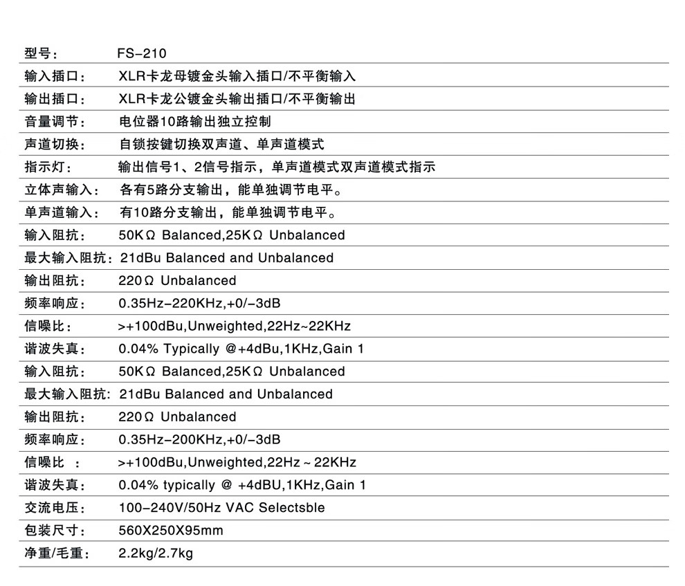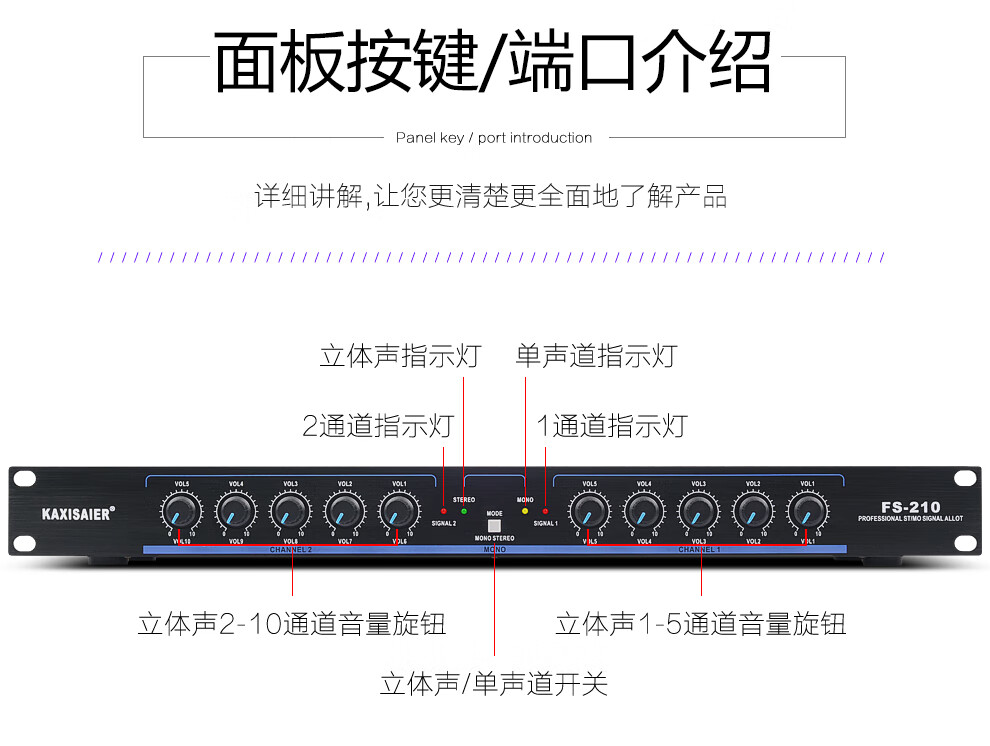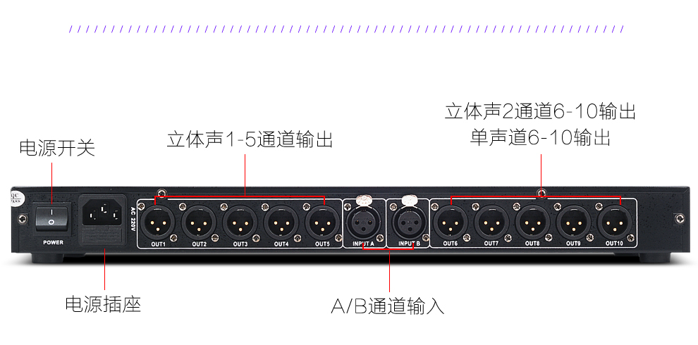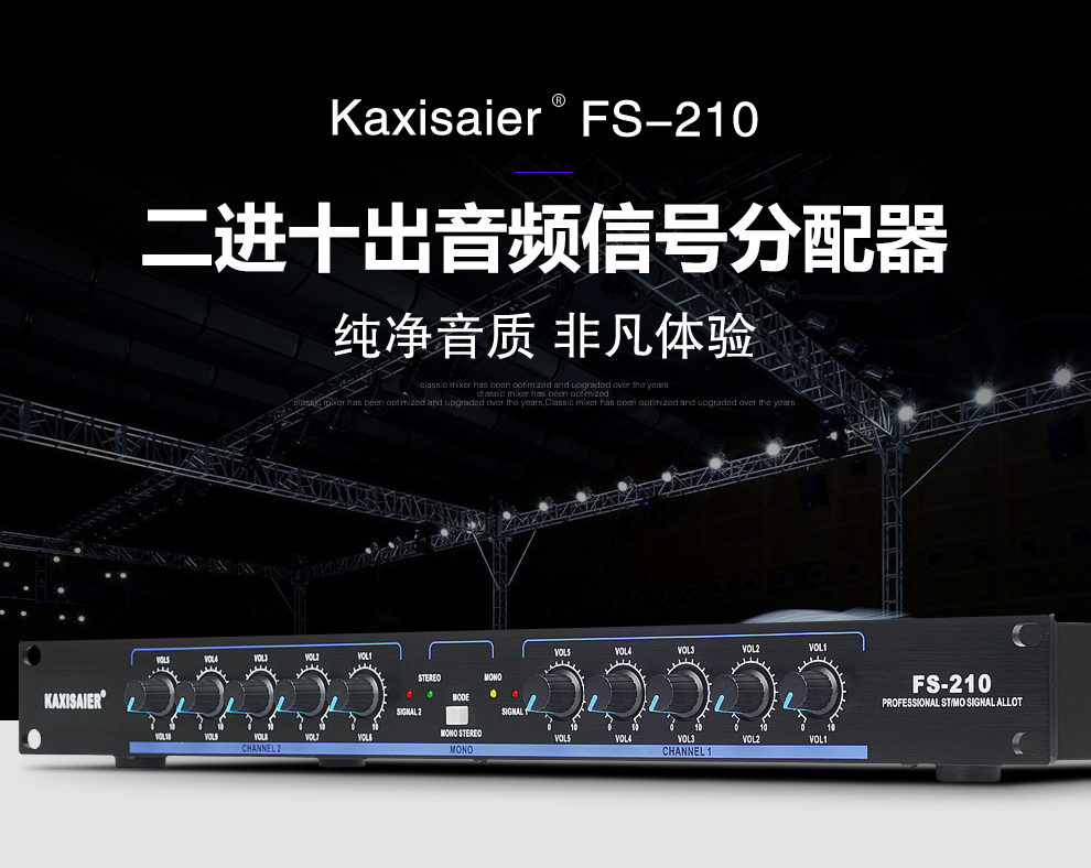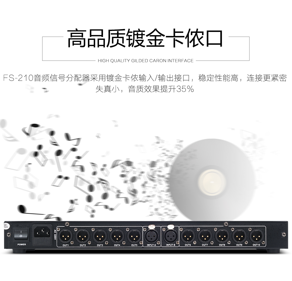 KAXISAIER audio signal distributor 2-in-10-out gold-plated XLR stage line array performance multi-amplifier splitter FS-206 12-way 6.5 audio port